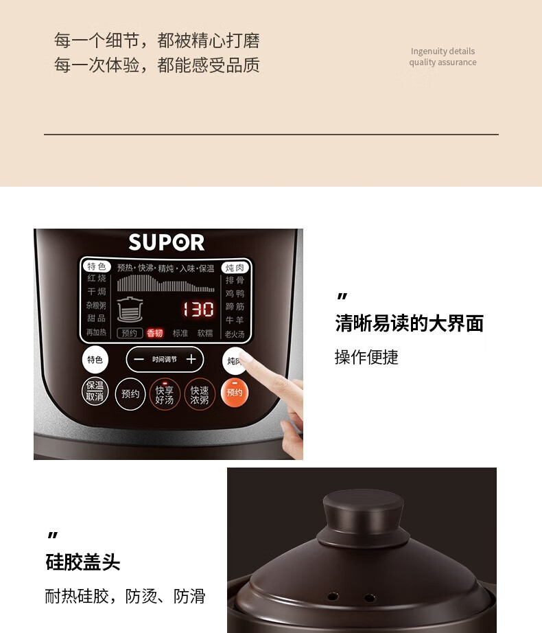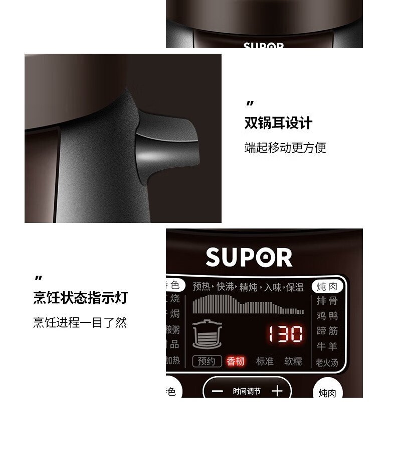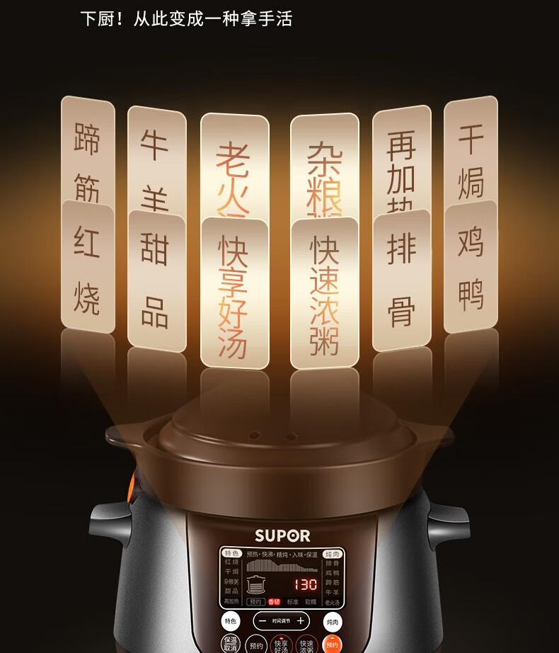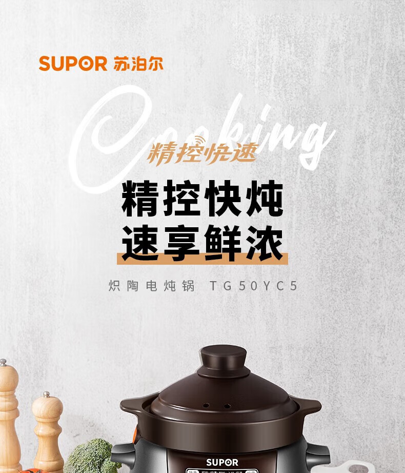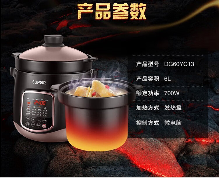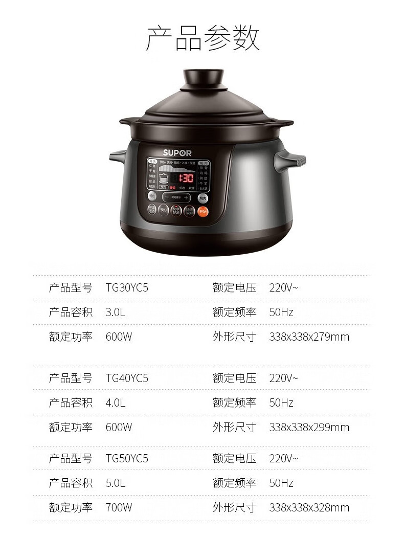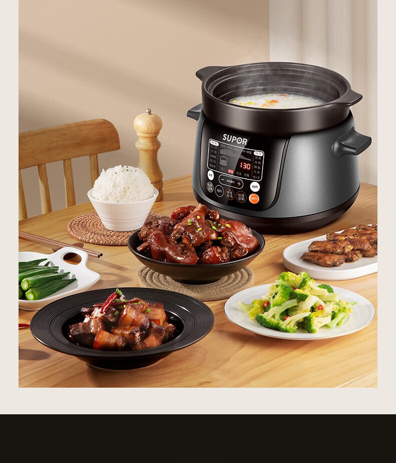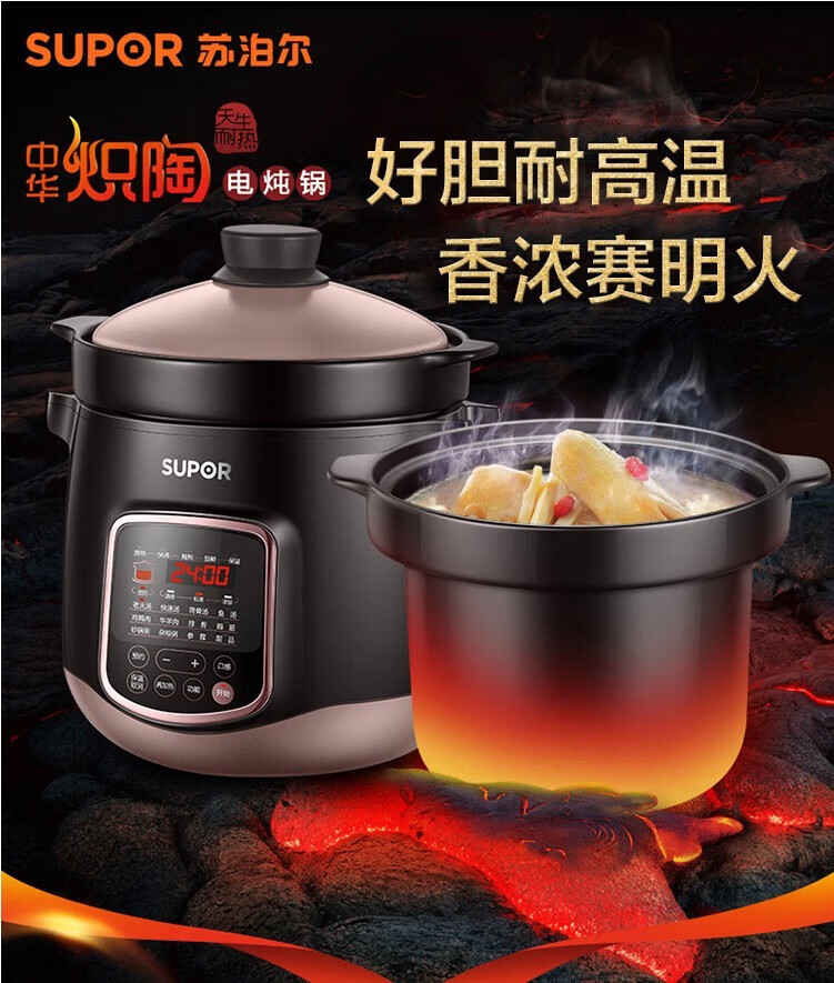 Supor electric stew pot large-capacity electric casserole soup pot incandescent pottery pot electric stew pot for stew soup and porridge intelligent appointment timing ready stock - same model in supermarkets - 5L large capacity