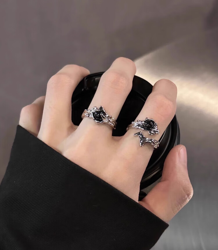 Mansheng original dark wind thorn ring men and women niche design texture couple ring high-end open ring gift two-piece ring set