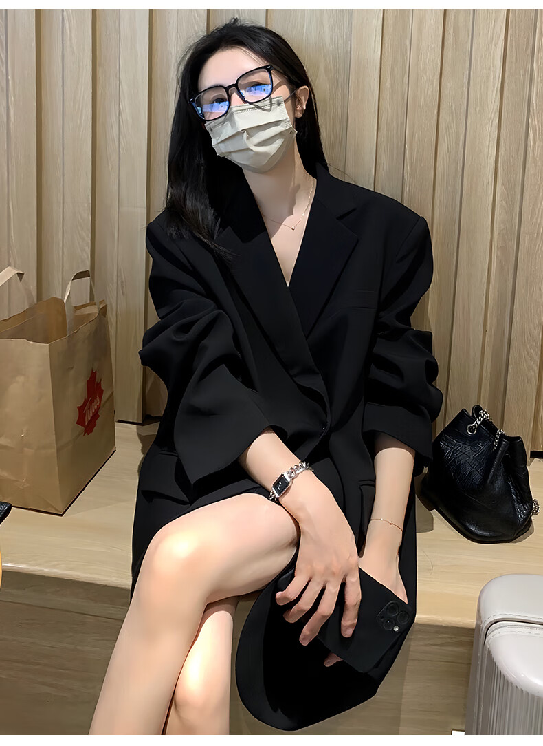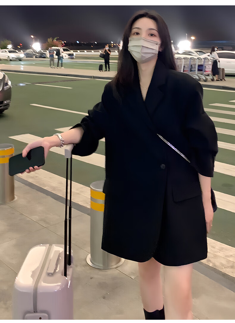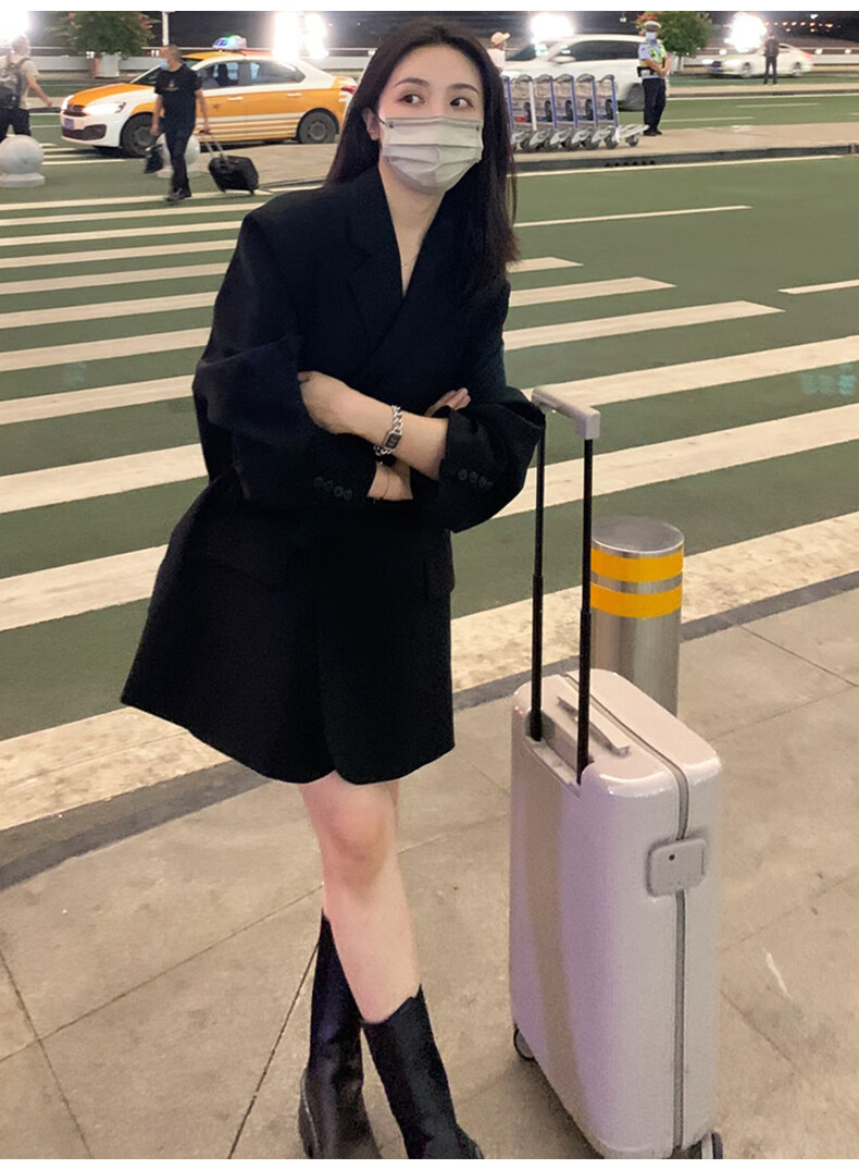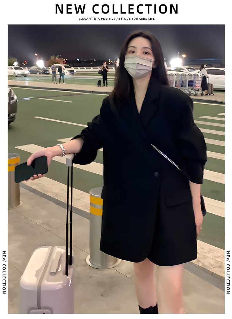GARNUO black small suit jacket women's two-piece suit 2026 spring and autumn new high-end small loose casual suit black suit XL 131-150Jin Jin equals 0.5 kg