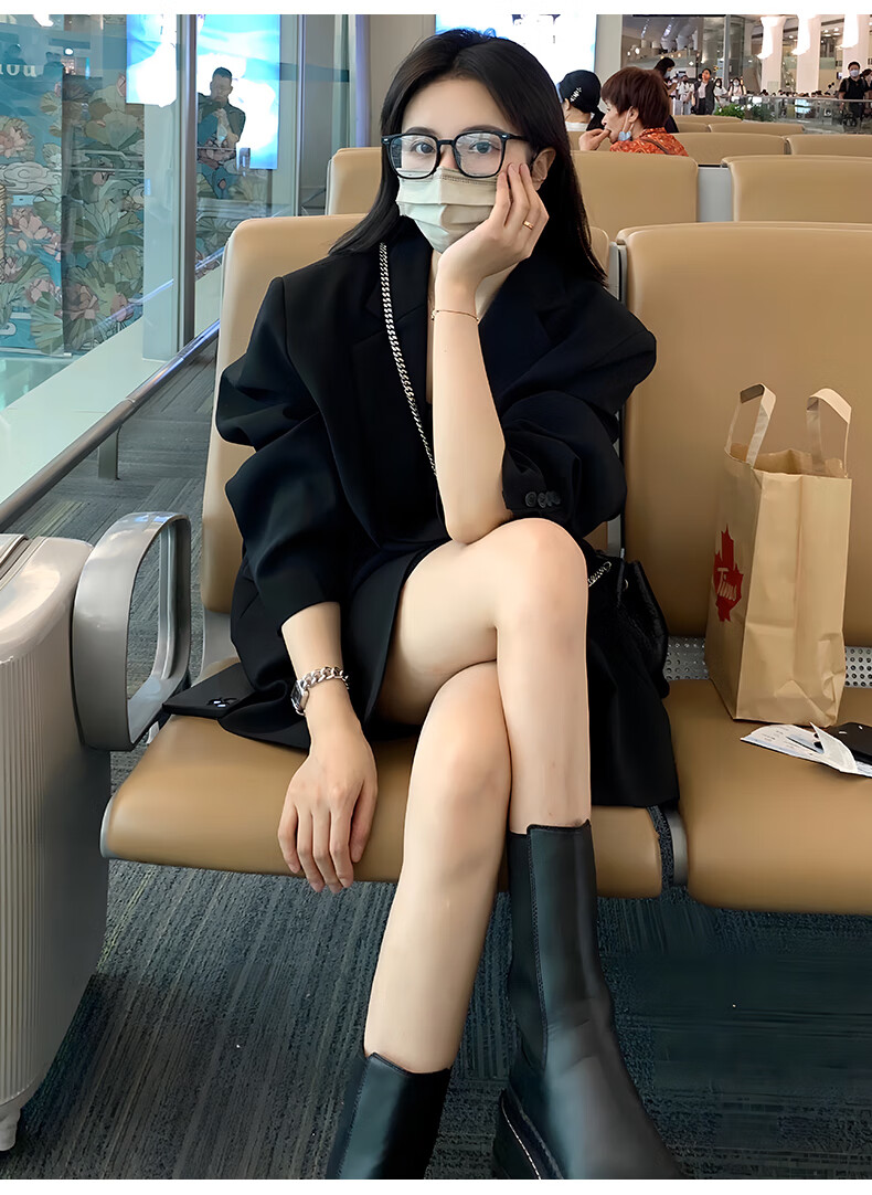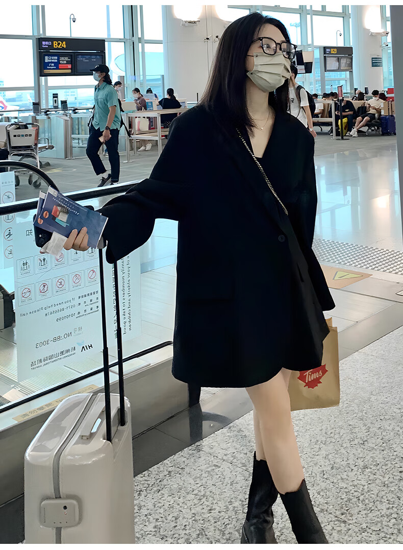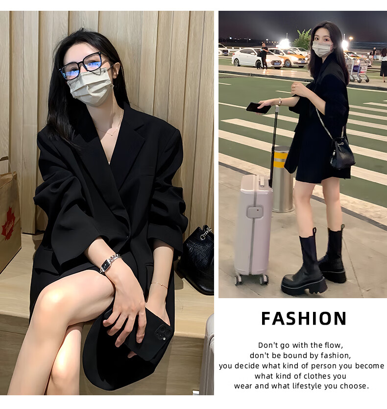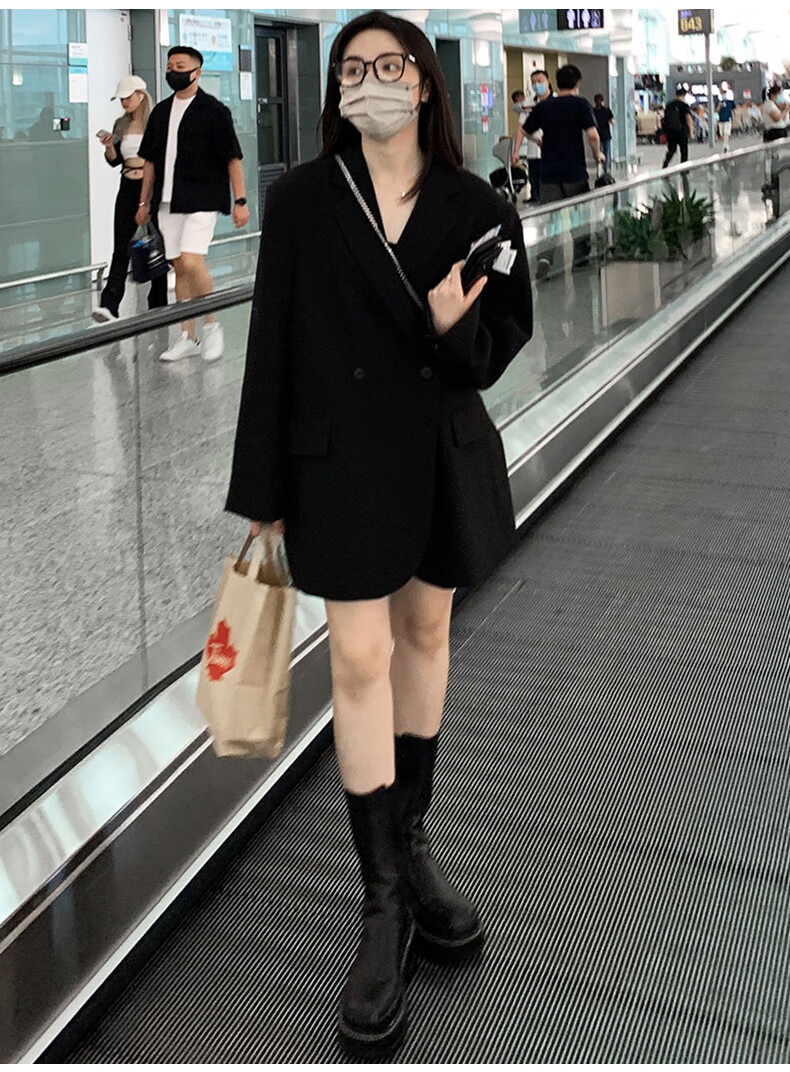 GARNUO black small suit jacket women's two-piece suit 2026 spring and autumn new high-end small loose casual suit black suit XL 131-150Jin Jin equals 0.5 kg