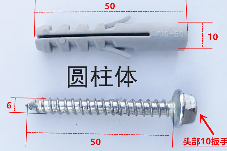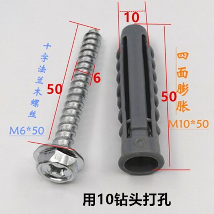 Hai Rui LCD TV bracket hanger installation expansion screw plastic expansion tube rubber plug expansion plug 10mm thickened 10*50 tetrahedron 6 sets (tube + nail)