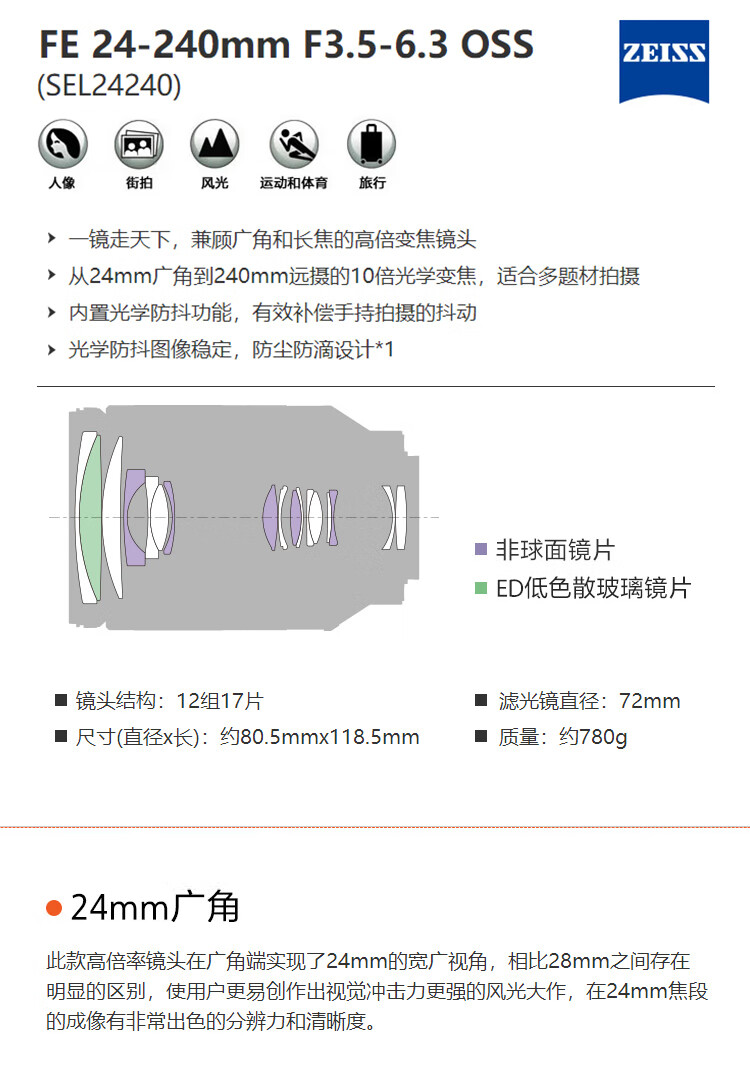 Sony (SONY) full-frame standard zoom lens FE28-60mm F4-5.6 disassembled version official standard