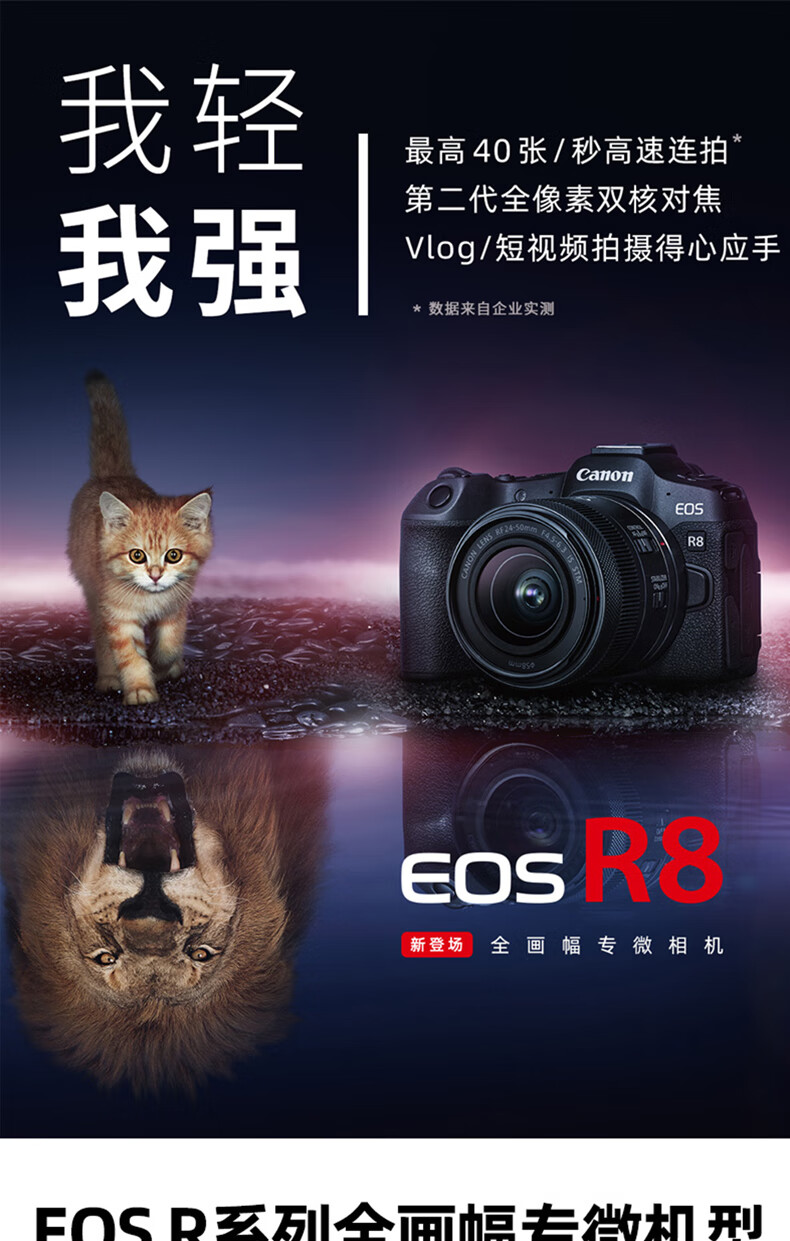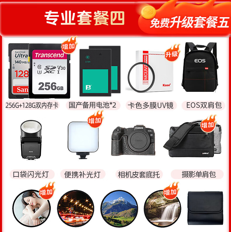 Canon r8 full-frame mirrorless camera R8 digital high-definition 4K video vlog live travel professional-grade mirrorless R8+RF24-105 STM single package lens all-round package live broadcast package six 256G card microphone dual light live broadcast high-end accessories