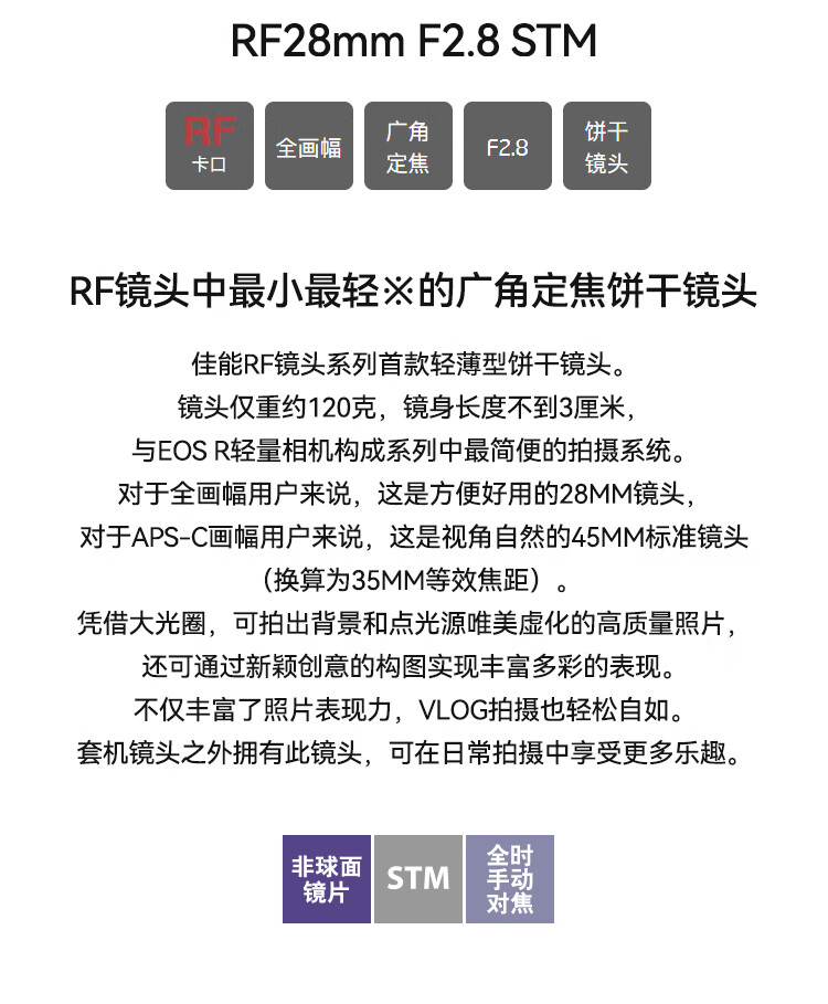 Canon rf28f2.8 fixed focus full-frame mirrorless camera lens suitable for EOS R7 R10 R5 R6 R RF28mm F2.8 Long Leg King Biscuit Head Official Standard No Filter Accessories ~ It is recommended to choose the package