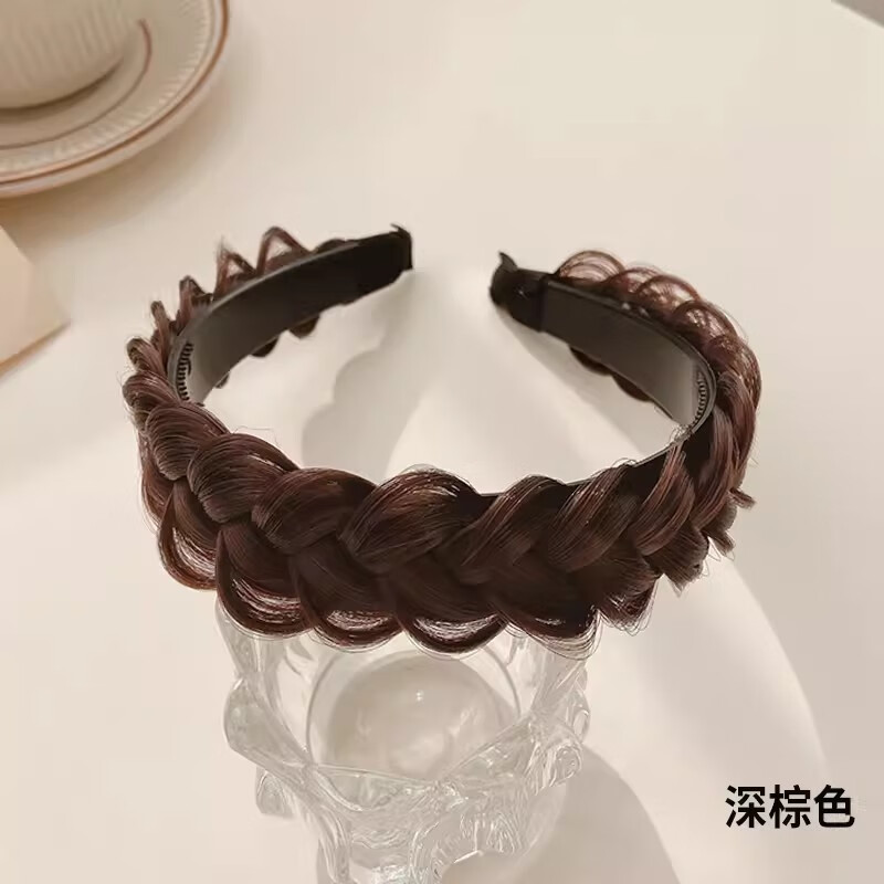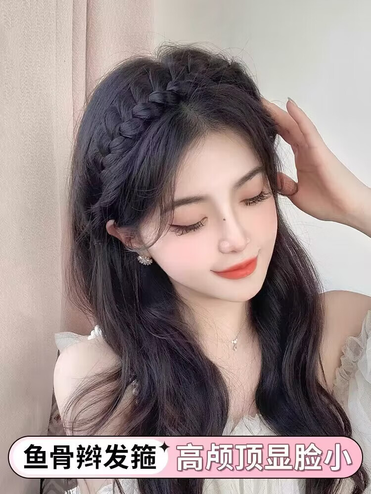 Dongyi carefully selected fishbone braided headband, high skull headband, handmade fish braided hair to cover white hair, hairpin, Mother's Day 520 gift, fishbone braided headband, natural black - 1 piece