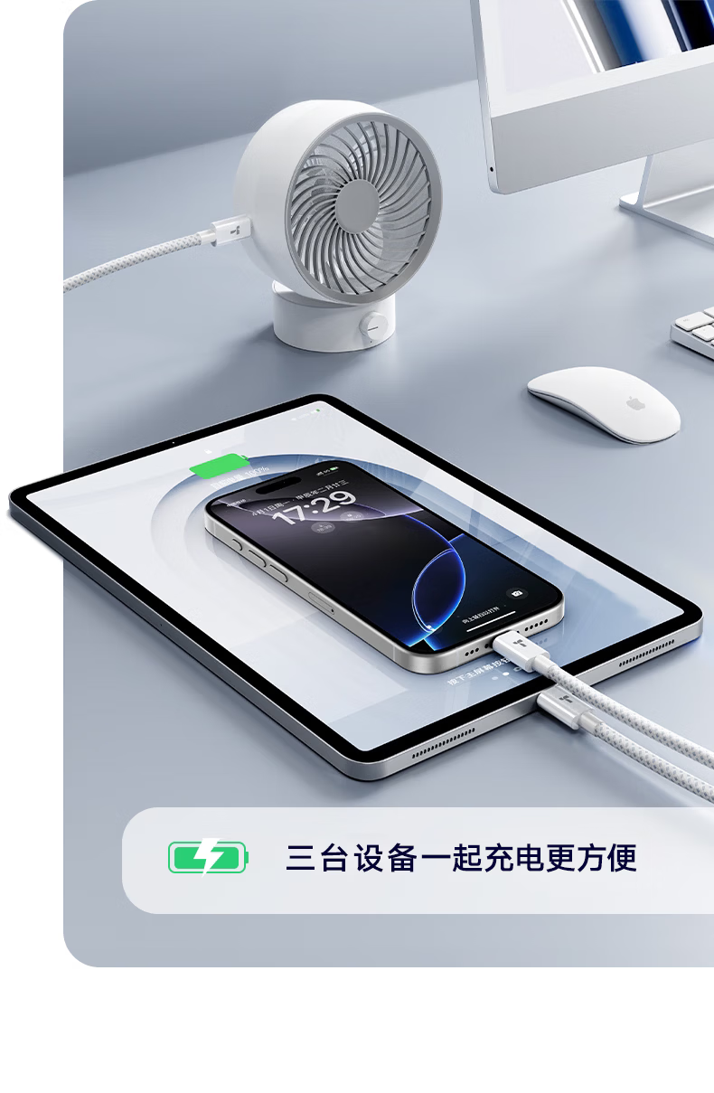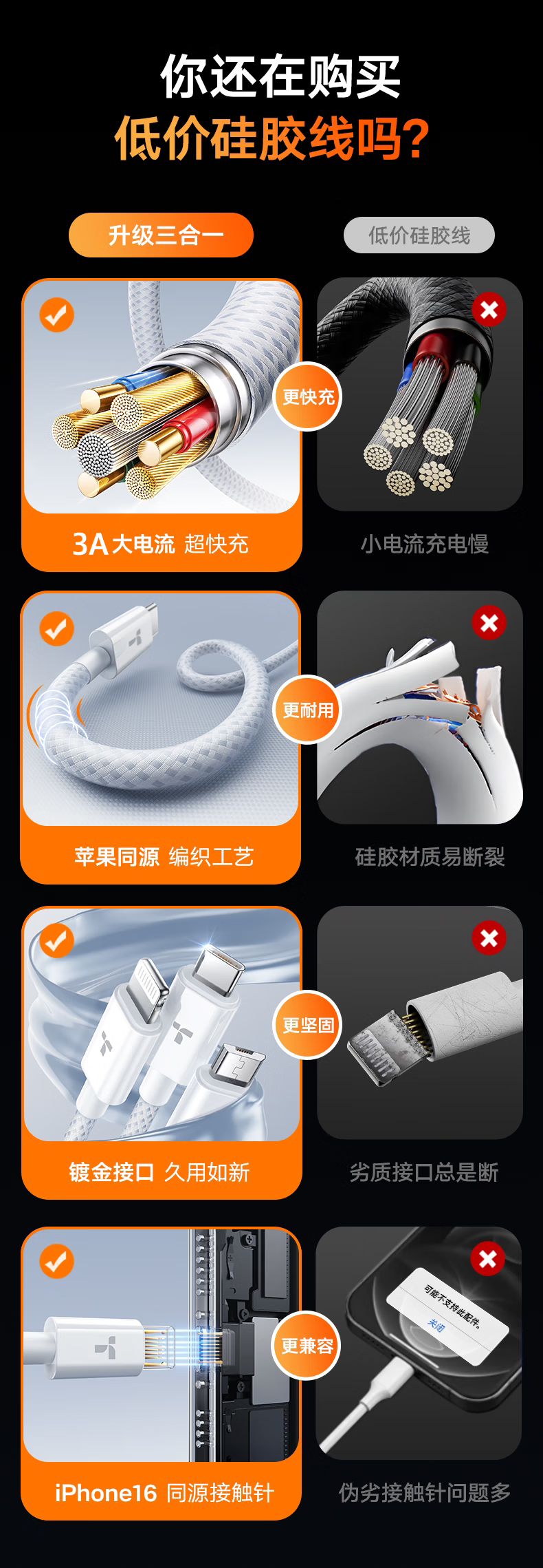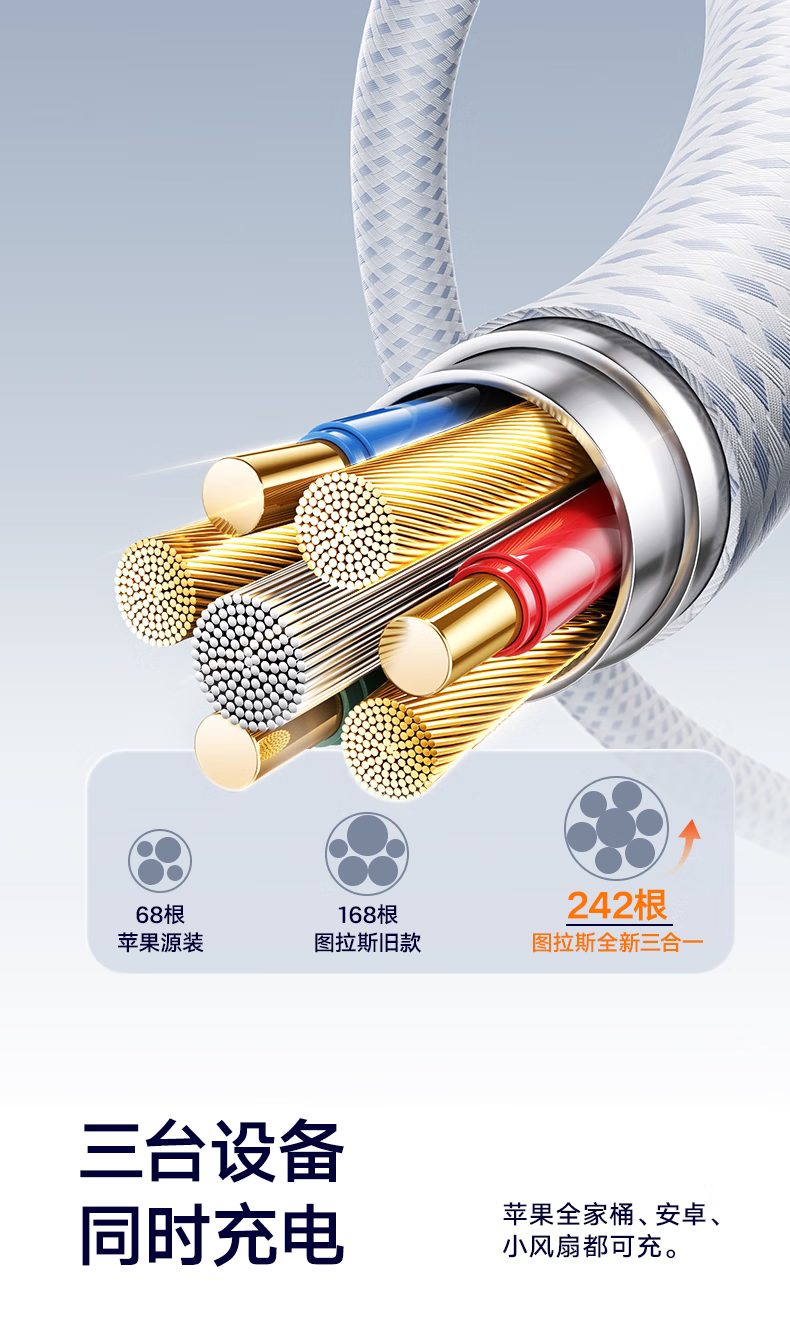 Tulas Charging Cable Three-in-One Hot Selling 100W+丨Durable Braided Data Cable Fast Charging iPhone16promax Multi-Function One-to-Three Car Mount 17 Suitable for Huawei Ice Jade White 1.68m丨USB Interface Low Temperature Fast Charging 2025 Flagship Latest Product