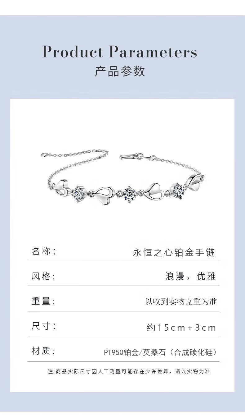 Grace Girl Platinum Eternal Love Bracelet Female Moissanite Platinum Bracelet Bracelet Jewelry Gift for Girlfriend on Chinese Valentine's Day Platinum Eternal Heart Bracelet + Light Luxury Gift Box