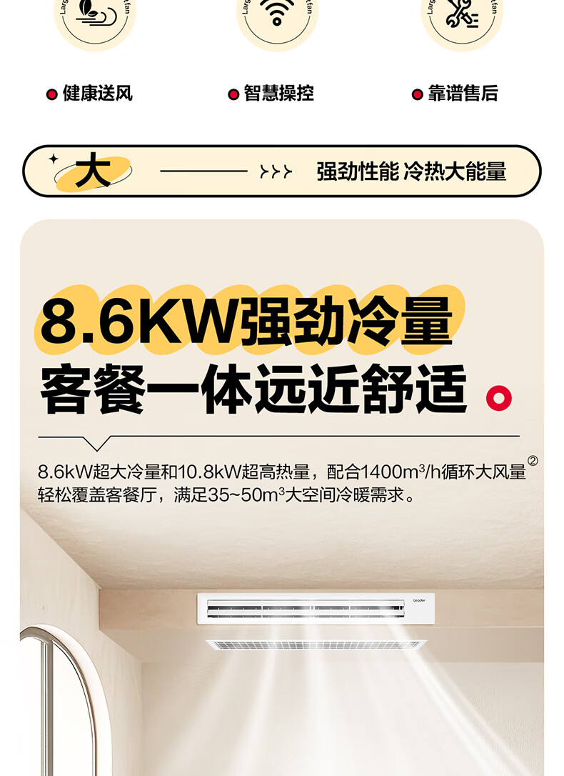 Haier 20% off when placing an order. Zhijia produces net energy-saving plus large 3 HP duct machine central air conditioner. One-to-one home central air conditioner. First-level energy efficiency. Full DC commander. 1.5 HP. First-level energy efficiency. Vitality. Quick cooling and quick heating + anti-leakage.