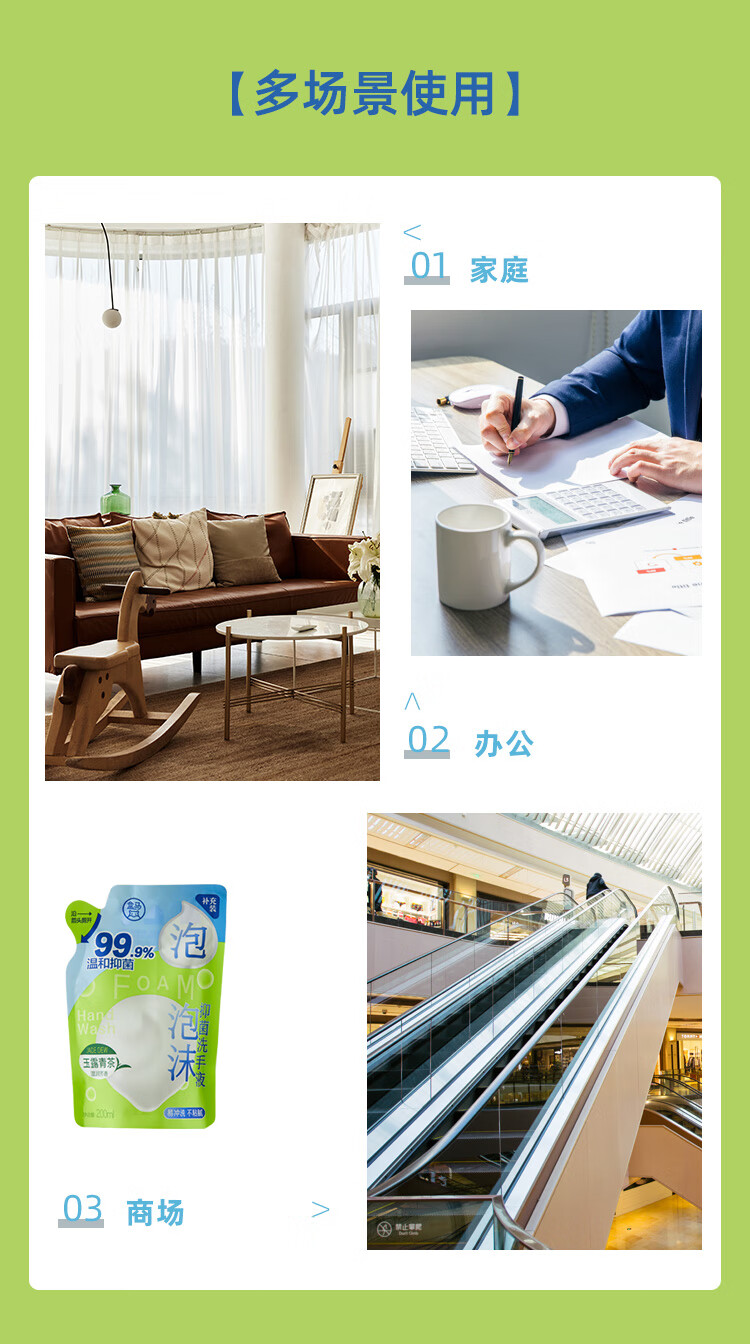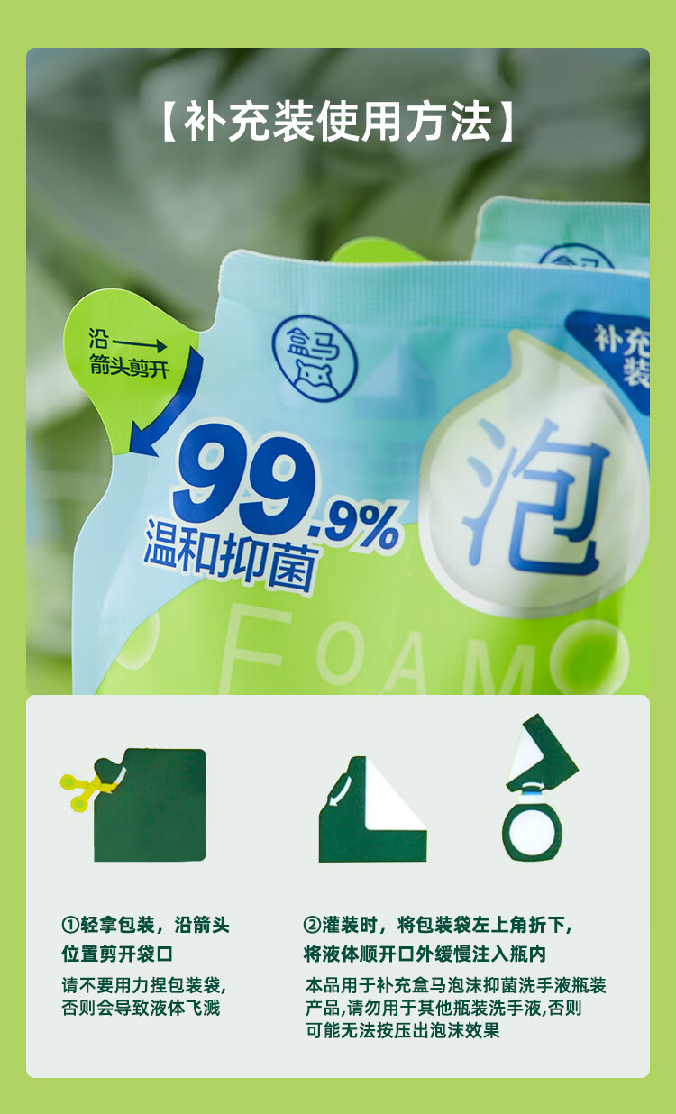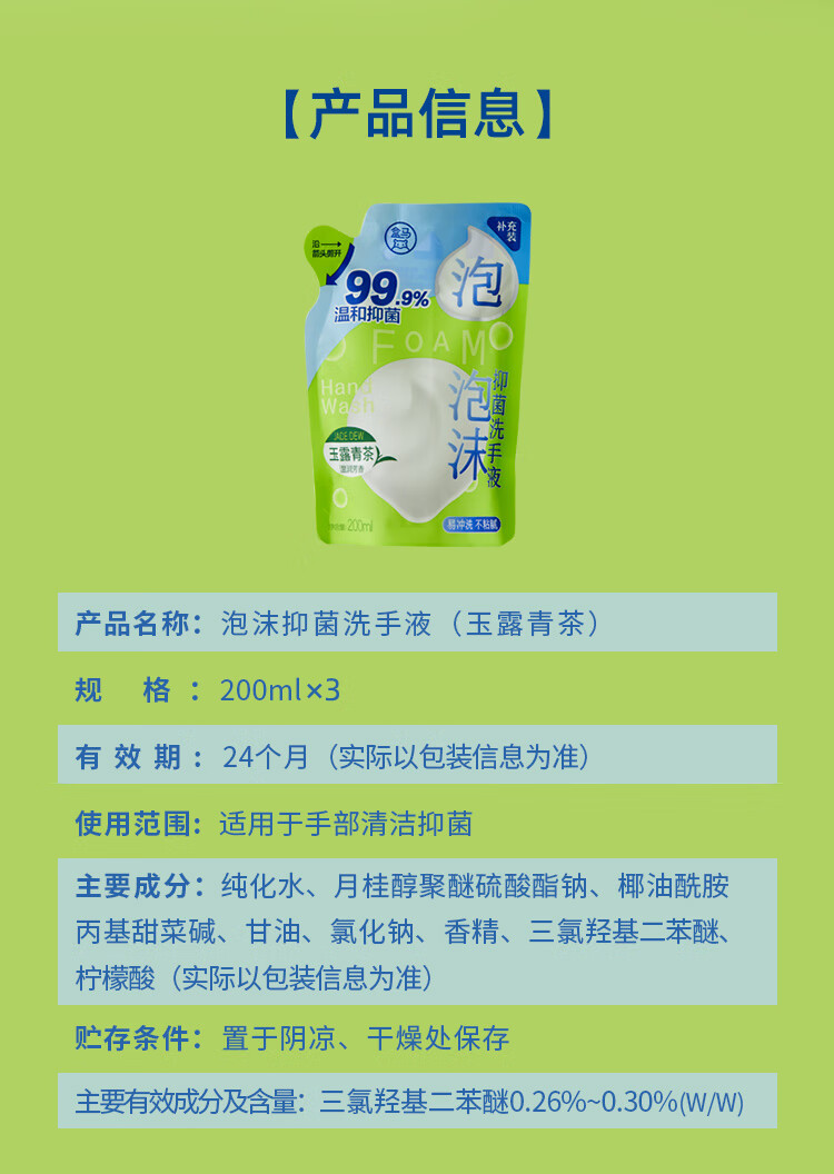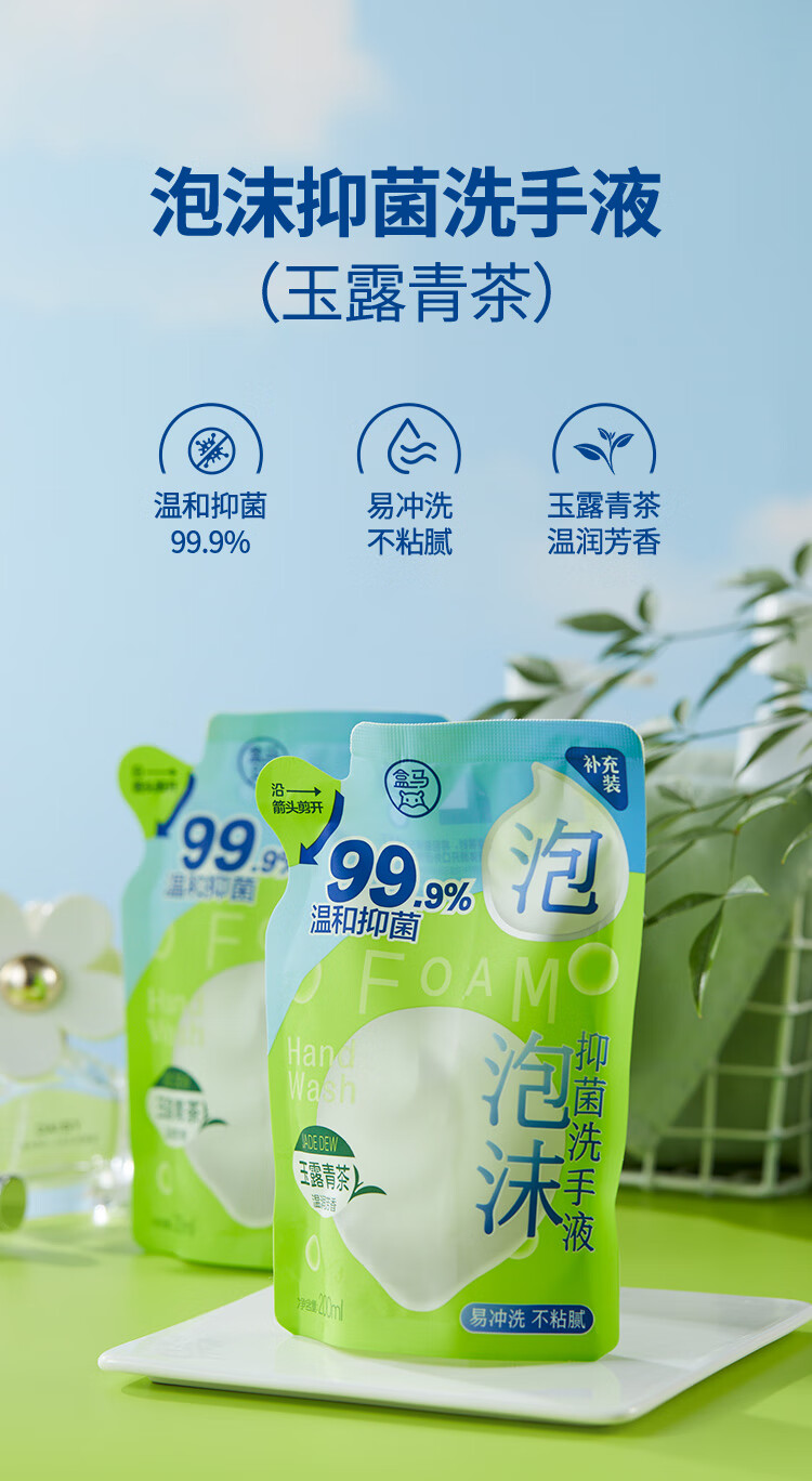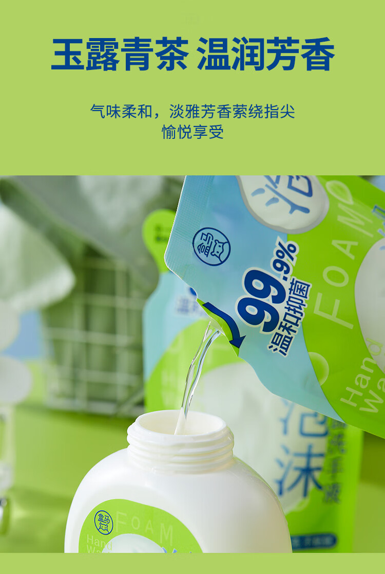 Hema Foam Antibacterial Hand Sanitizer Refill Yulu Green Tea 200ml*3 Bags Combination