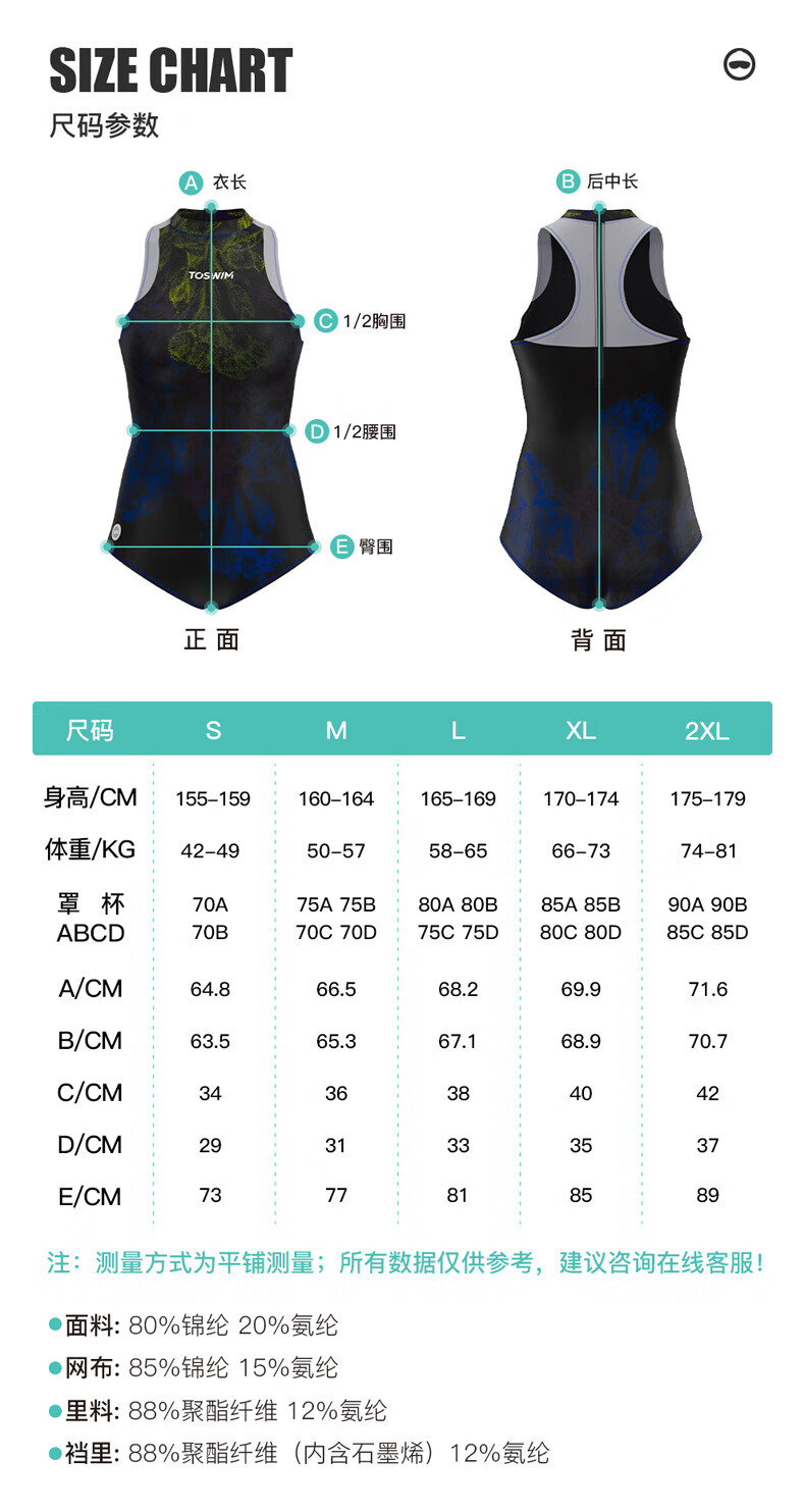 TOSWIM swimsuit women's one-piece professional competitive training swimsuit sleeveless triangle sexy backless slim swimsuit swimming three-piece set swimsuit + swimming goggles + swimming cap M height 160-164cm/weight 45-51kg