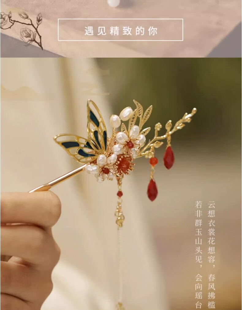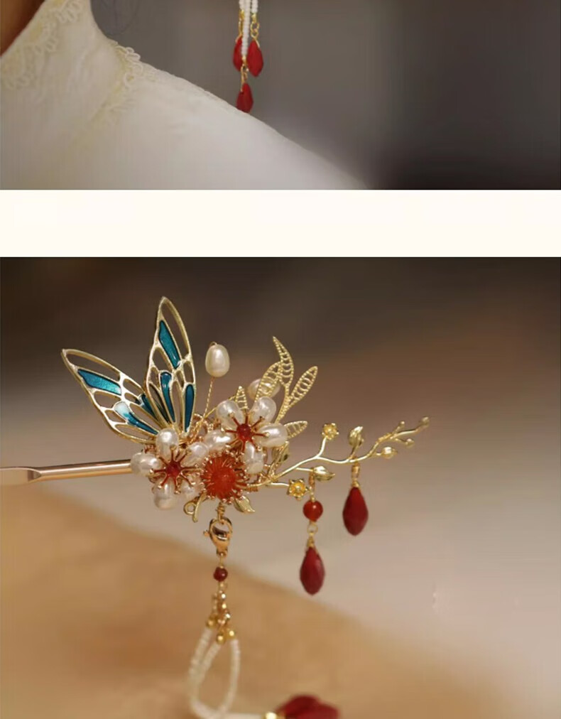 Love for two generations, ancient style hairpin, cloisonné tassels, rocking hairpin, women's hairpin, Hanfu accessories, ancient costume hairpin, hairpin, palace photography, butterfly hairpin