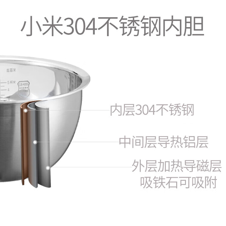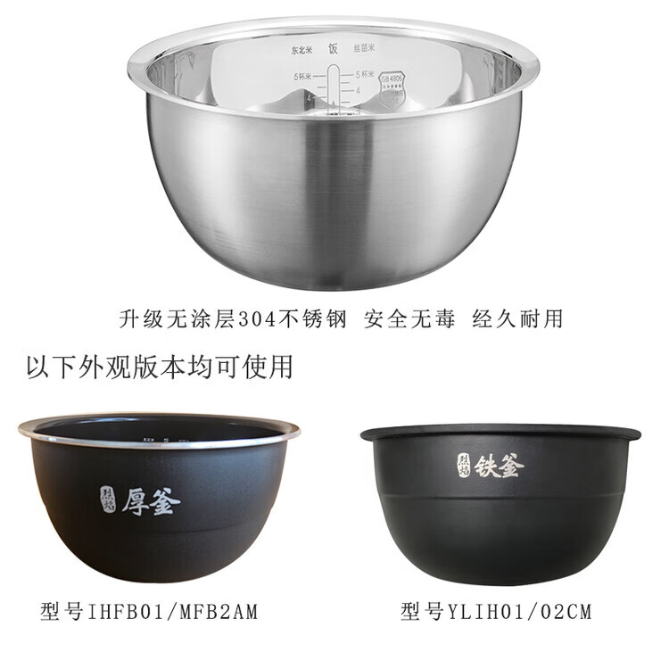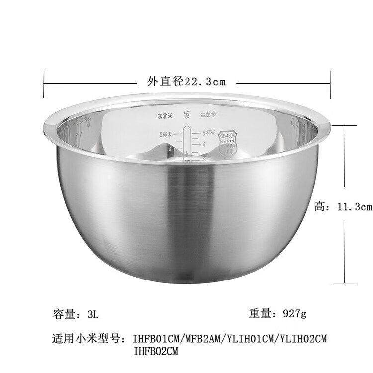 Suitable for Xiaomi IH rice cooker inner pot 3 liters thick flame pot IHFB01CM02 uncoated stainless steel home 3 liters IHFB01CM uncoated 316L stainless steel