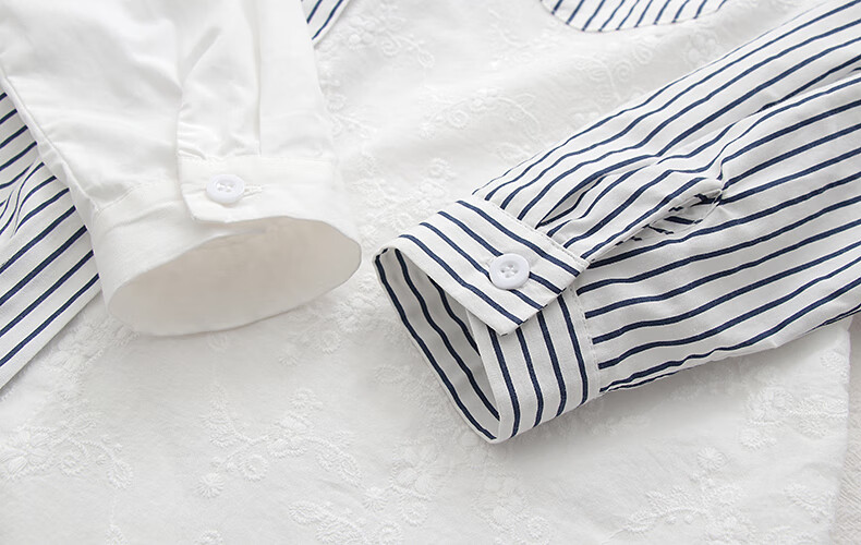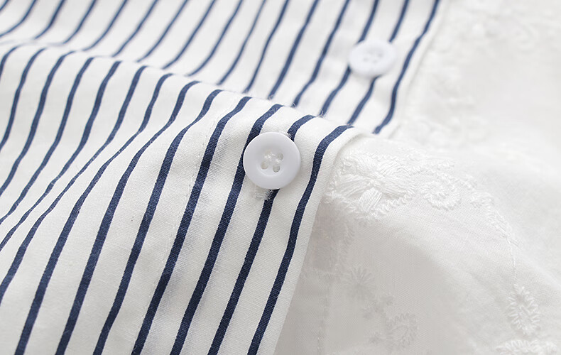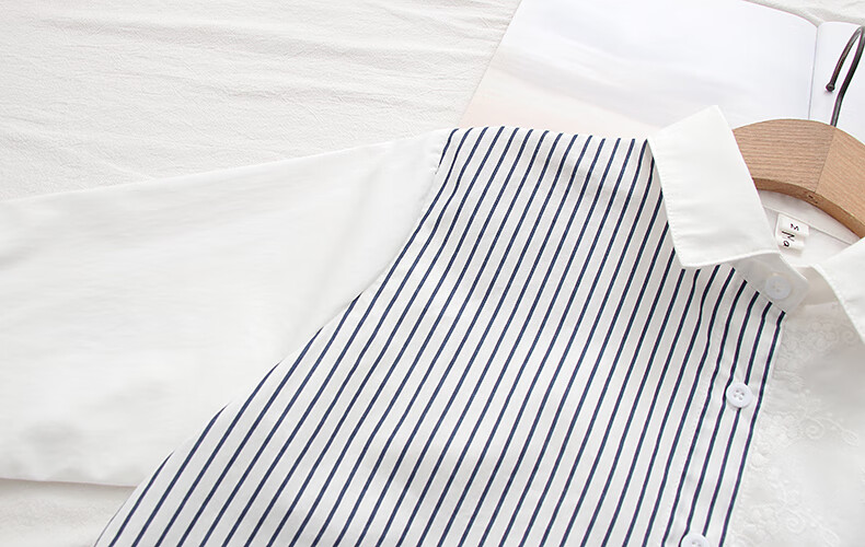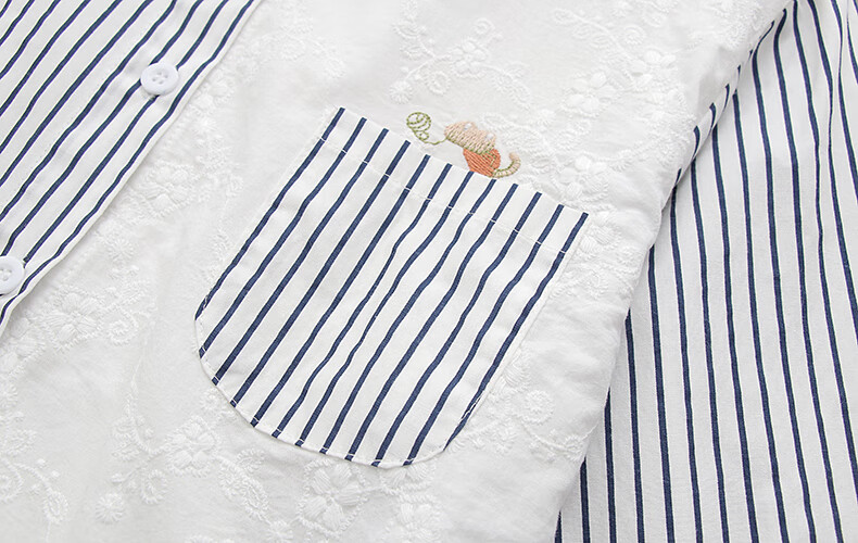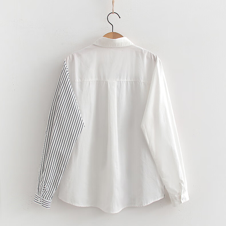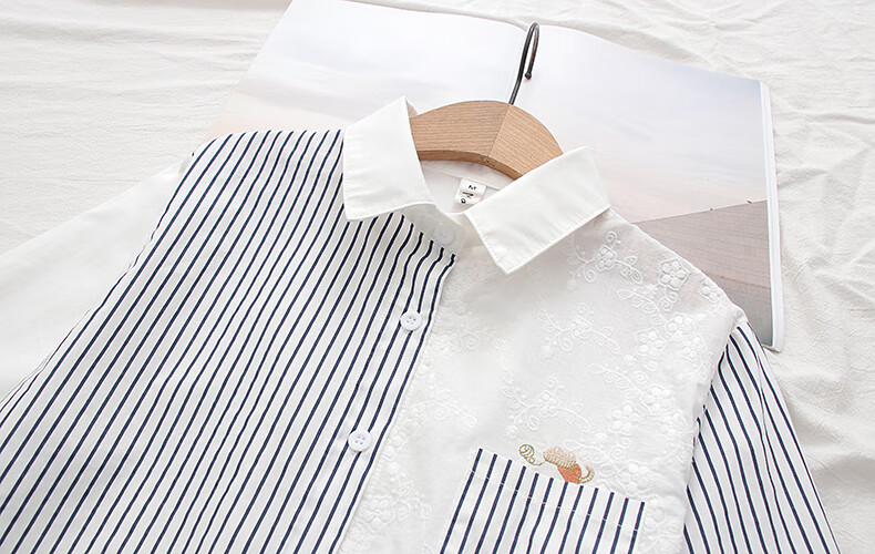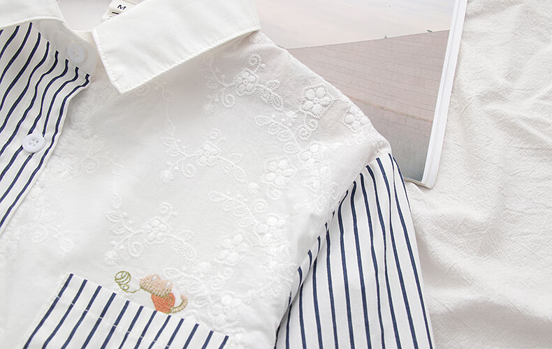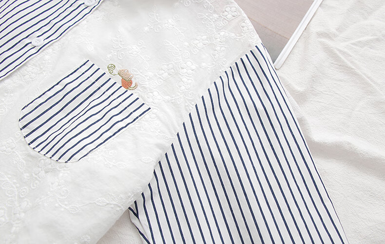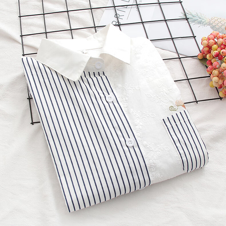 Nuanqiao cotton shirt women's long-sleeved Japanese spring and autumn loose striped splicing small fresh embroidered top casual cotton shirt striped M (95-125Jin Jin equals 0.5 kg)
