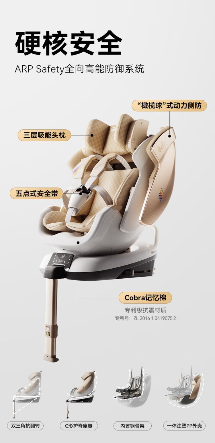 Bebebus safety seat space capsule smart 0-7 year old baby newborn baby ventilation space capsule smart small gold shield