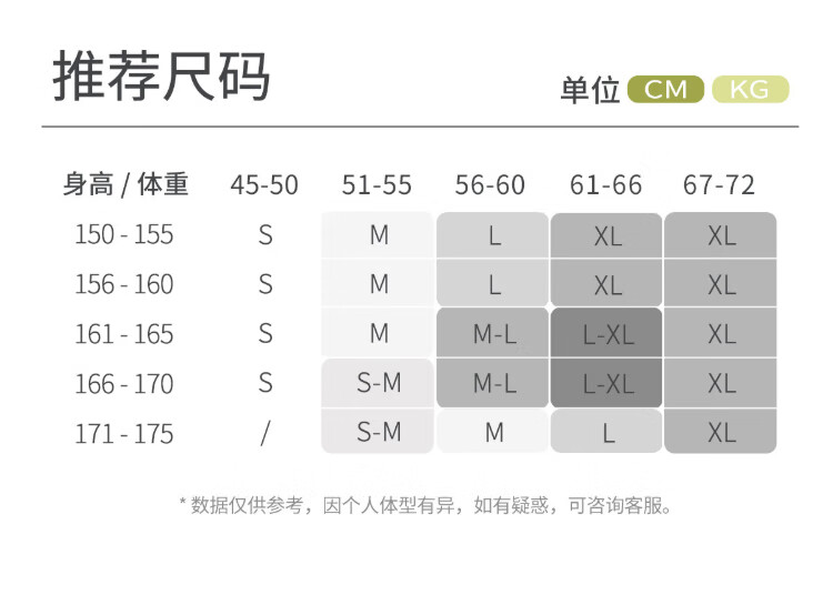 China (cm) 160-165/84-86 165-170 / 88-90 167-172 / 92-96 168-173 / 98-102 170-176 / 106-110