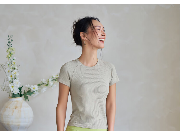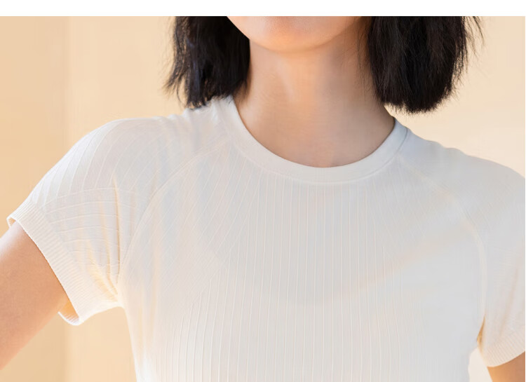 Aixiabu professional yoga wear women's tops sports T-shirts spring and summer one-piece woven short-sleeved quick-drying fitness clothes Pilates training clothes coconut cream/seamless one-piece weaving/tops without breast pads M