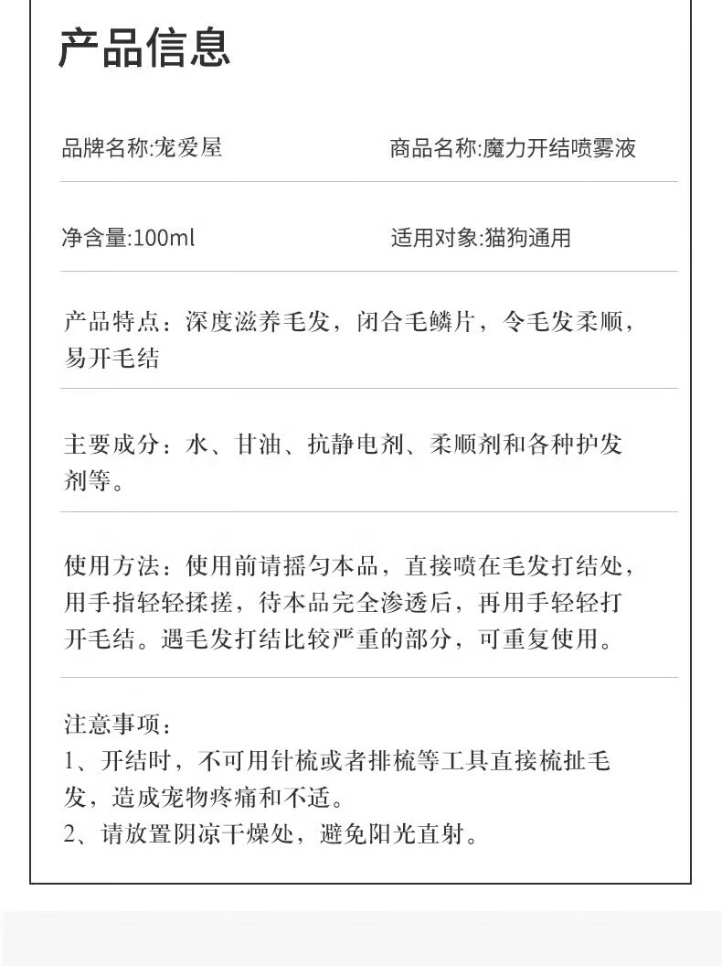 Pet House Pet Dog Hair Softener Spray Hair Smoothing Magic Spray Dog Hair Care Anti-Knotting and Opening Liquid Conditioner One bottle of trial pack