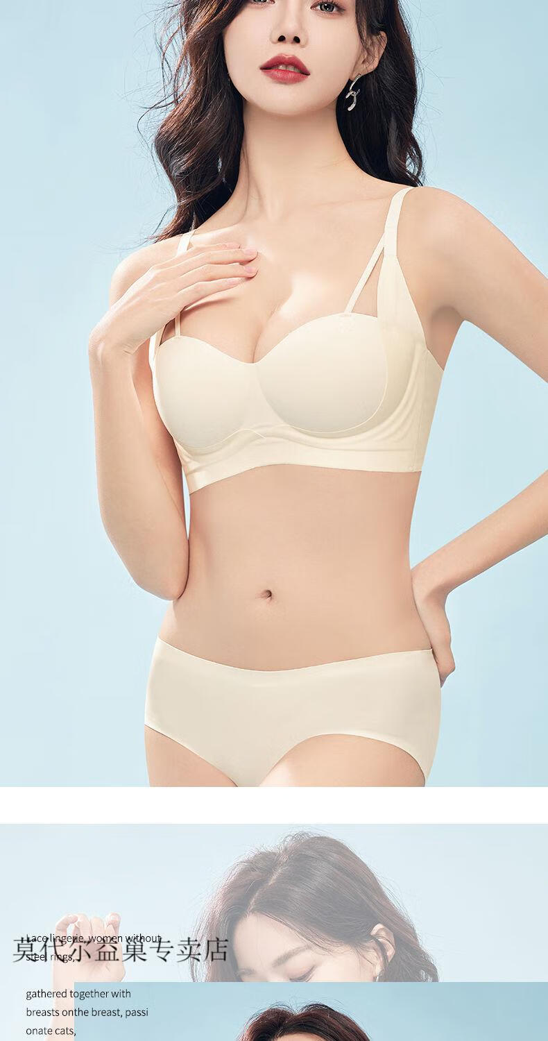 Modal's Nueva ropa interior sexy sin costuras para mujer, reunión y agrandamiento de senos pequeños, soporte superior para evitar la flacidez, sin anillos de alambre, conjunto de sujetador de control de senos, color de piel rosa + marrón (paquete de 2) 70A S (32BC)