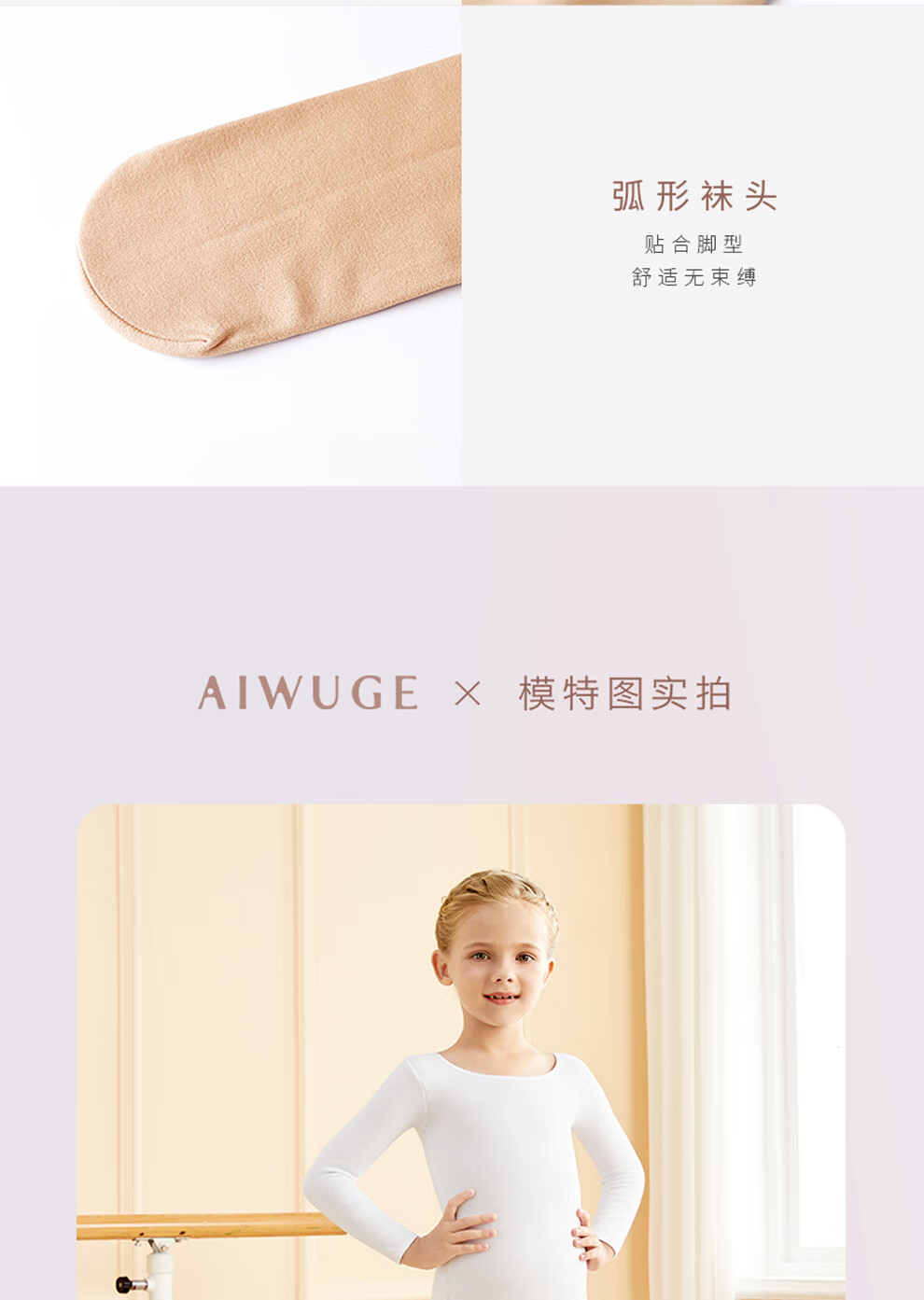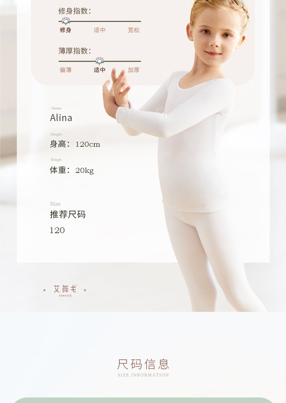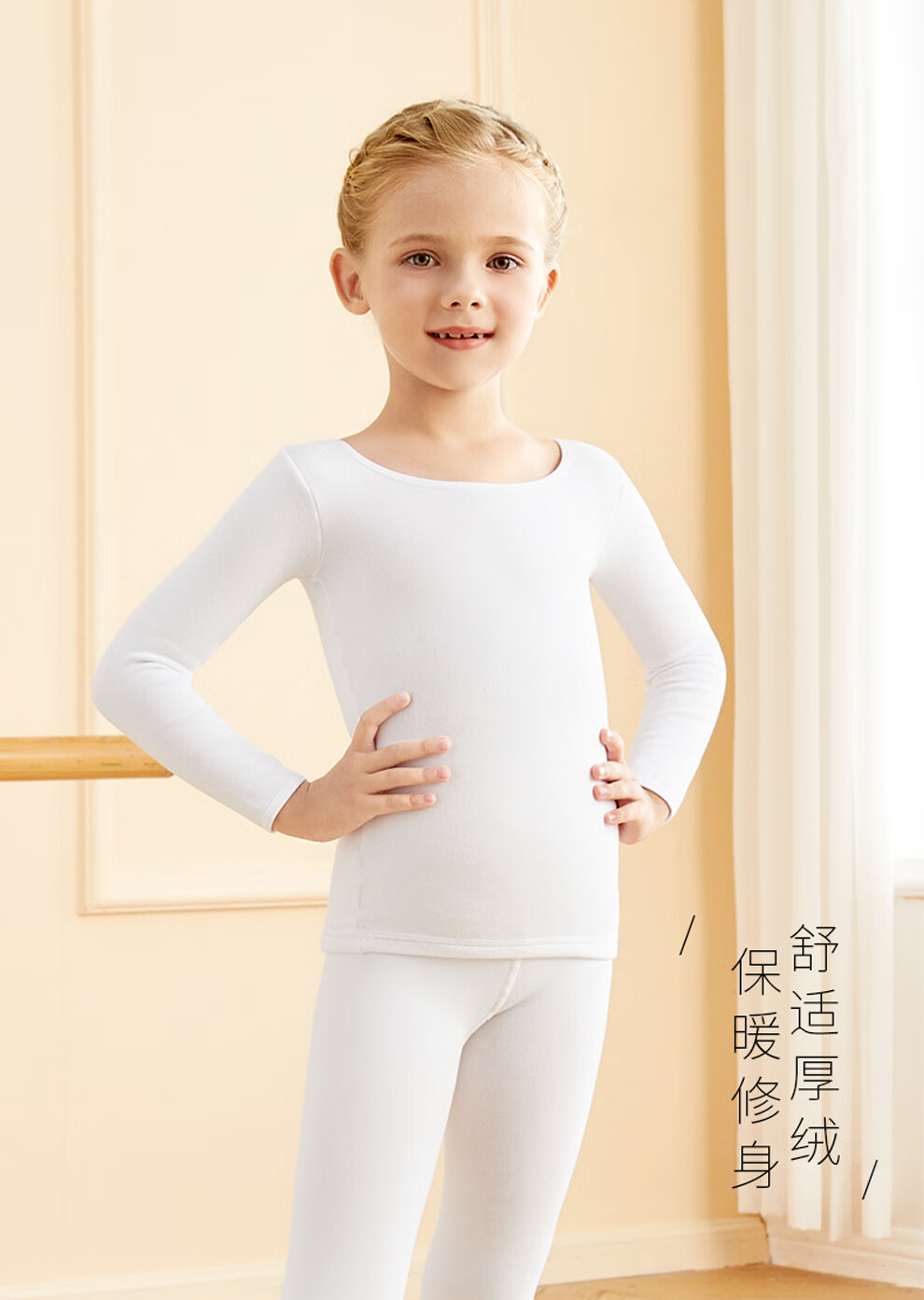 Aiwugo children's dance clothing white T-shirt bottoming suit girls velvet performance clothing invisible baby tight bottoming shirt high elastic foot suit - autumn and winter velvet - white 130 XL size height 130-145cm