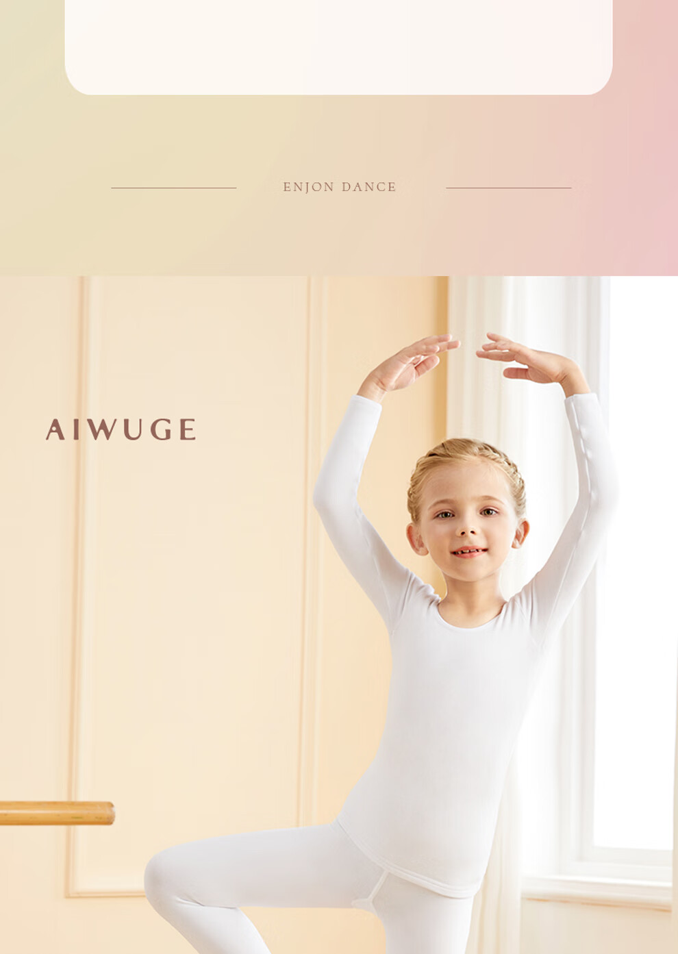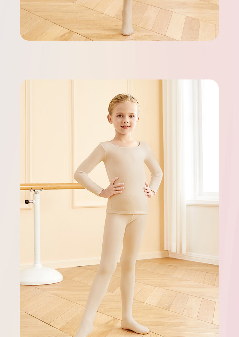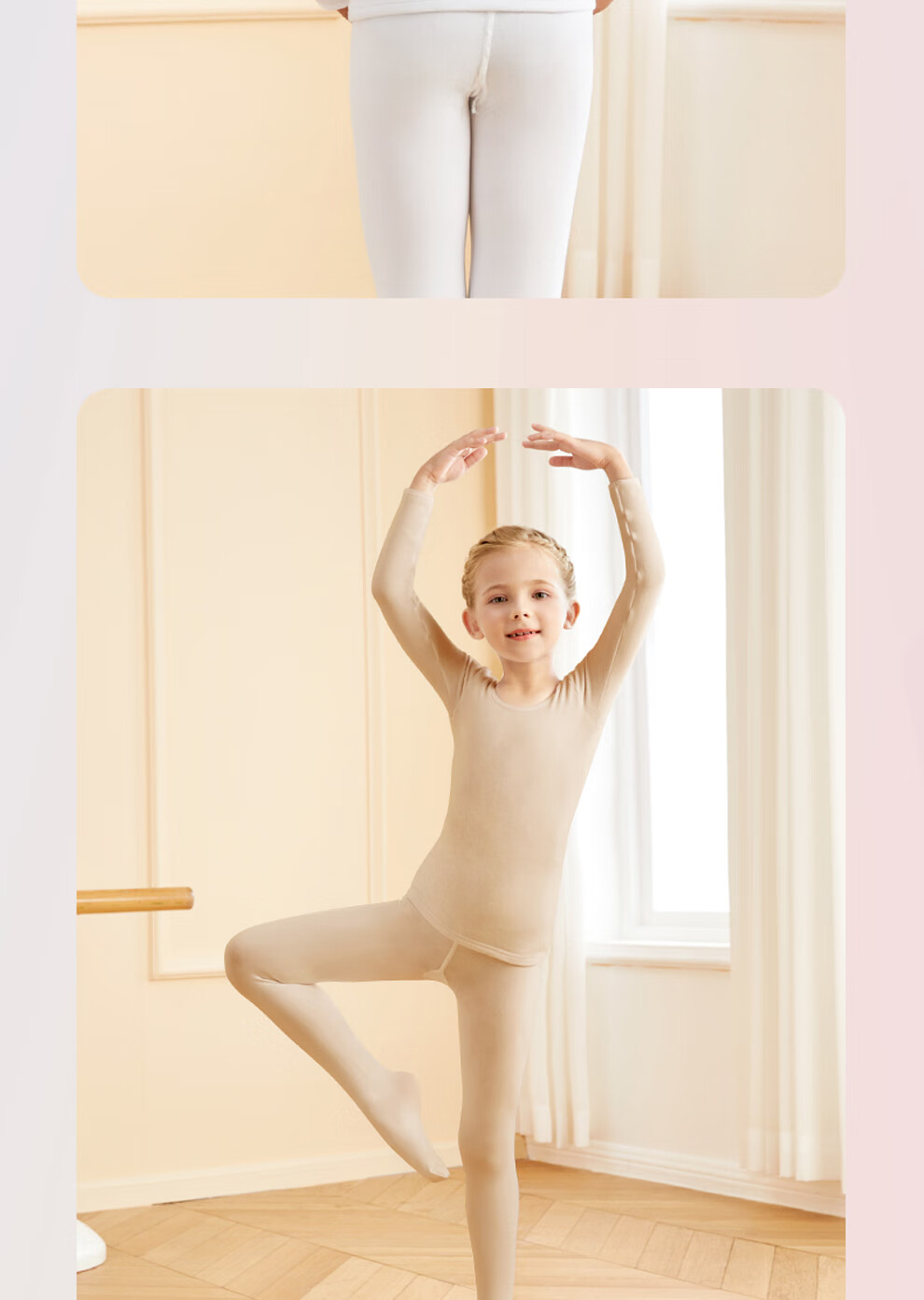 Aiwugo children's dance clothing white T-shirt bottoming suit girls velvet performance clothing invisible baby tight bottoming shirt high elastic foot suit - autumn and winter velvet - white 130 XL size height 130-145cm