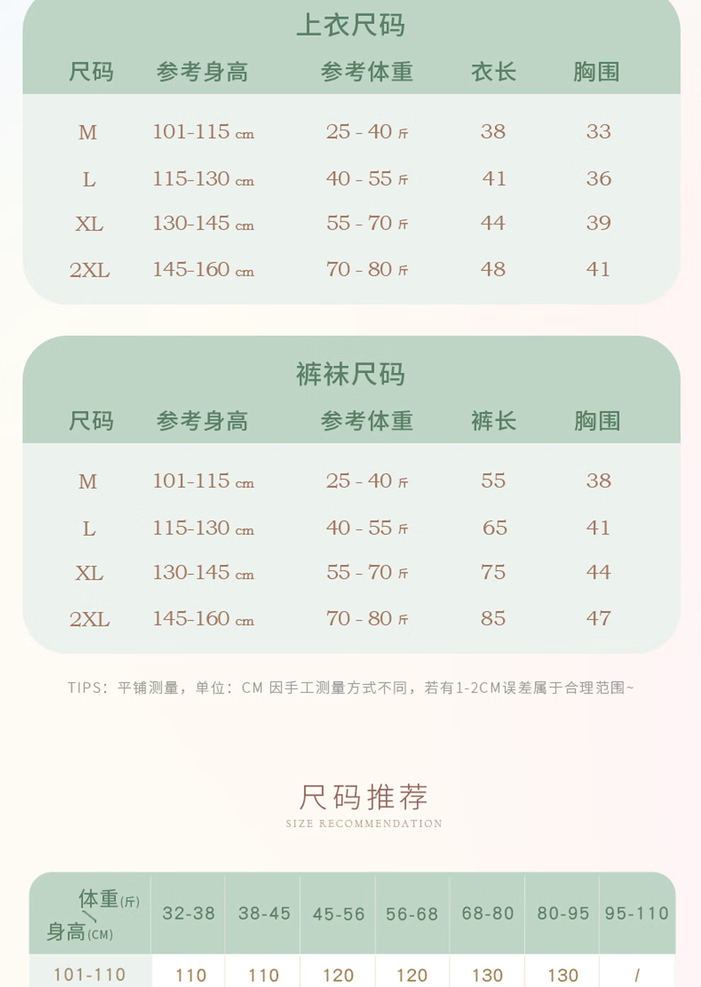 China (cm) 160-165/84-86 165-170 / 88-90 167-172 / 92-96 168-173 / 98-102 170-176 / 106-110