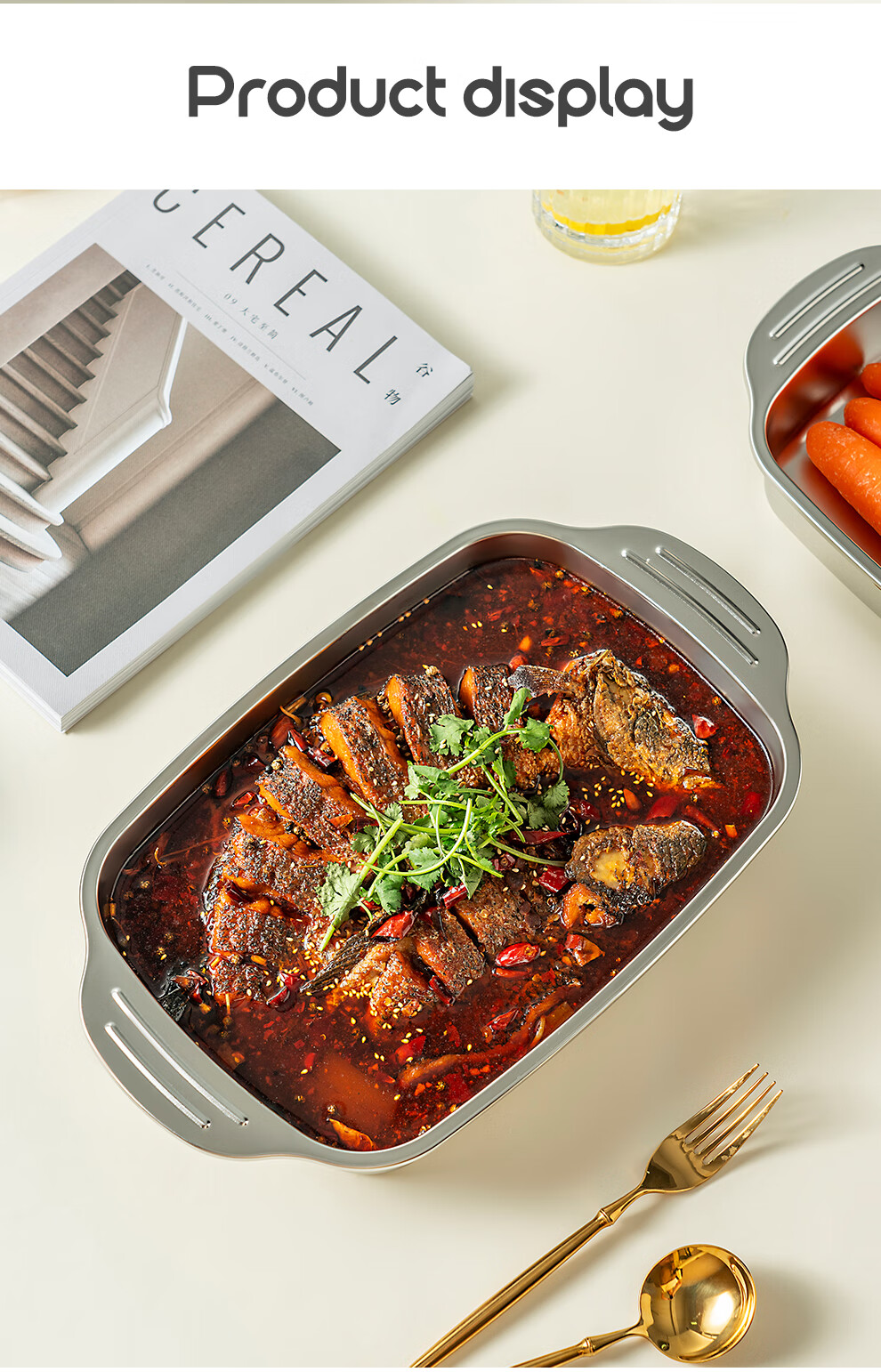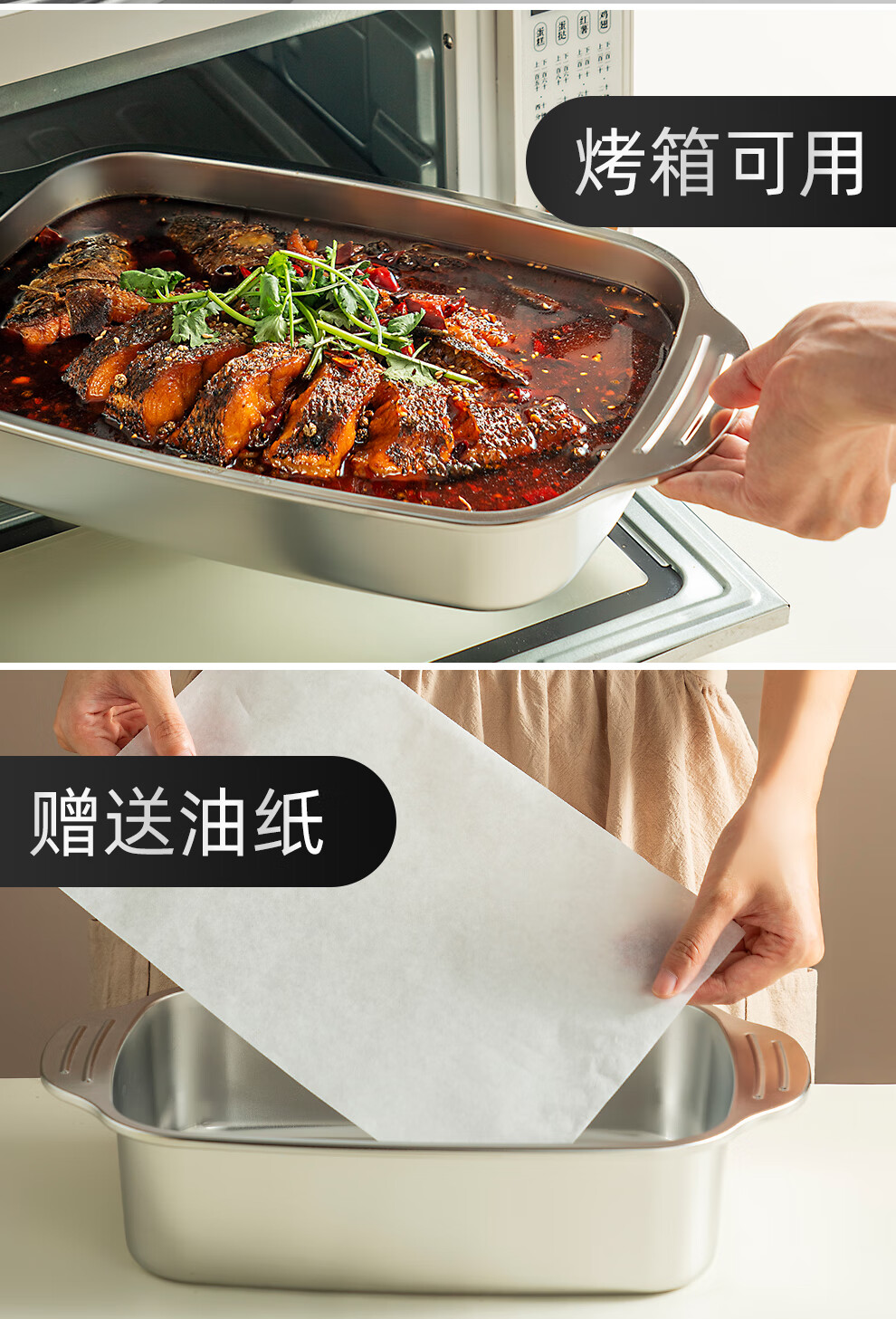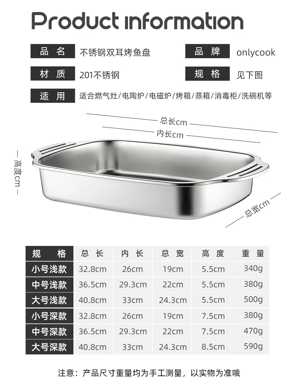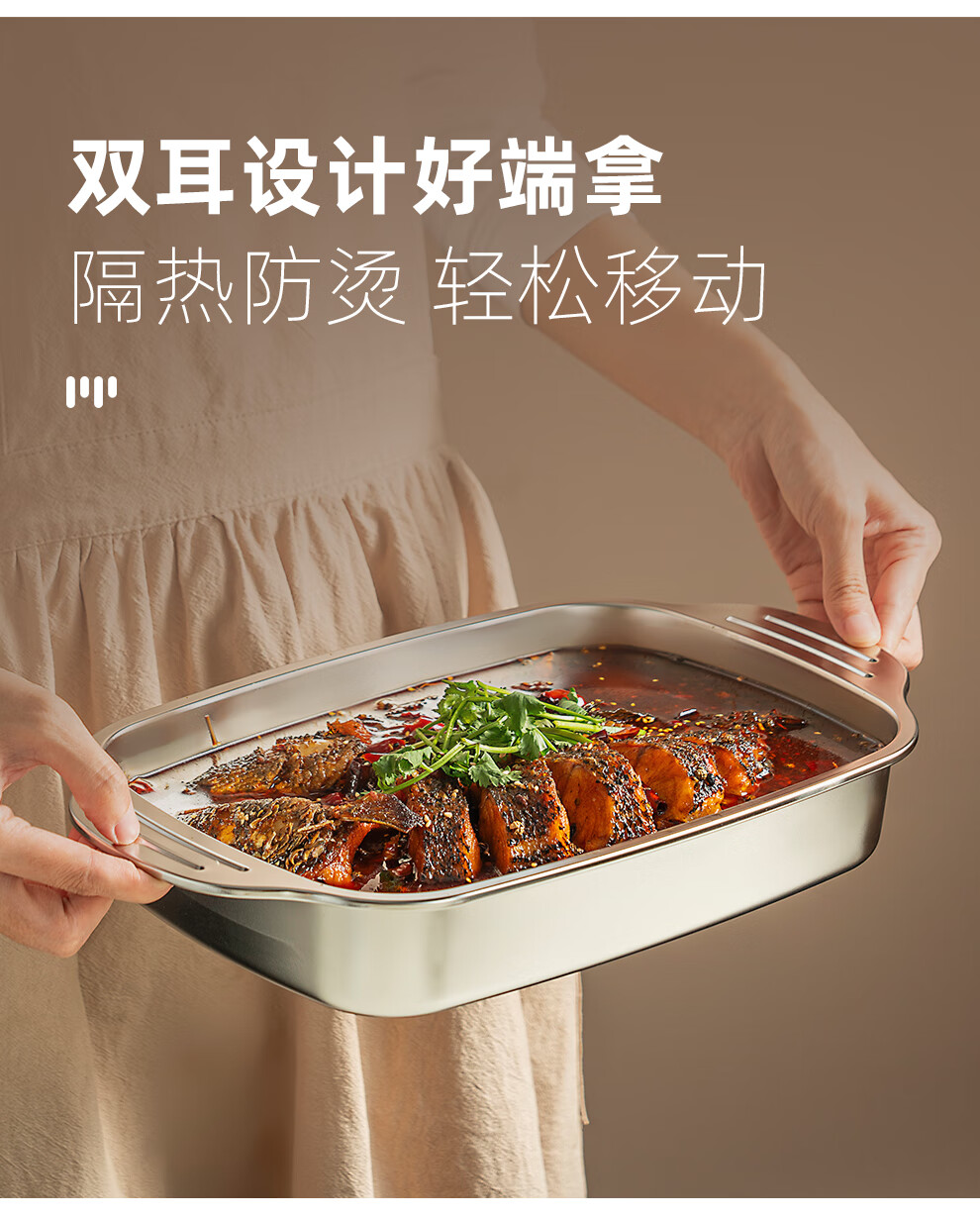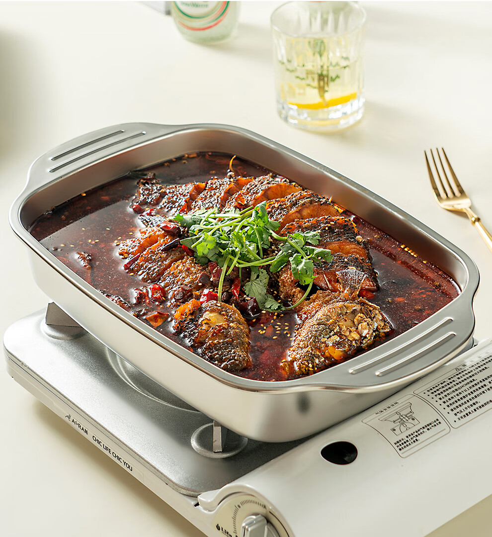 Onlycook stainless steel grilled fish plate open flame gas stove special pot induction cooker baking pan rectangular tray grilled fish plate medium deep plate 1 piece 36.5cm