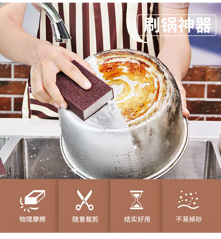 Mengting dishwashing sponge, magic sandpaper block, pot bottom brush, rust and oil removal scouring pad, dishwashing sponge - 10 pieces