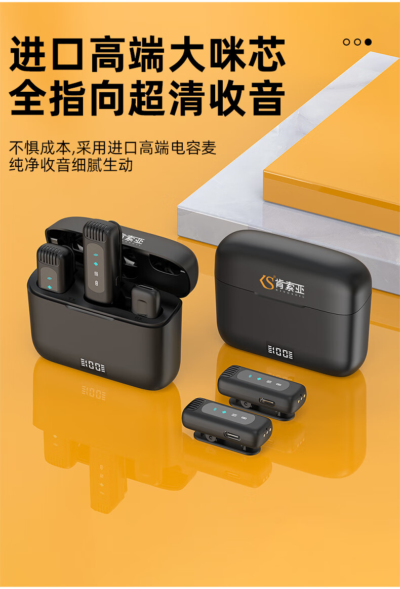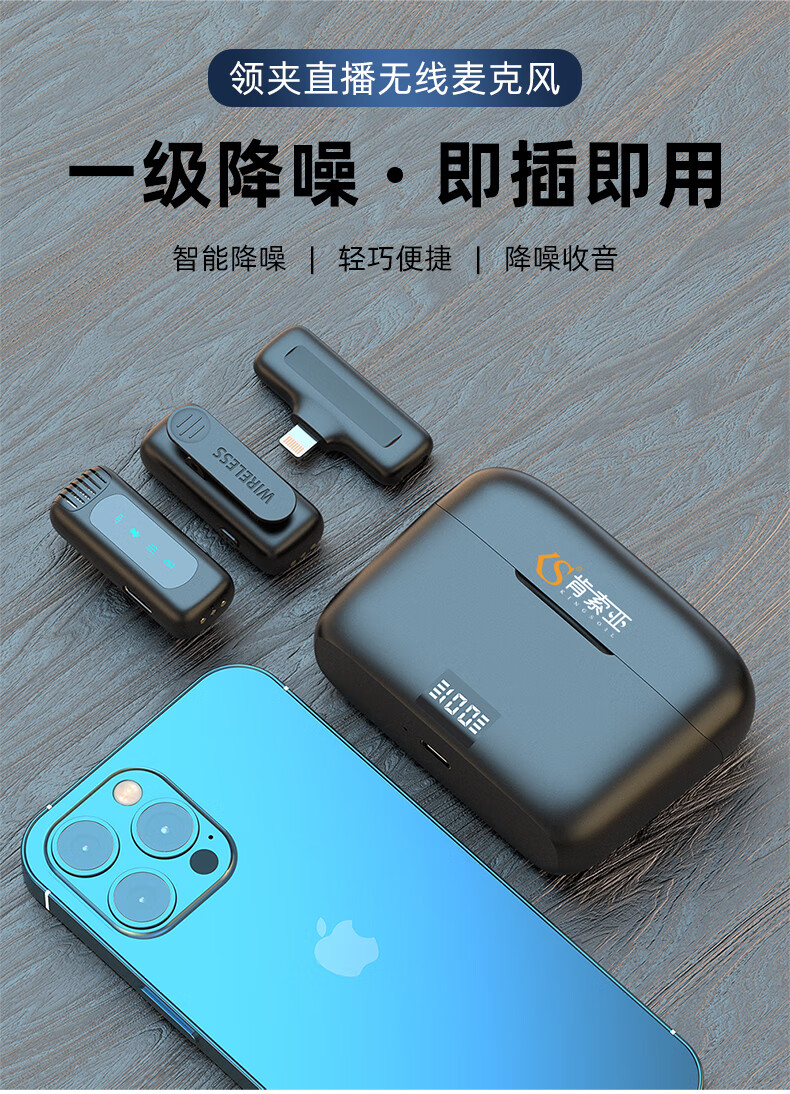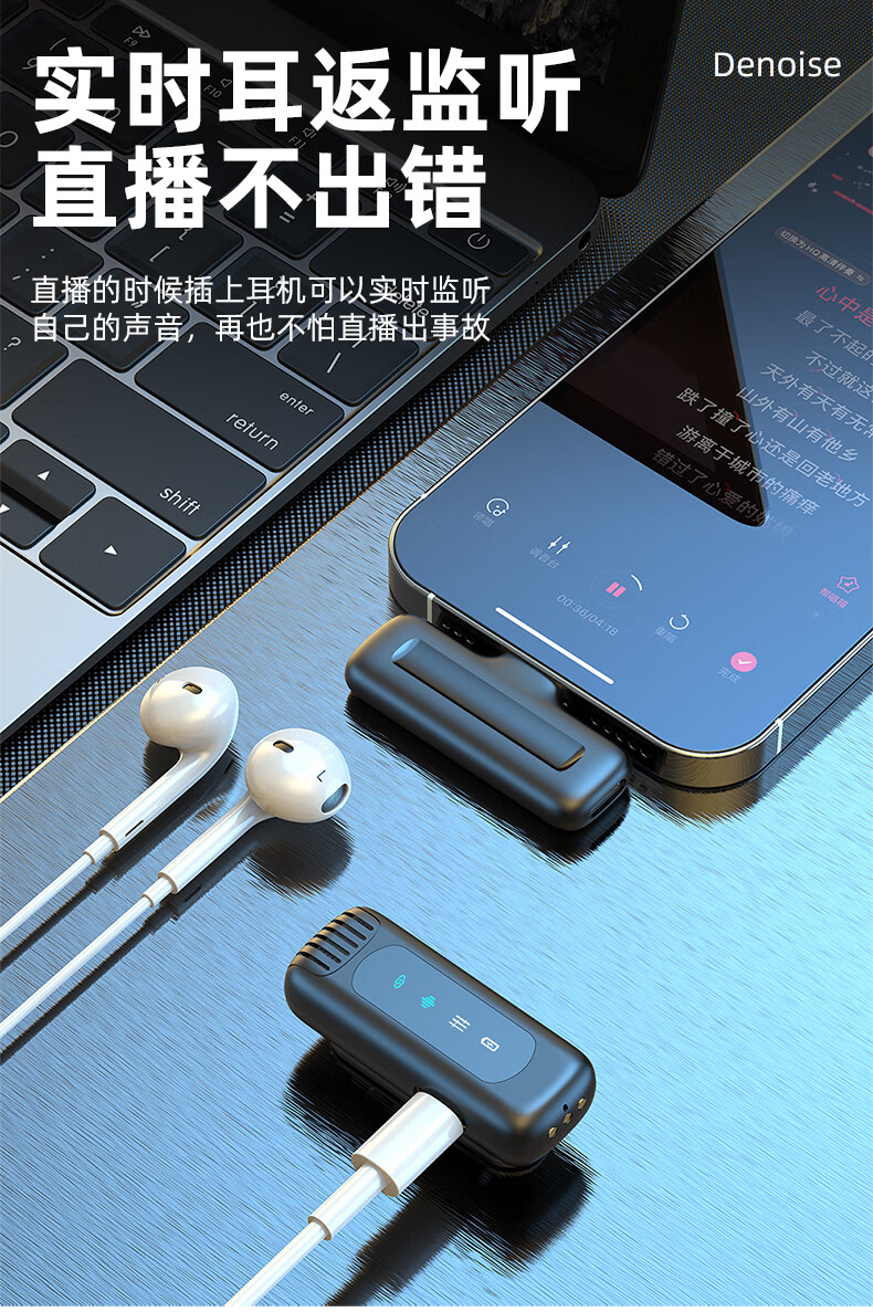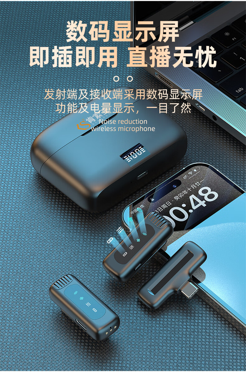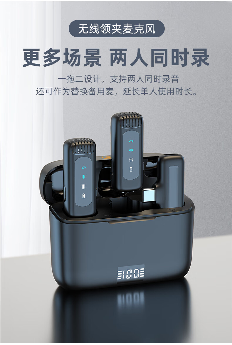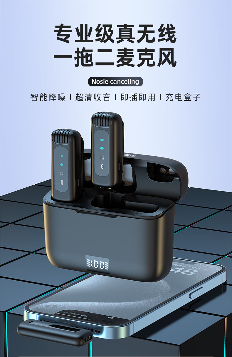Kensoya J16 Wireless Lavalier Microphone Computer Live Broadcasting Microphone Intelligent Noise Reduction Mobile Phone Microphone Shooting Vlog Eating and Broadcasting Video Sound Card Outdoor Anchor Recording Pickup Digital Display Version One-to-Two Universal Mobile Phone Computer Free Fast Charging Cable