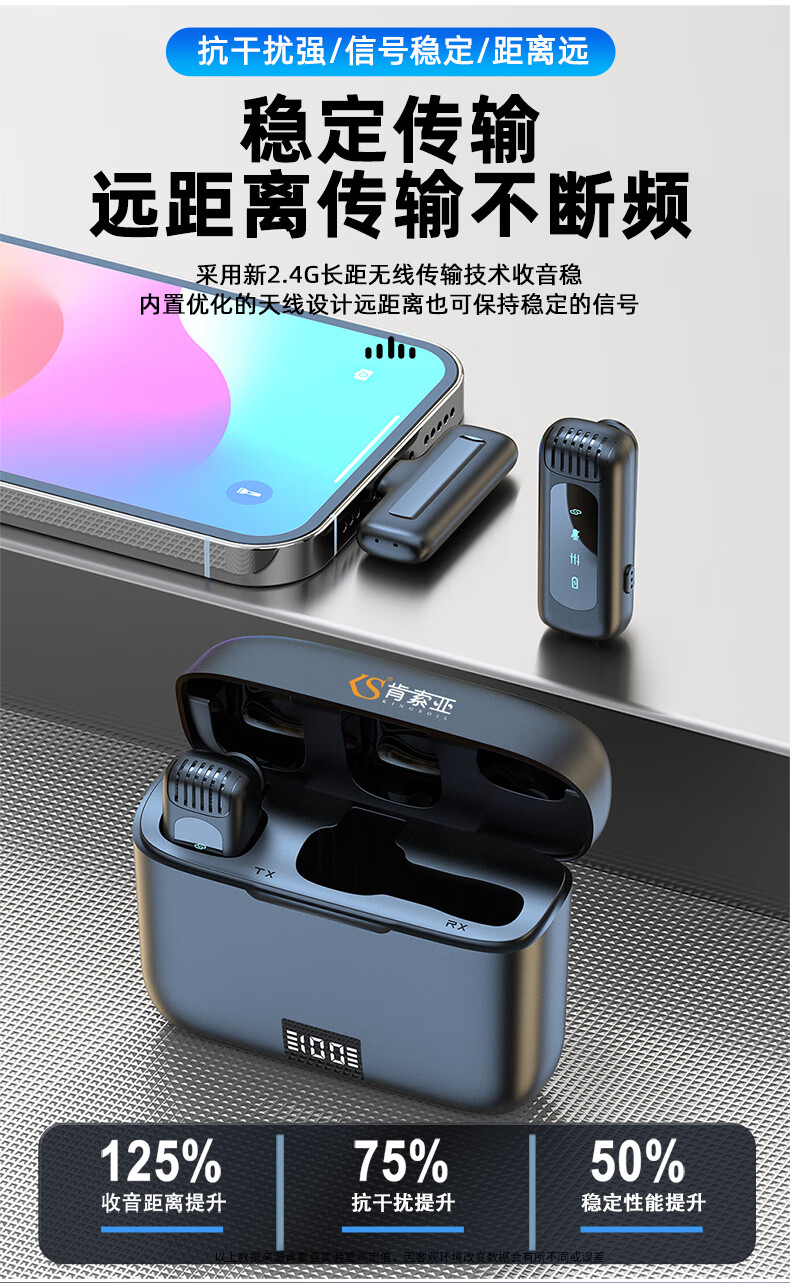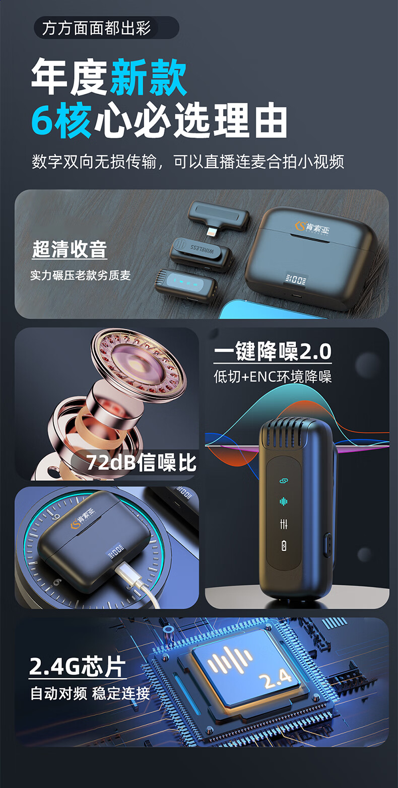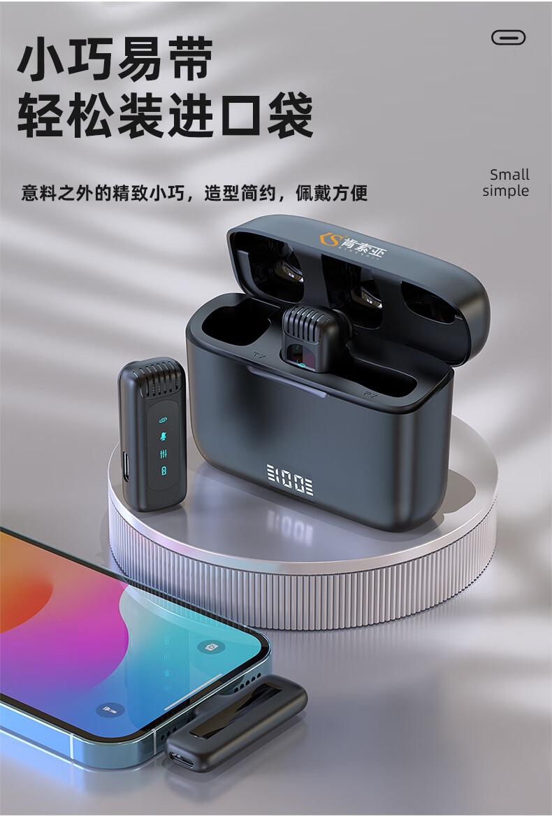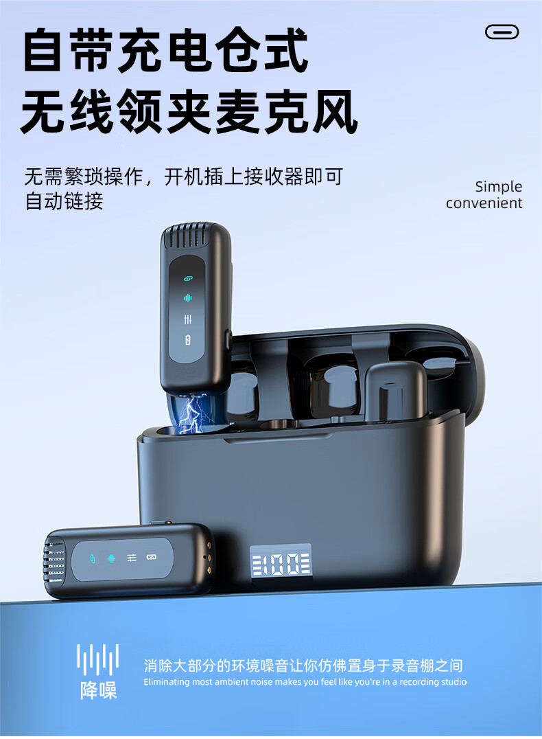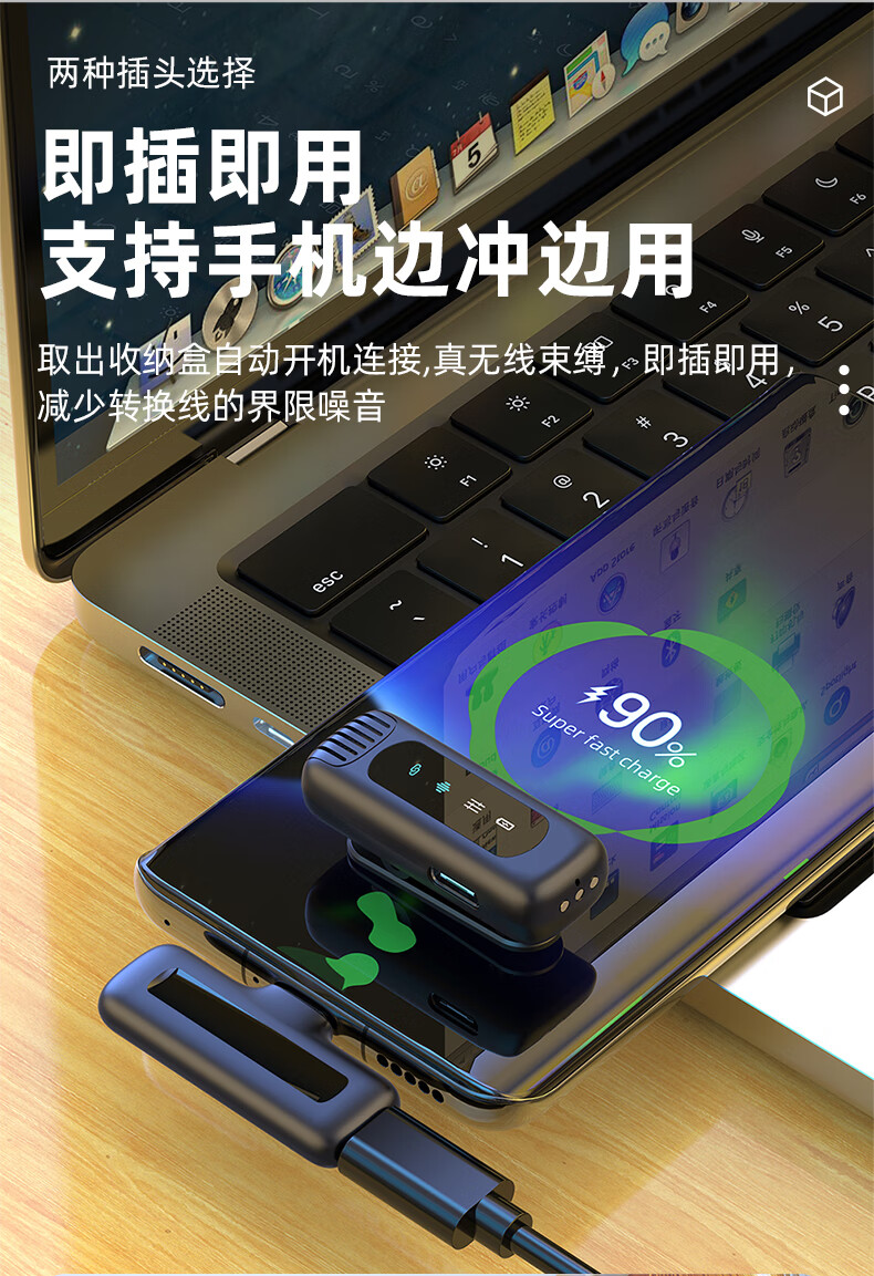 Kensoya J16 Wireless Lavalier Microphone Computer Live Broadcasting Microphone Intelligent Noise Reduction Mobile Phone Microphone Shooting Vlog Eating and Broadcasting Video Sound Card Outdoor Anchor Recording Pickup Digital Display Version One-to-Two Universal Mobile Phone Computer Free Fast Charging Cable