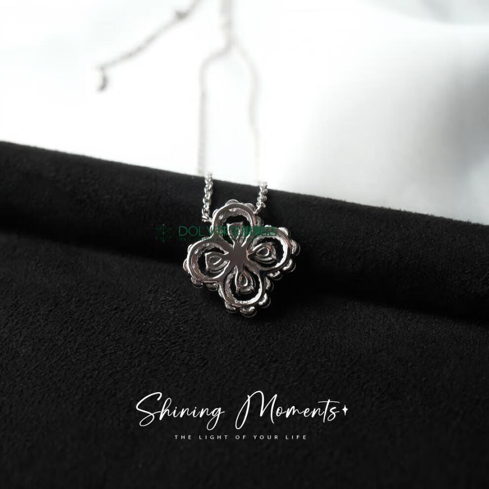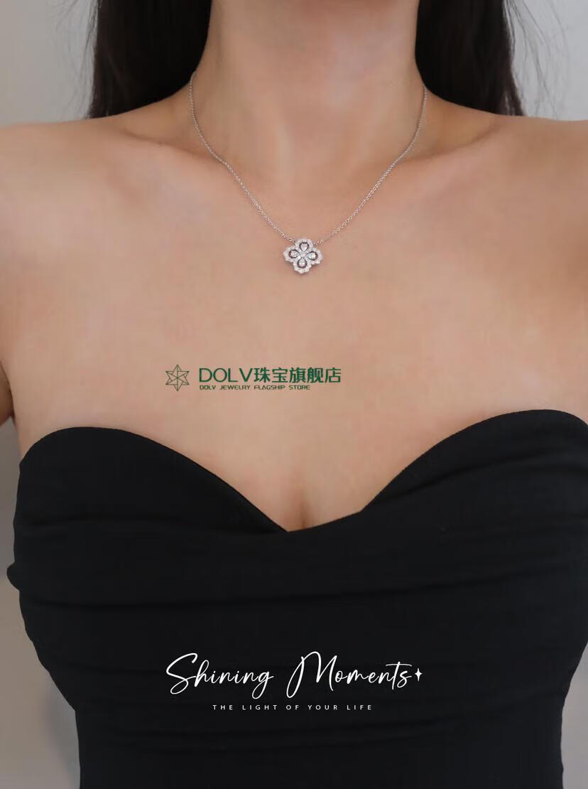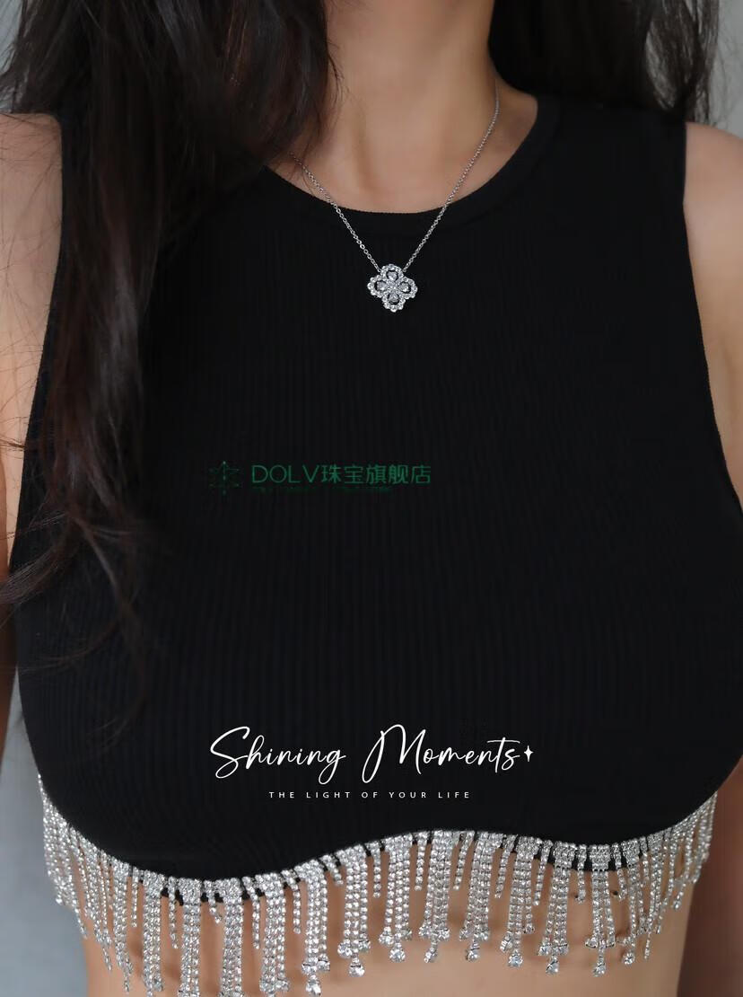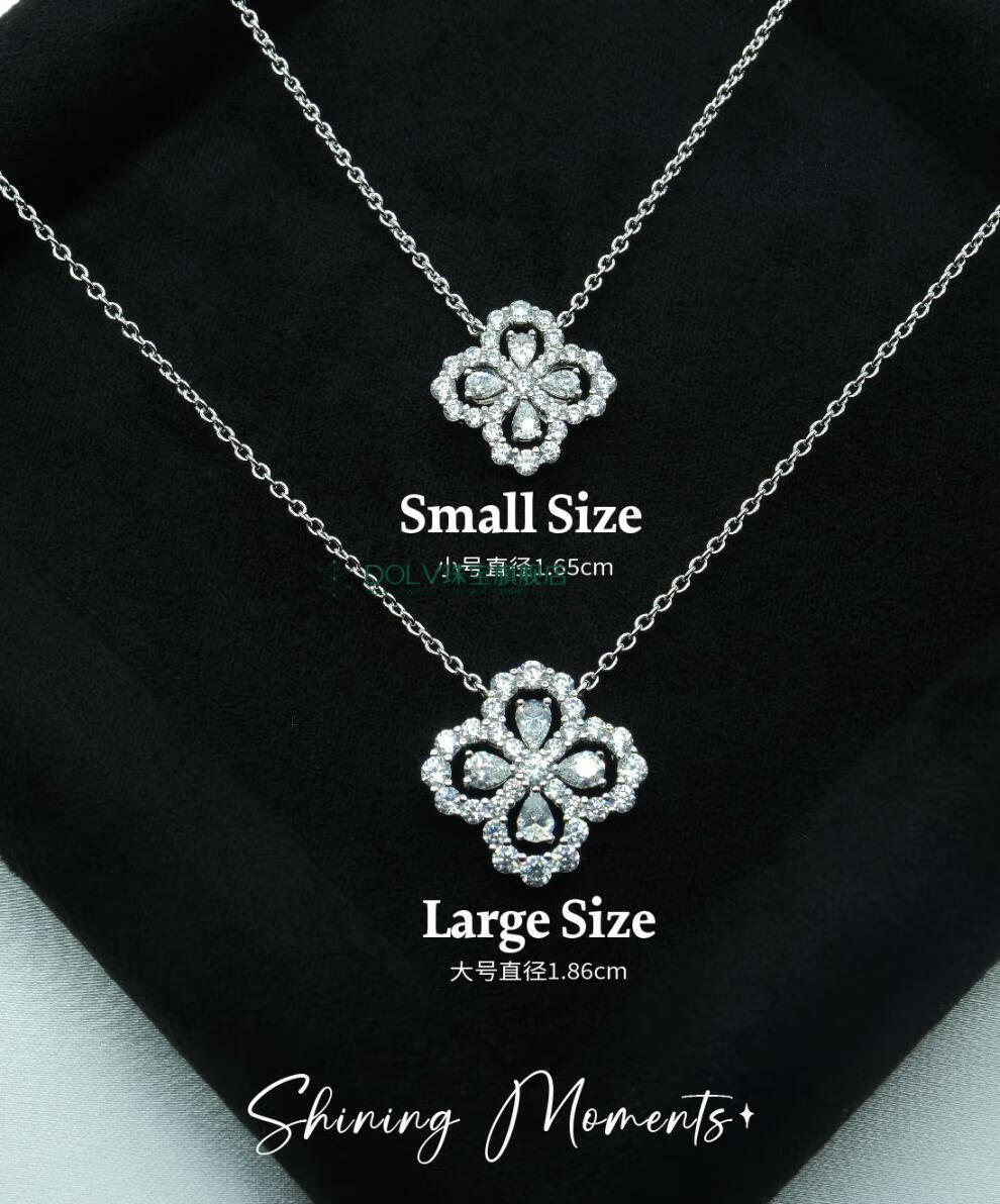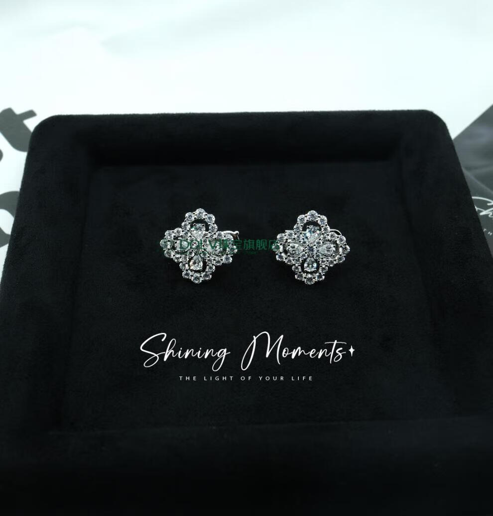 Fat Donglai's same style high luxury platinum four-leaf clover necklace HW925 full diamond light luxury niche earrings small ins large loop necklace (40+5cm) (S925+5A