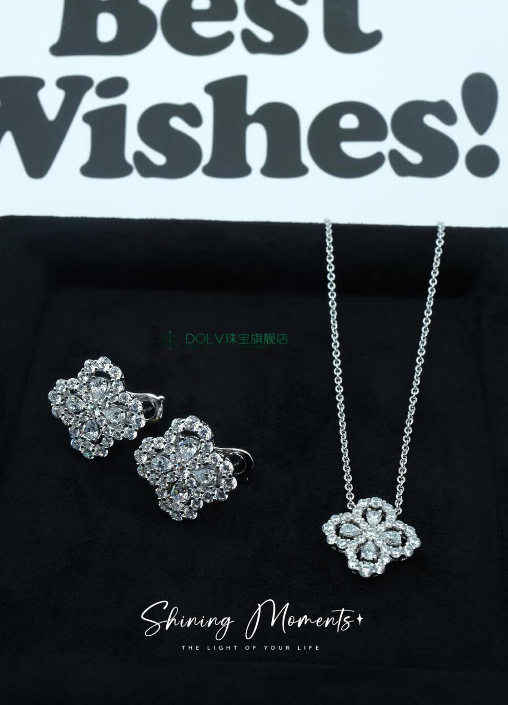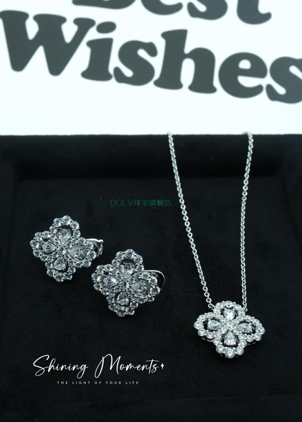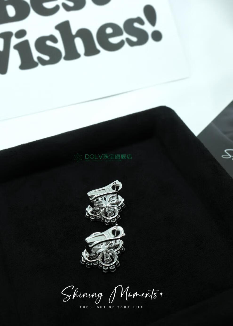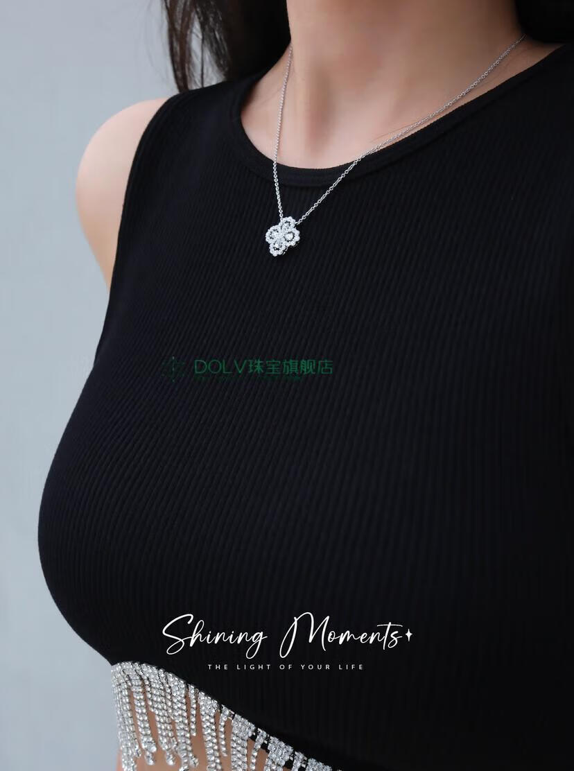 Fat Donglai's same style high luxury platinum four-leaf clover necklace HW925 full diamond light luxury niche earrings small ins large loop necklace (40+5cm) (S925+5A