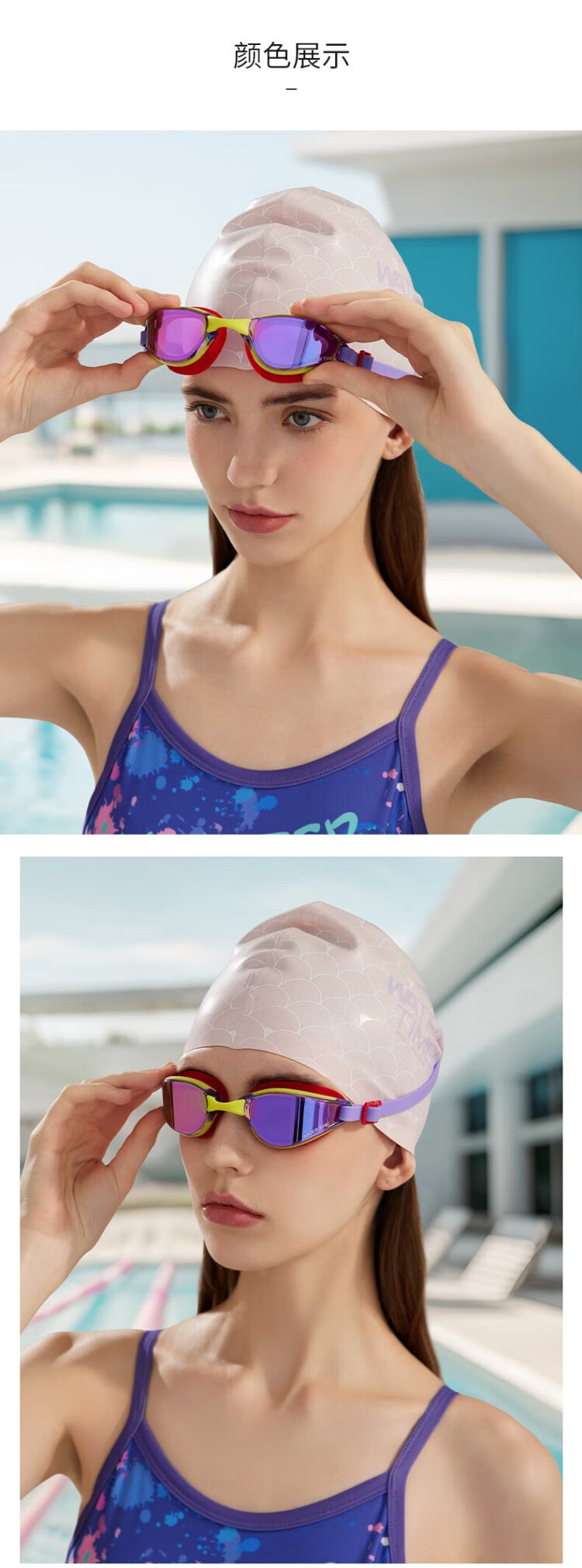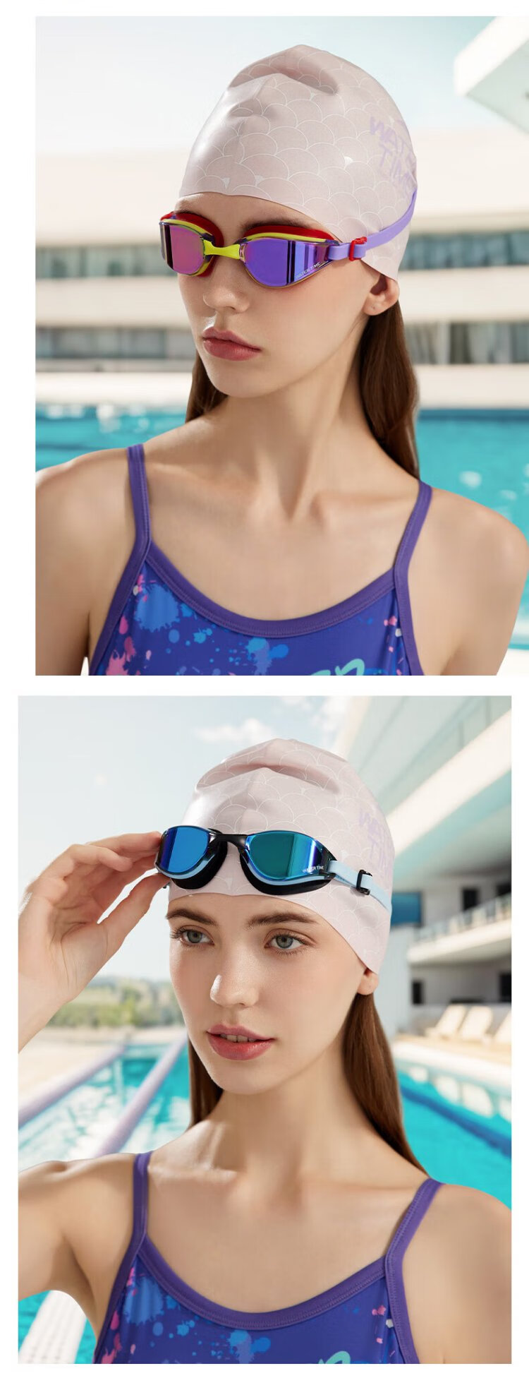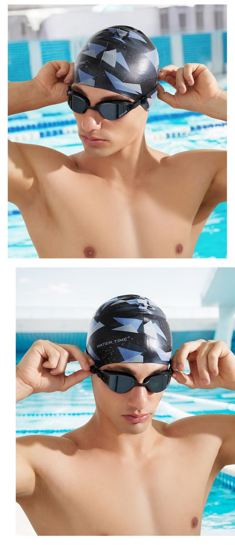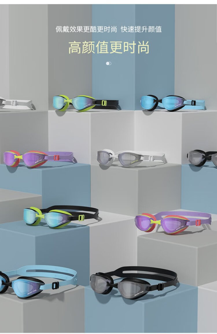 WATERTIME swimming goggles for men and women, adult anti-fog coating, professional racing swimming myopia glasses, swimming cap set, swimming equipment, Paris night, myopia 300 degrees