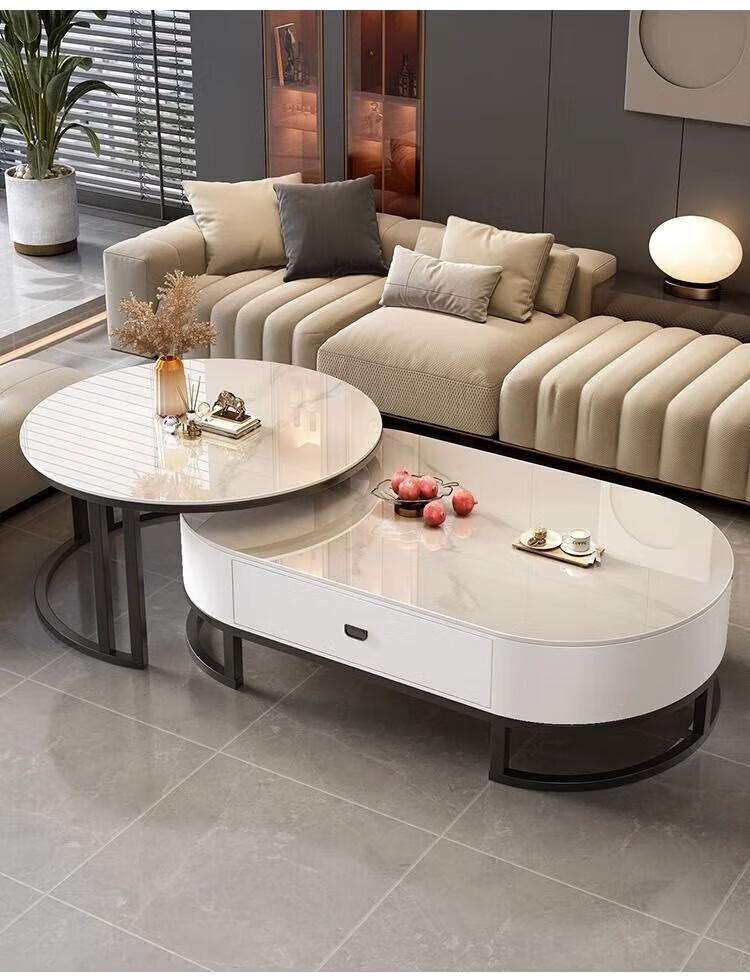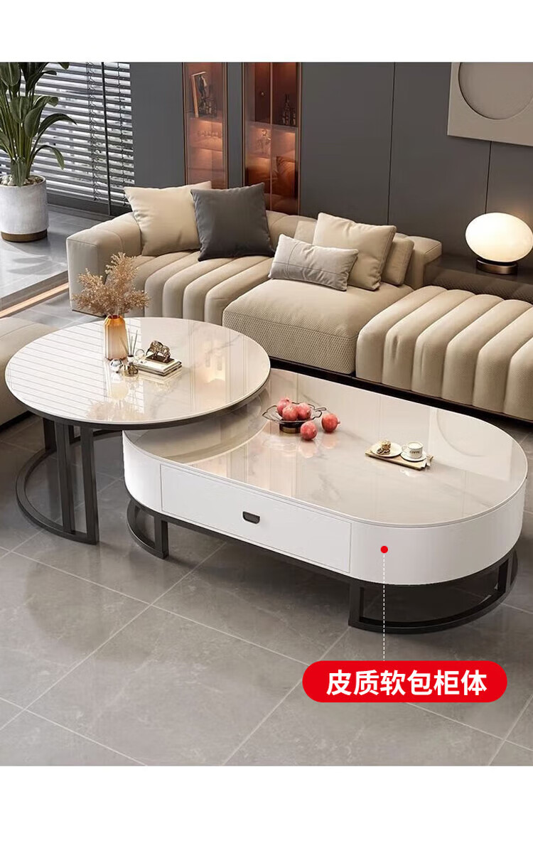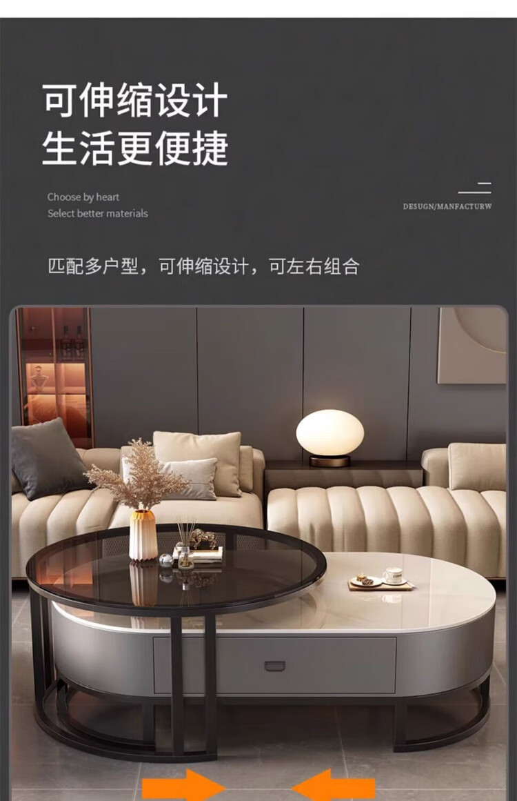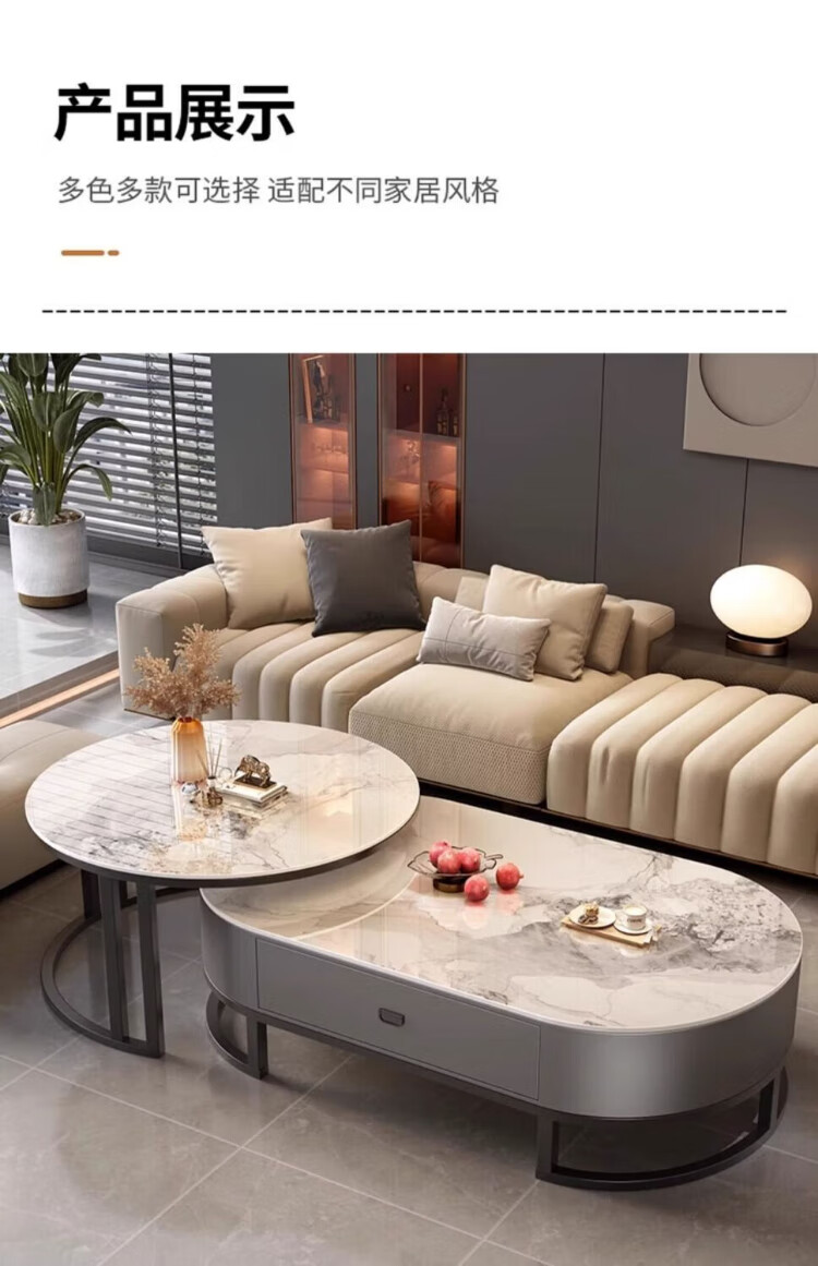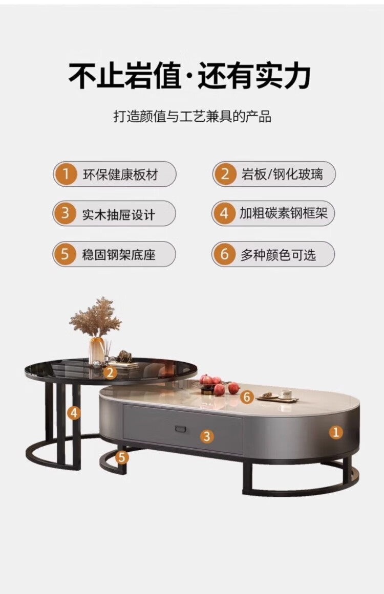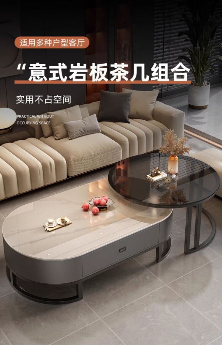 Top ax slate coffee table living room home modern light luxury simple 2025 new oval tea table tea table small apartment coffee table black frame gray cabinet 100 snow mountain white + 70 snow mountain white