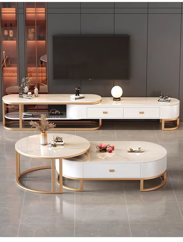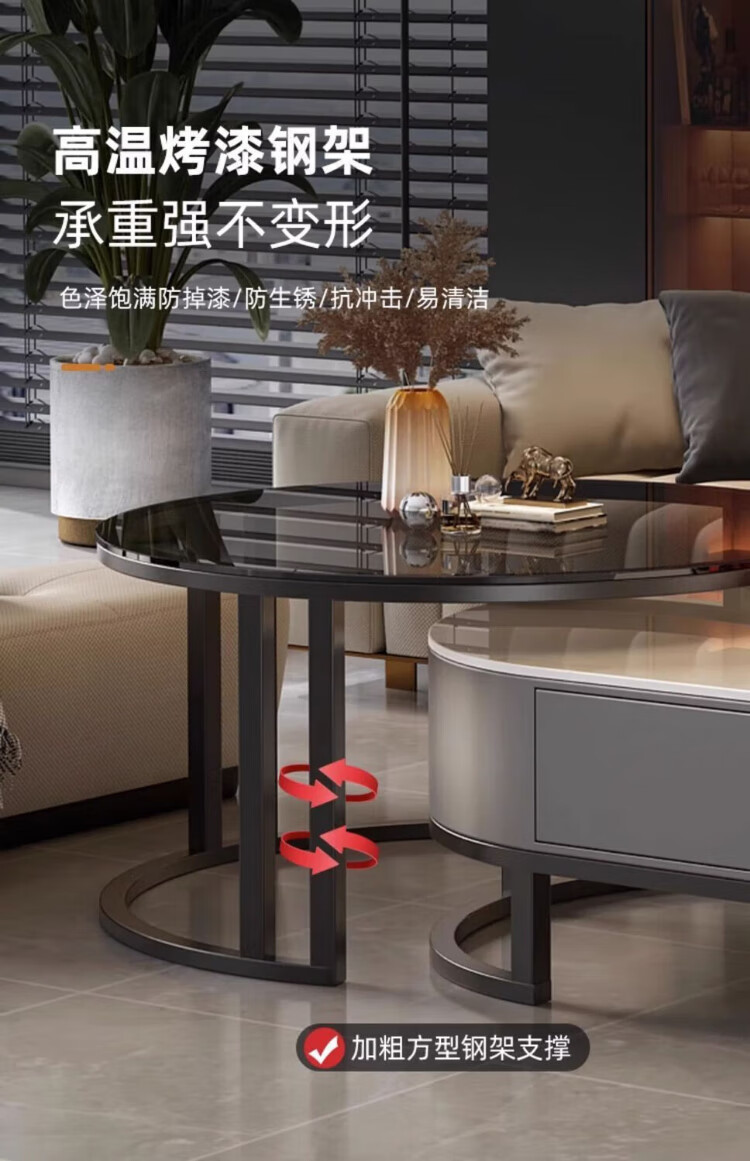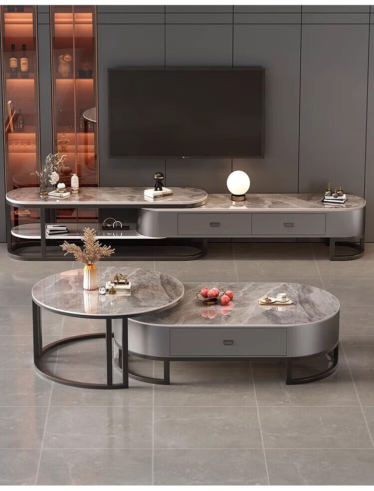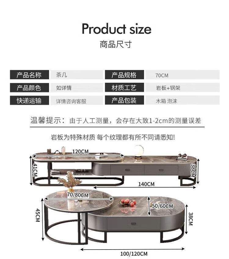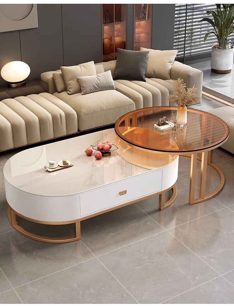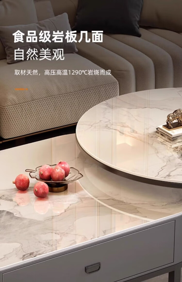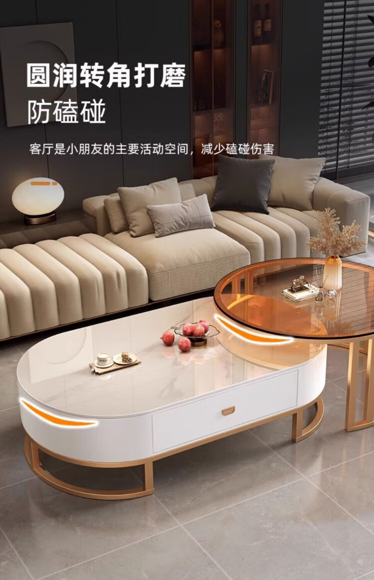 Top ax slate coffee table living room home modern light luxury simple 2025 new oval tea table tea table small apartment coffee table black frame gray cabinet 100 snow mountain white + 70 snow mountain white