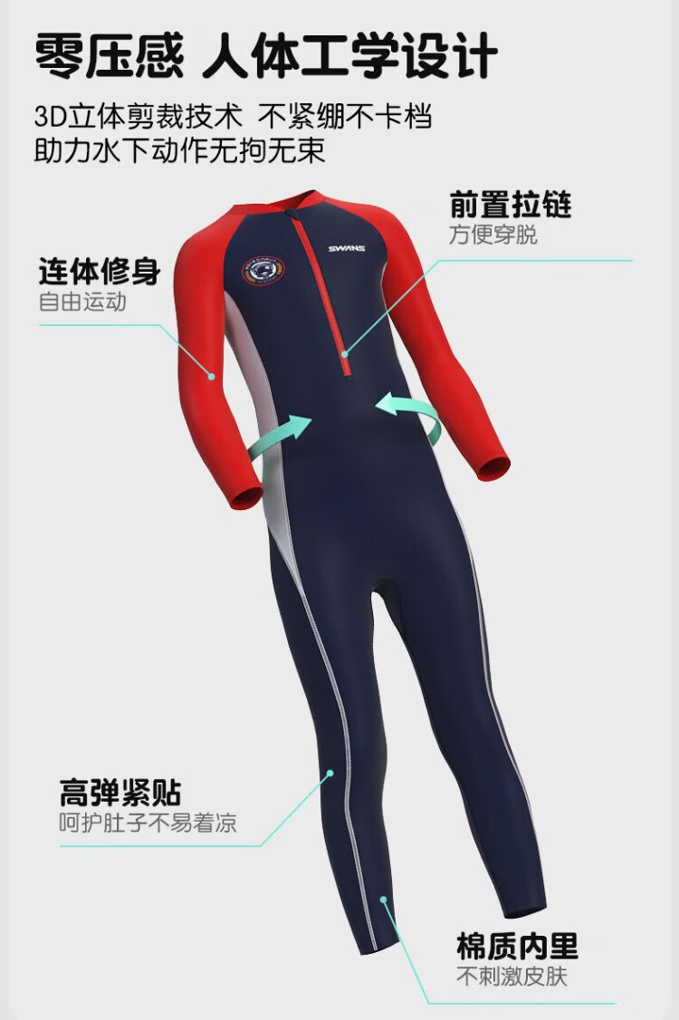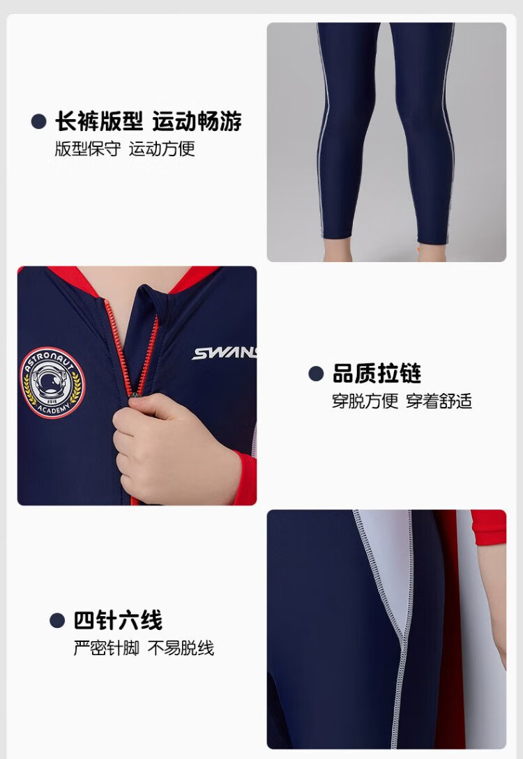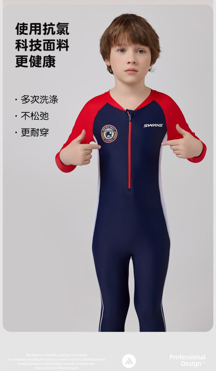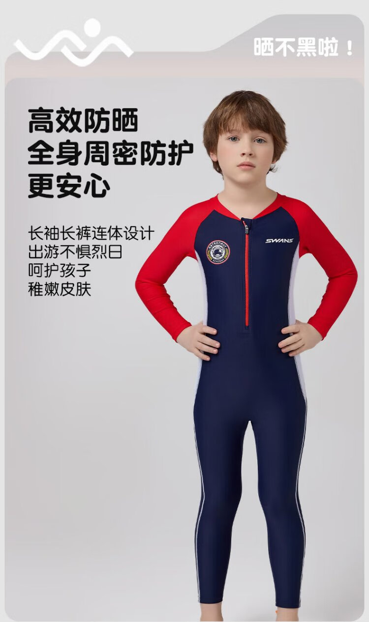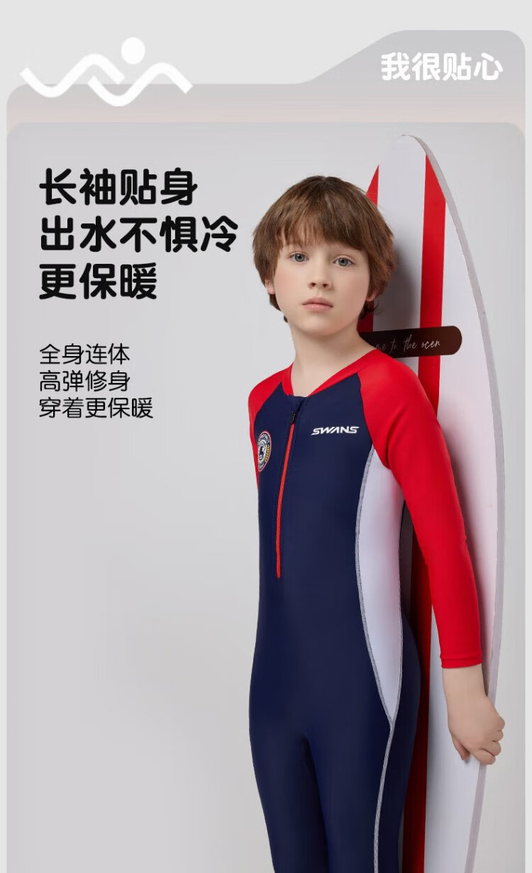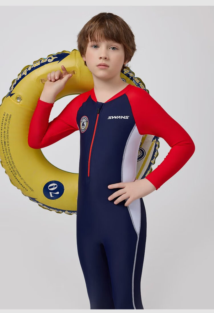 SWANS children's one-piece swimsuit, boys' long-sleeved sun protection, quick-drying training professional wetsuit for middle-aged and older boys, navy blue 150