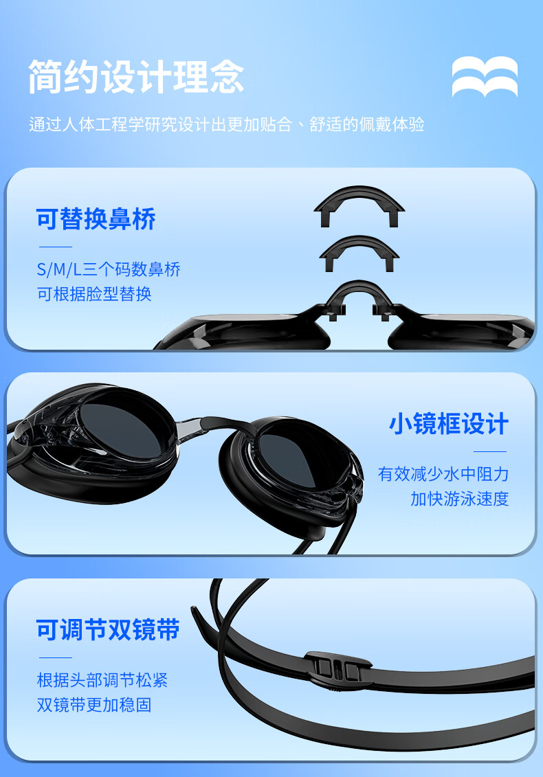 Langxiao mirror small frame waterproof anti-fog swimming goggles high-definition professional equipment for children, men and women, universal swimming cap three-piece set, fashionable black swimming cap + nose clip earplugs set