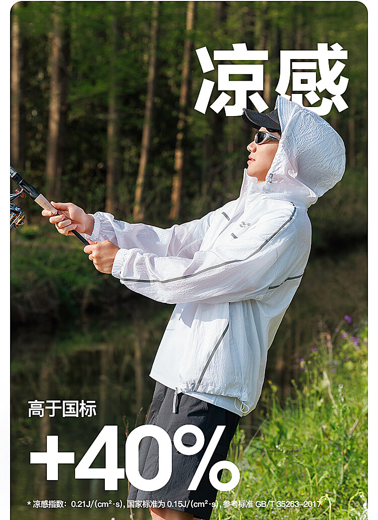 Bosideng (BOSIDENG) sun protection clothing men's summer outdoor fishing clothing anti-UV contrasting stripes wind-feeling wave particles breathable and cool jacket daylight white 8148 M 175/96A