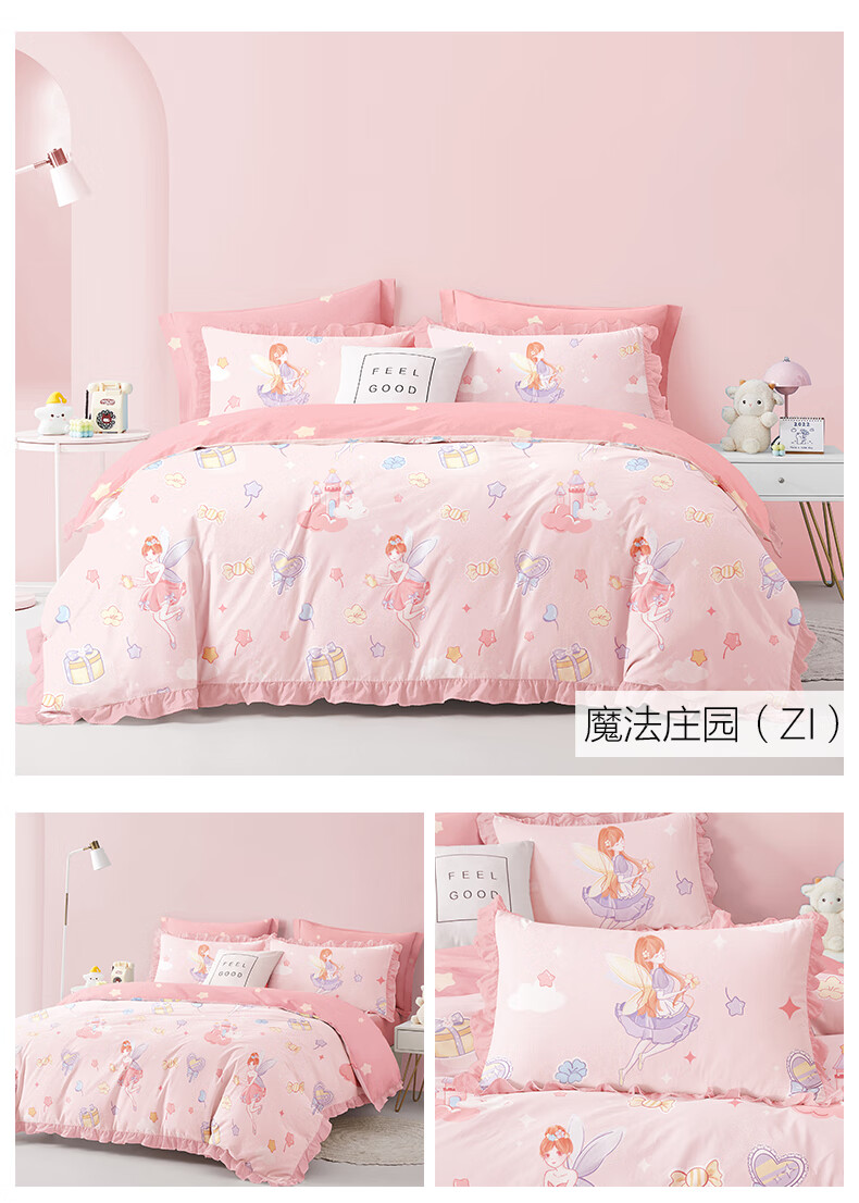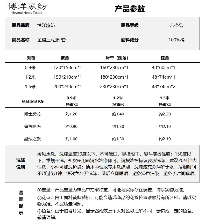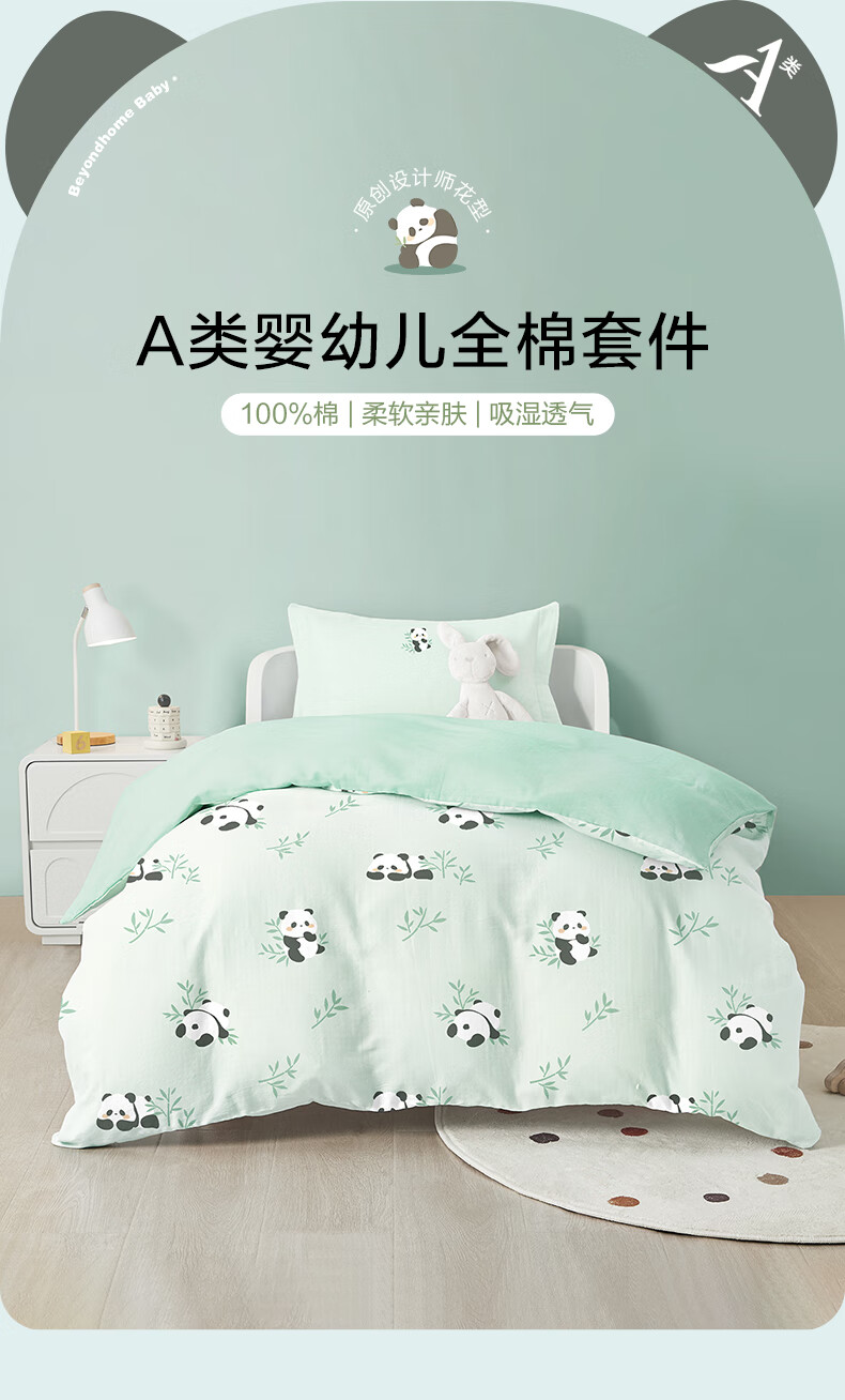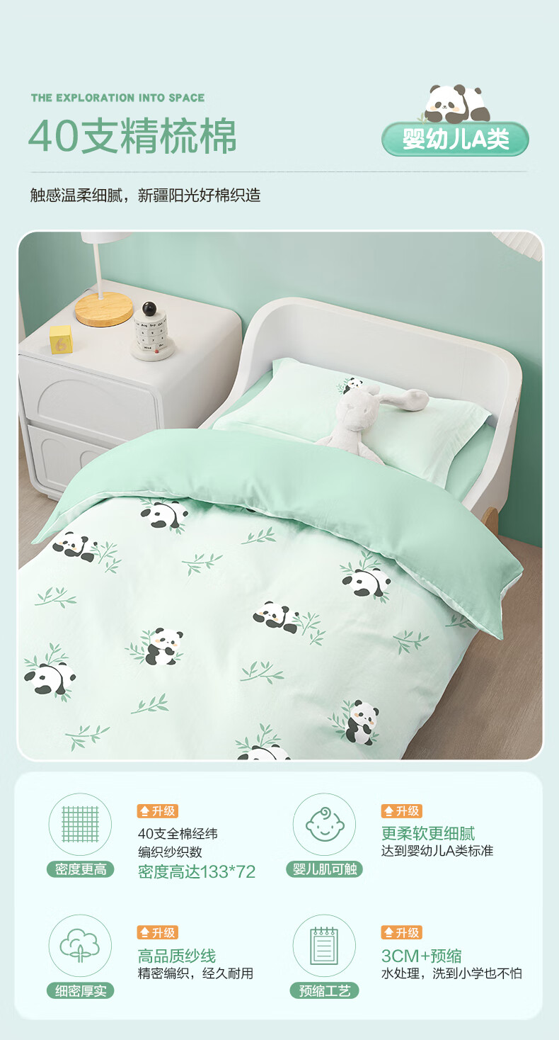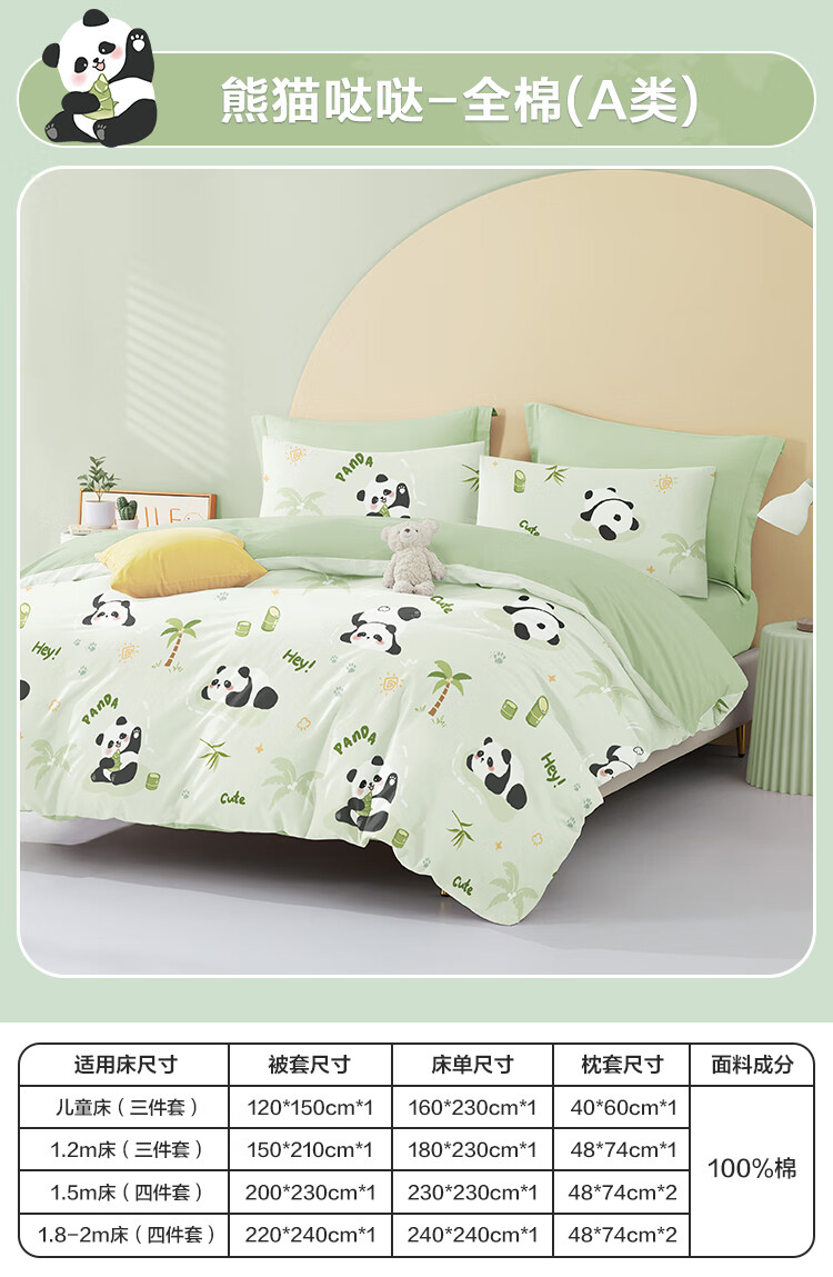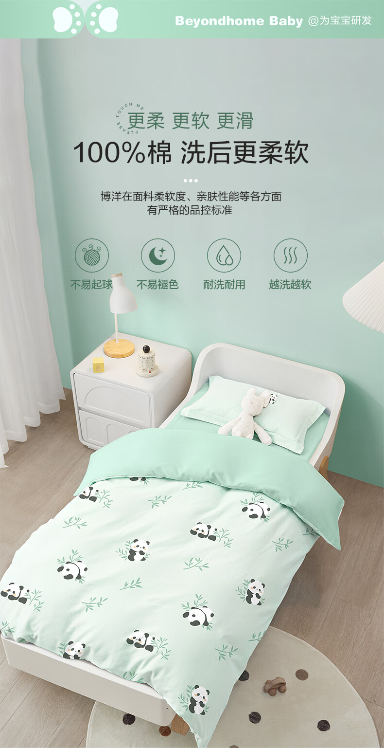 Boyang Baby (Beyond Kids) cotton three-piece set, children's four-piece set, cartoon style and cute student dormitory, pure cotton children's set for all seasons, 40 pieces, cotton set, dinosaur baby (fitted sheet) 1.35 sheet style (quilt cover 150*210cm) three-piece set