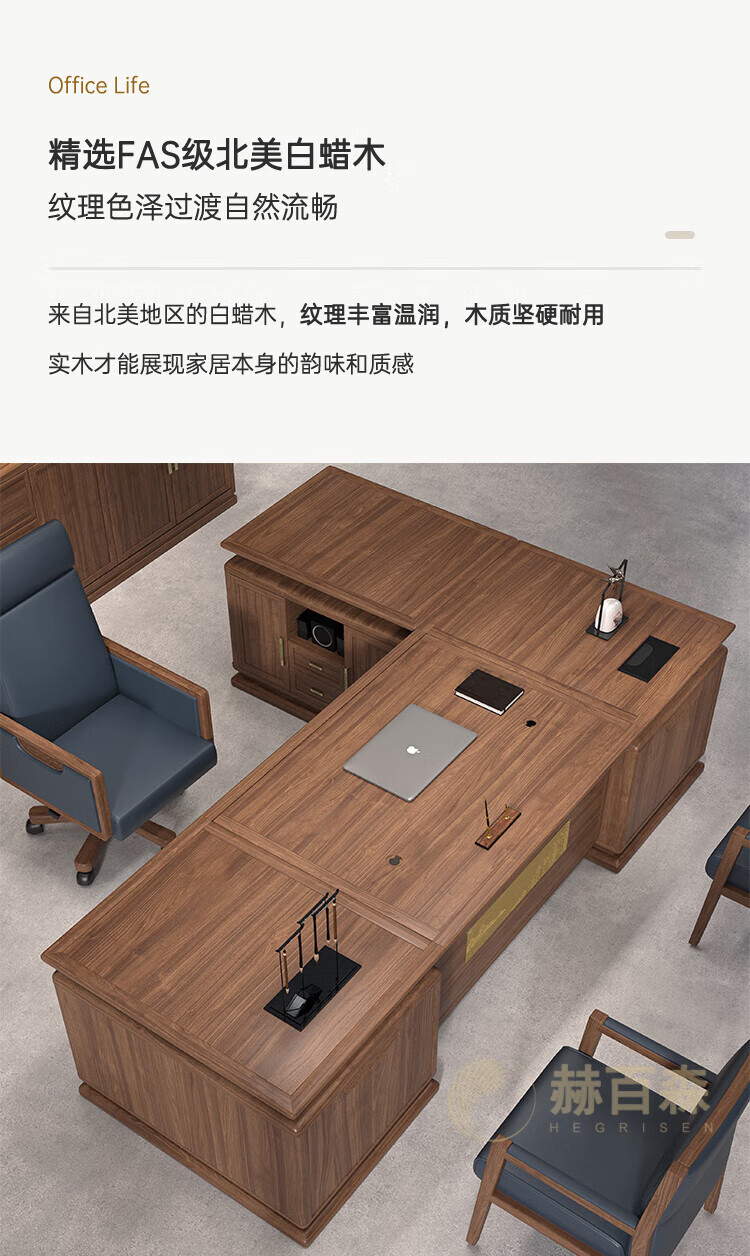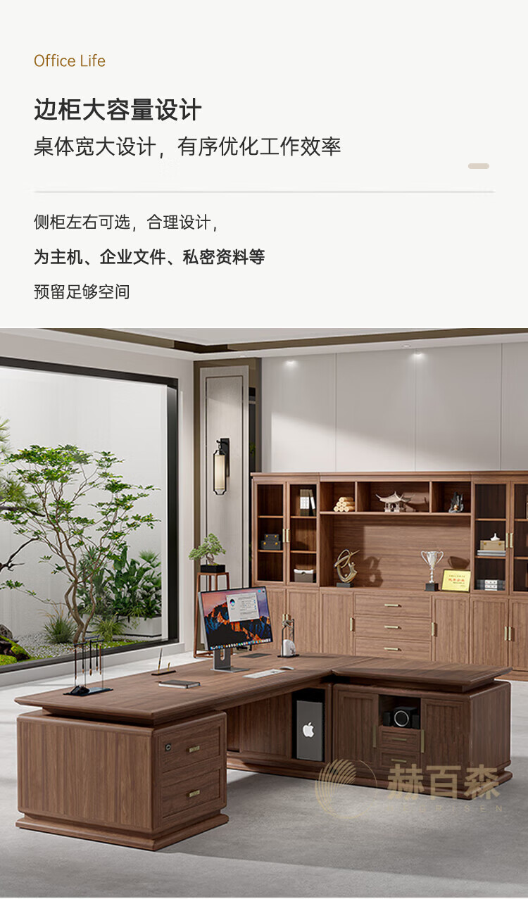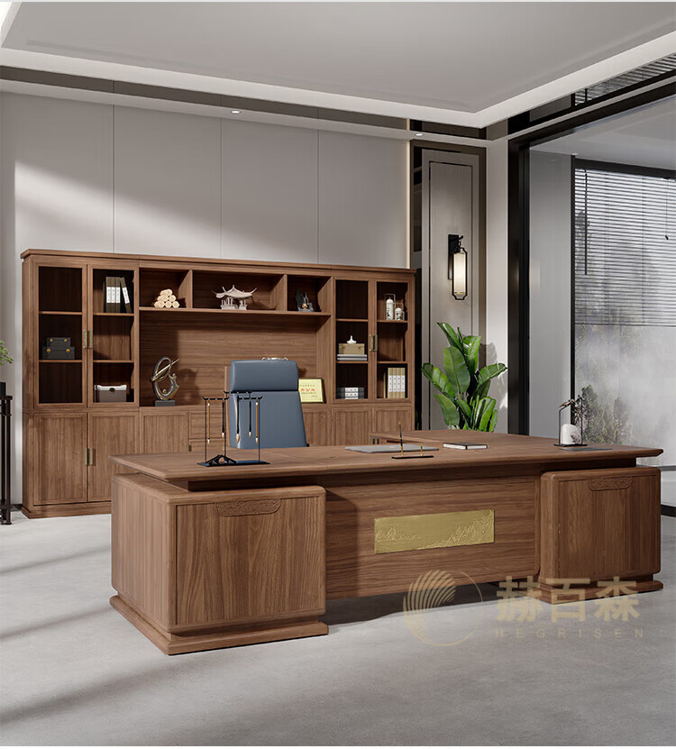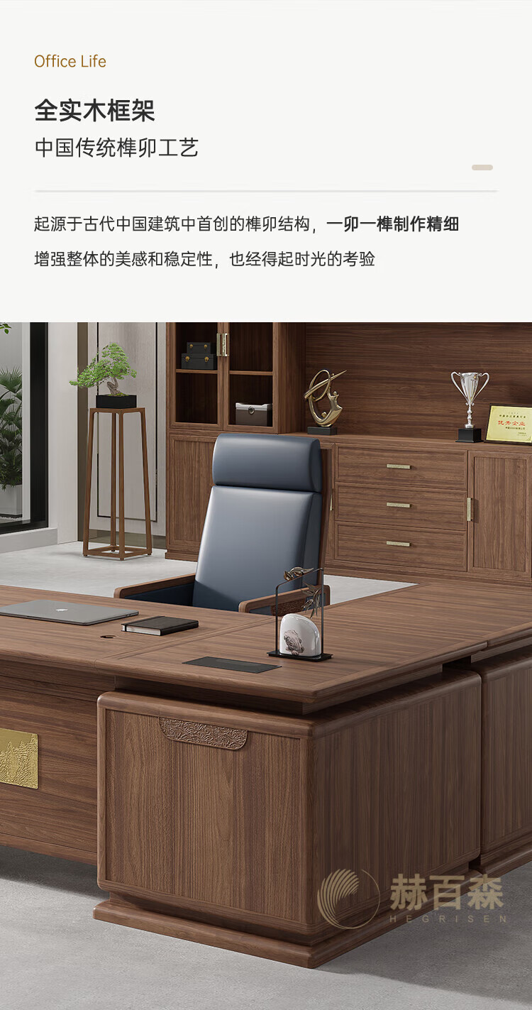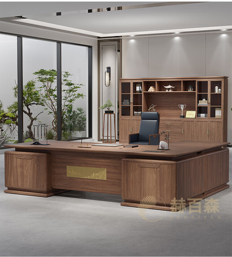 Hebson New Chinese Style Boss Desk Office Desk and Chair Combination Simple All Solid Wood President Chairman's Office Executive Desk High-end 1.8 Meter Desk + Side Table