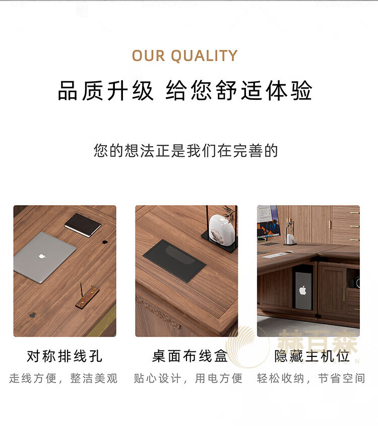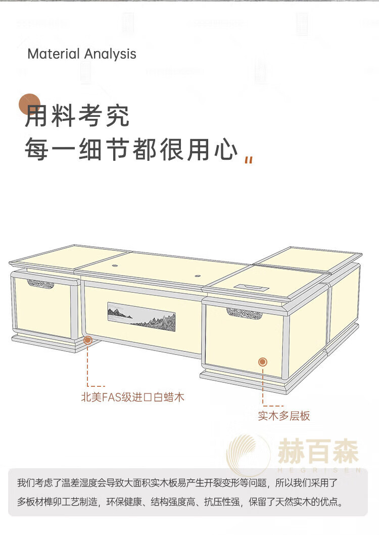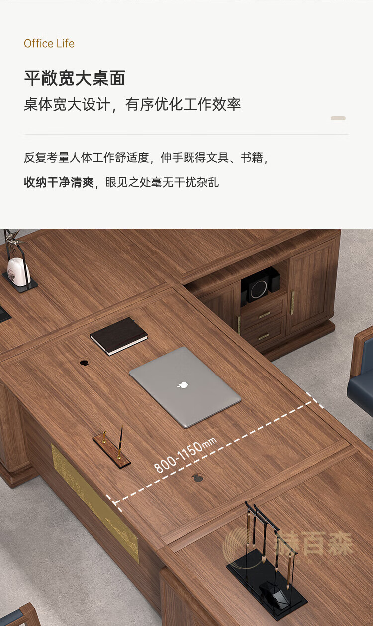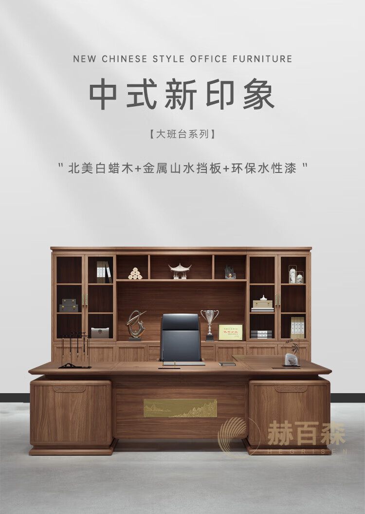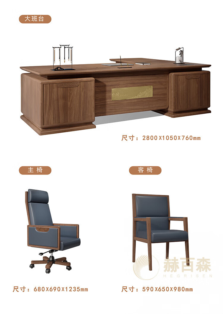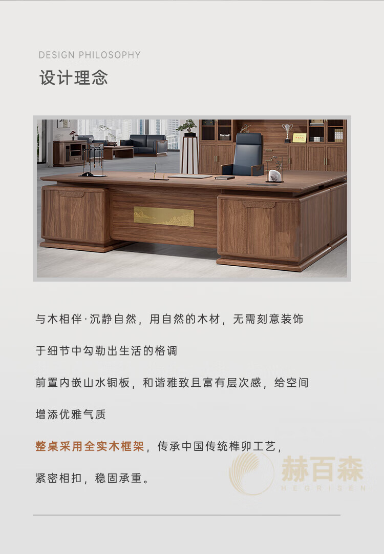 Hebson New Chinese Style Boss Desk Office Desk and Chair Combination Simple All Solid Wood President Chairman's Office Executive Desk High-end 1.8 Meter Desk + Side Table