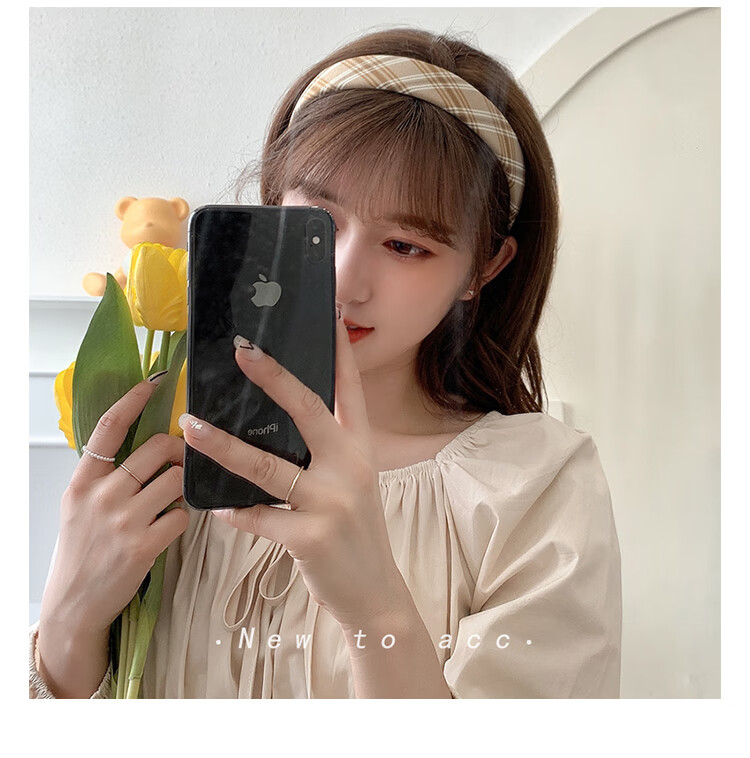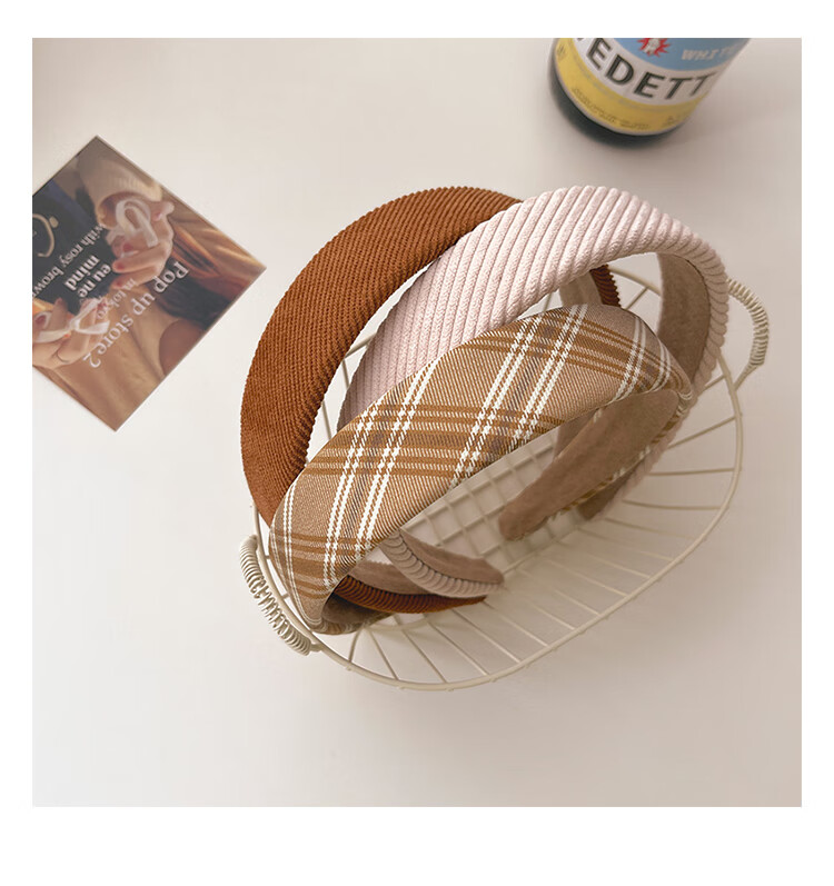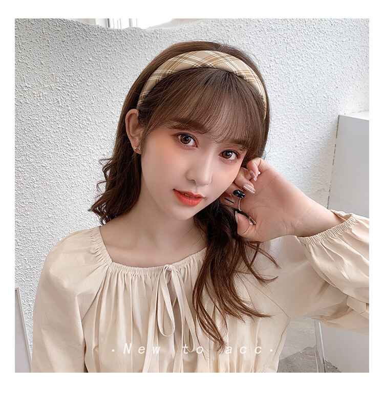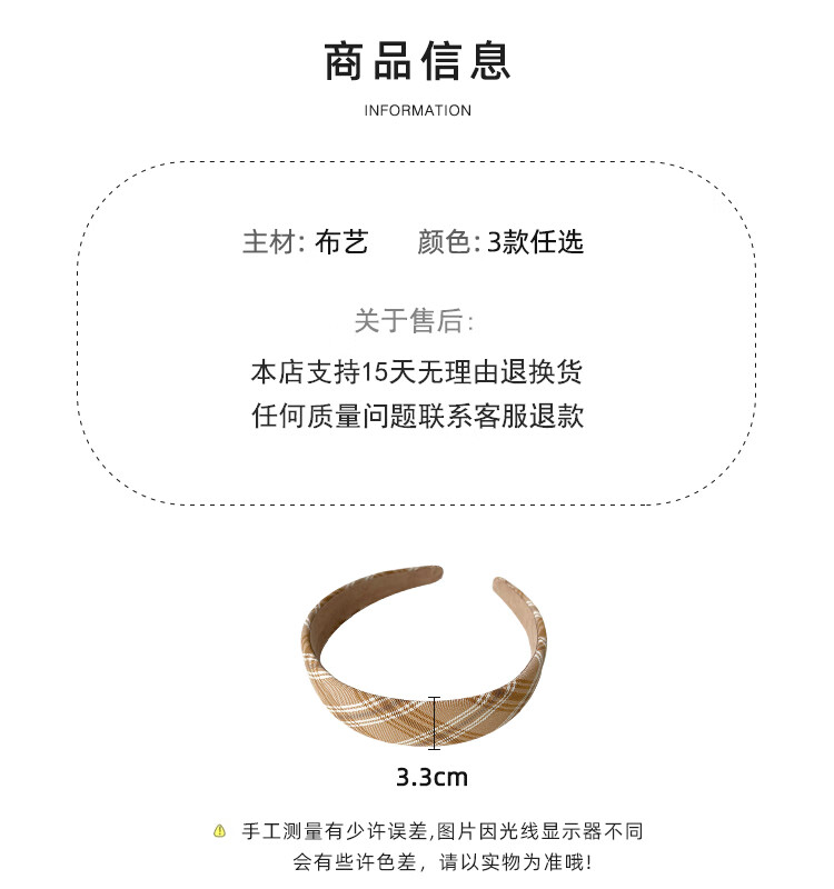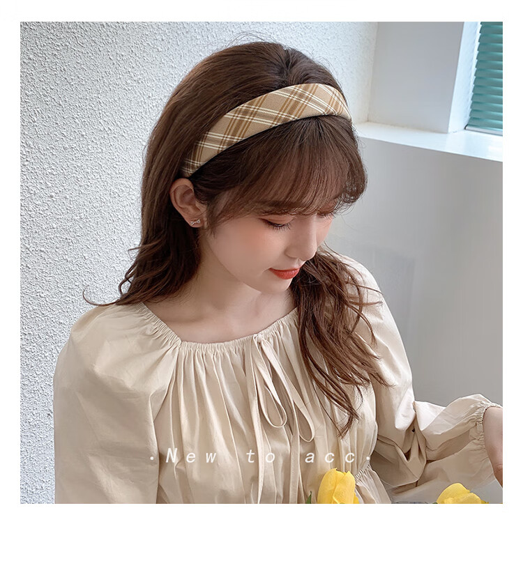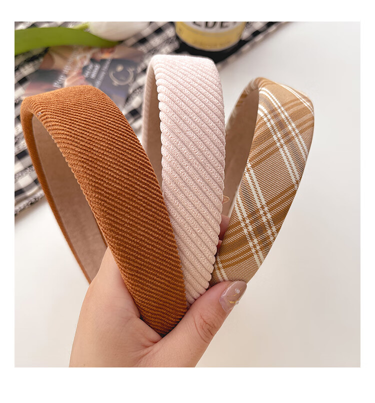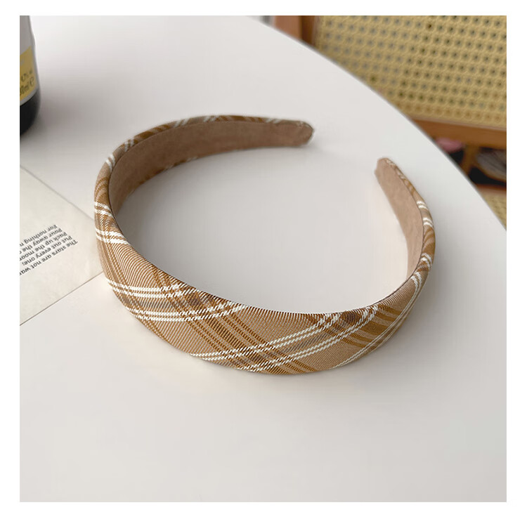 Morning Star Fabric Retro French Hairband Women's Wide-Brim Pressed Hair Anti-Slip Broken Hair Headband Hairpin Versatile Head Accessories Khaki Stripes