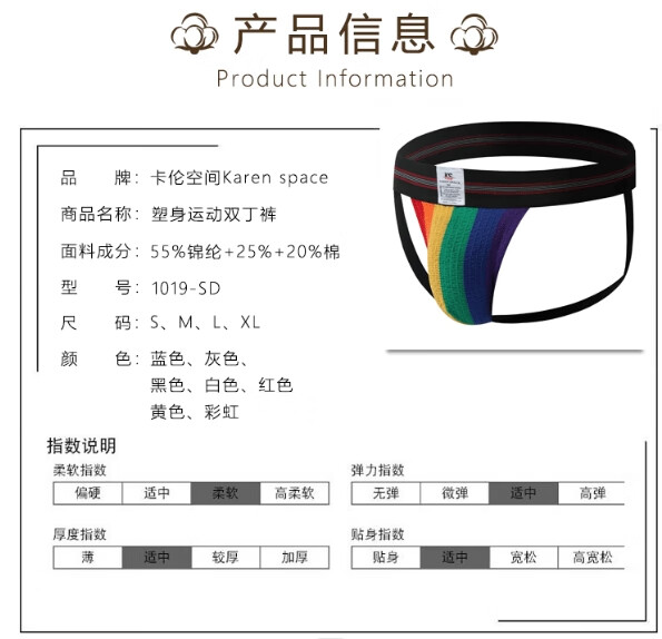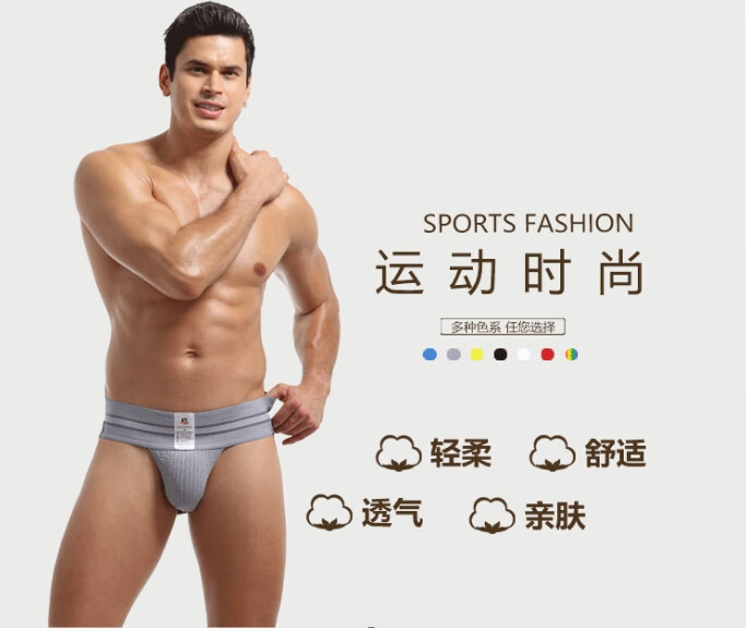 Men's sports underwear sexy hip lifting double thong wide belt hip lifting back empty thong for men rainbow color XL
