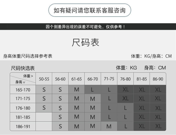 China (cm) 160-165/84-86 165-170 / 88-90 167-172 / 92-96 168-173 / 98-102 170-176 / 106-110