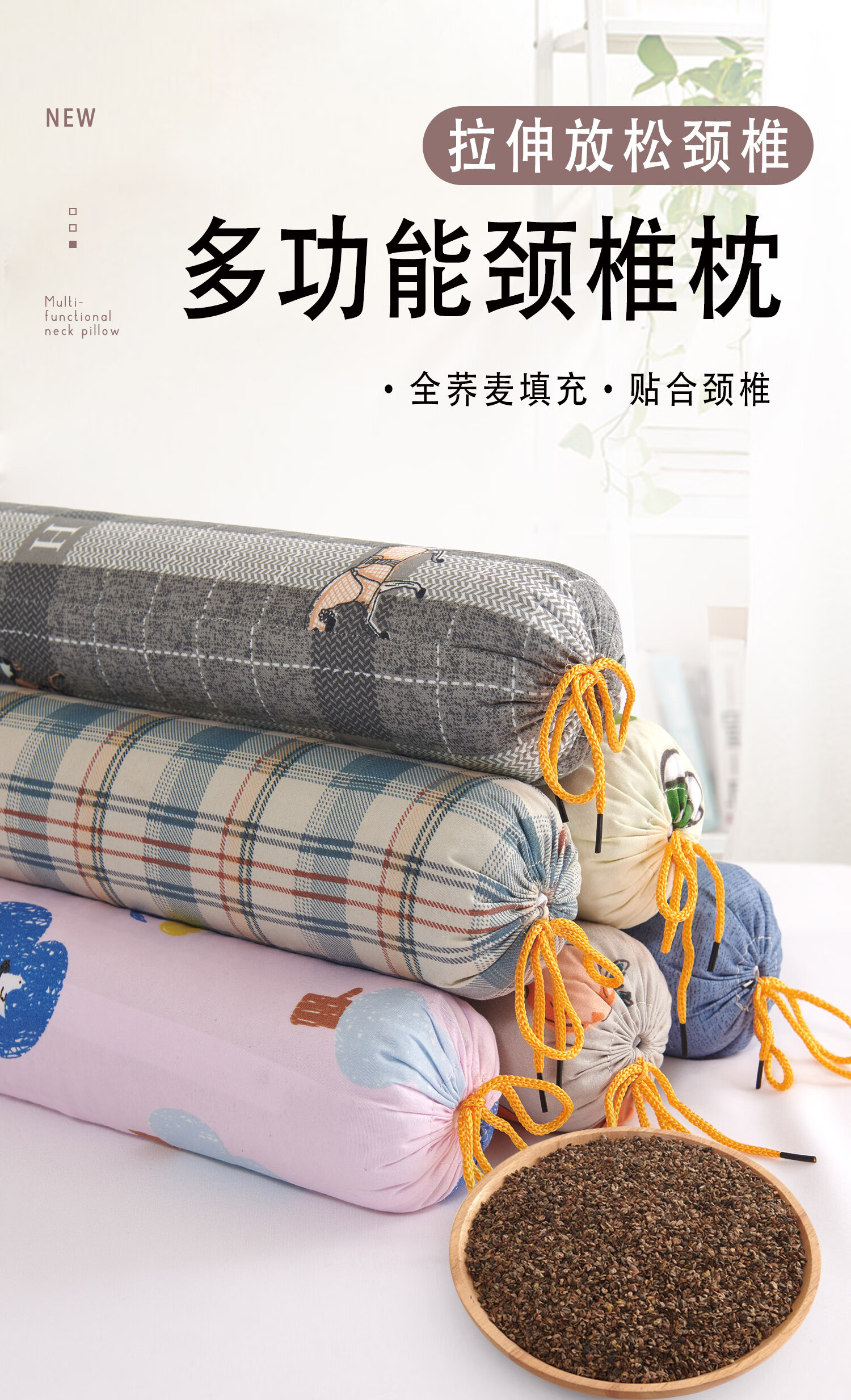 Manlaili Buckwheat Skin Cassia Seed Cervical Pillow for Sleeping Special Adult Neck Protector Small Cylindrical Mugwort Neck Pillow Hard Pillow to Help Sleep Dr. Xiong Full Buckwheat Shell Filling