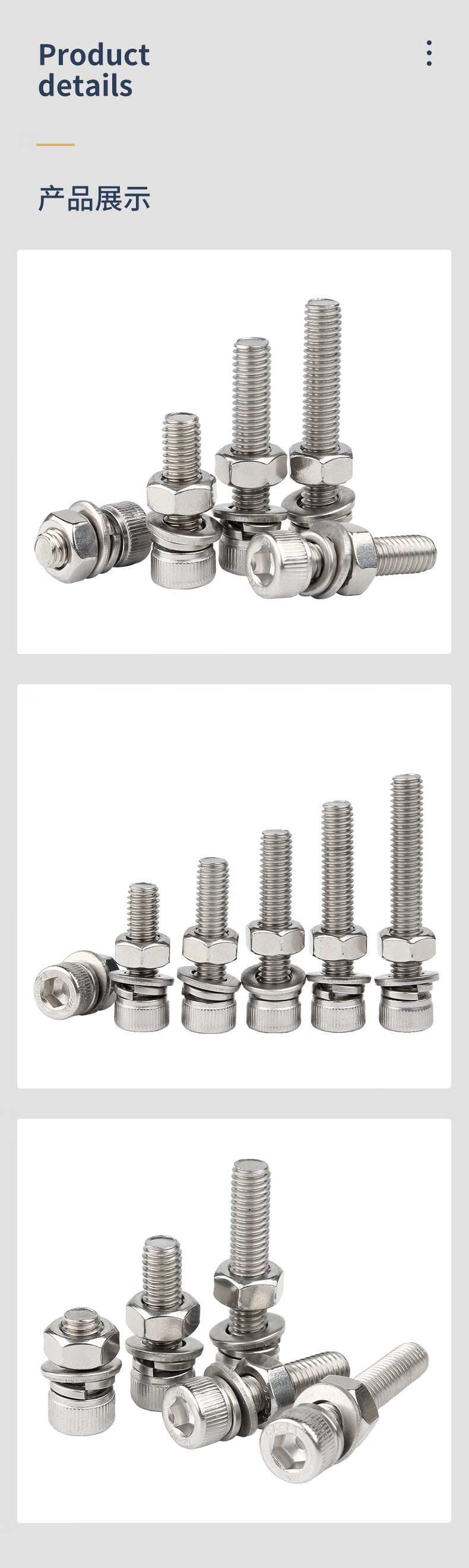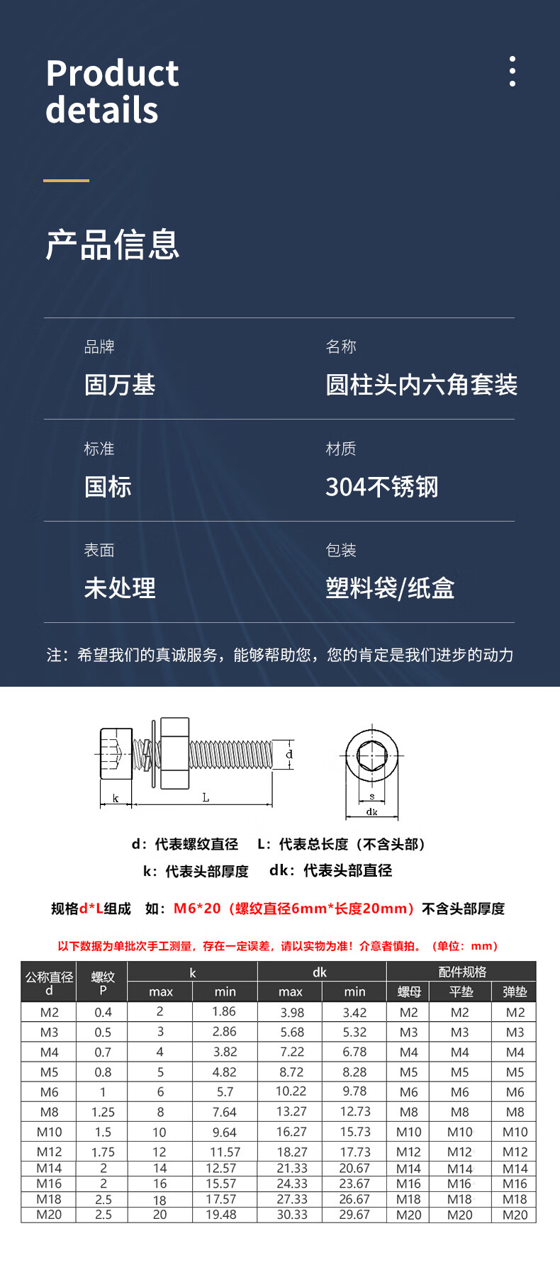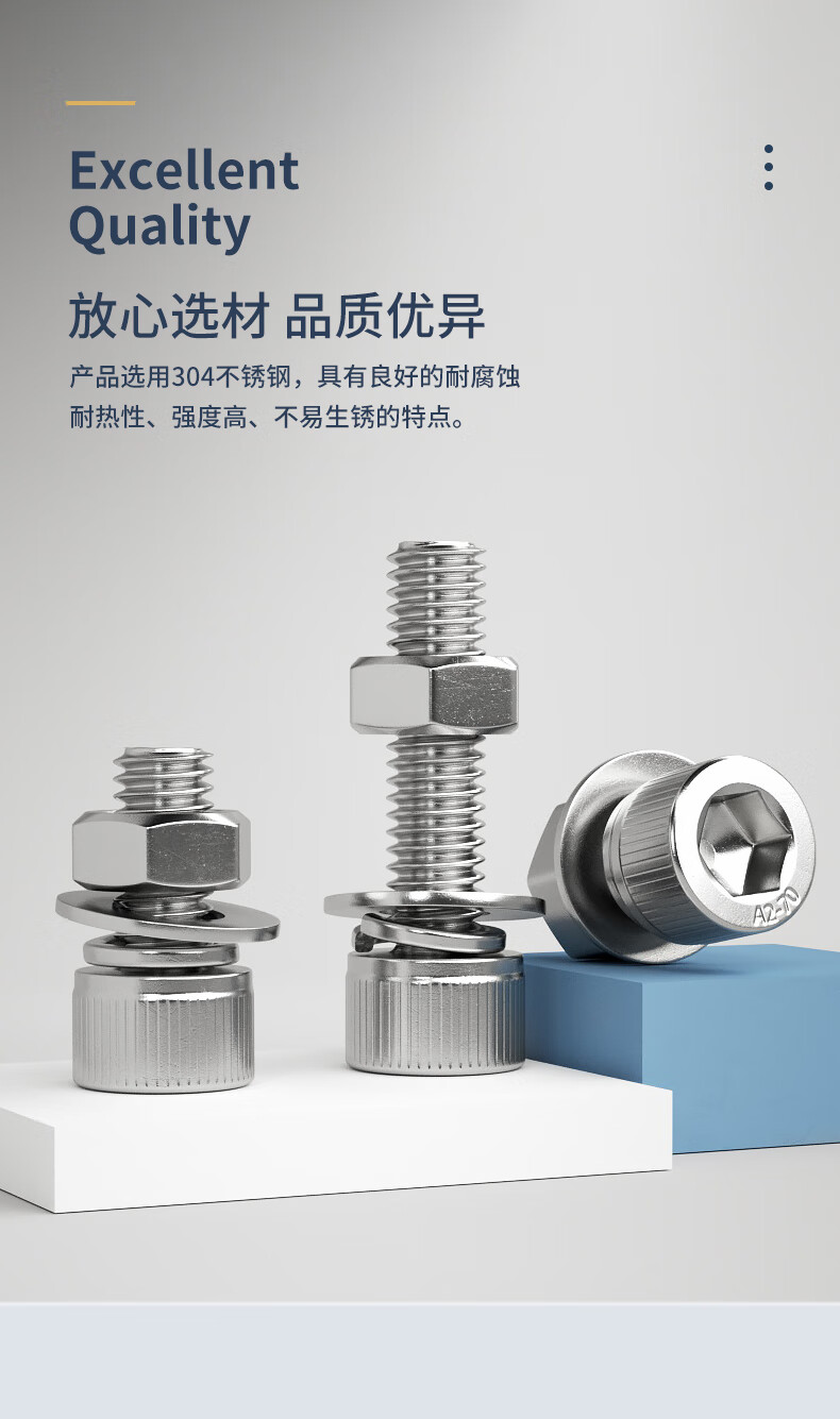 Guwanji 304 stainless steel hexagon socket screws and nuts set complete bolt screw gasket combination large national standard accessories M2*22 (100 sets)