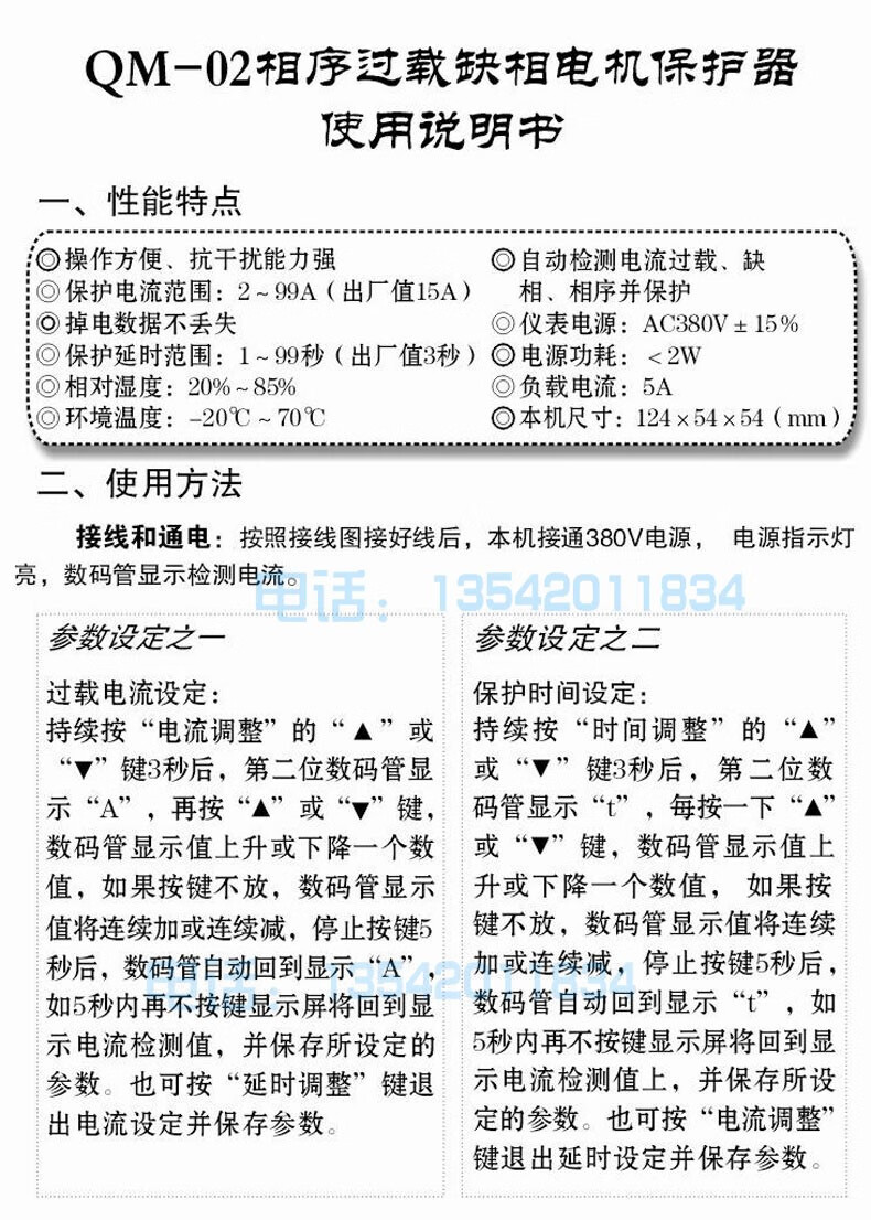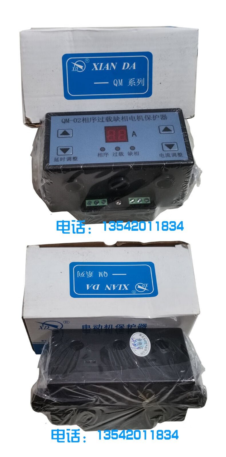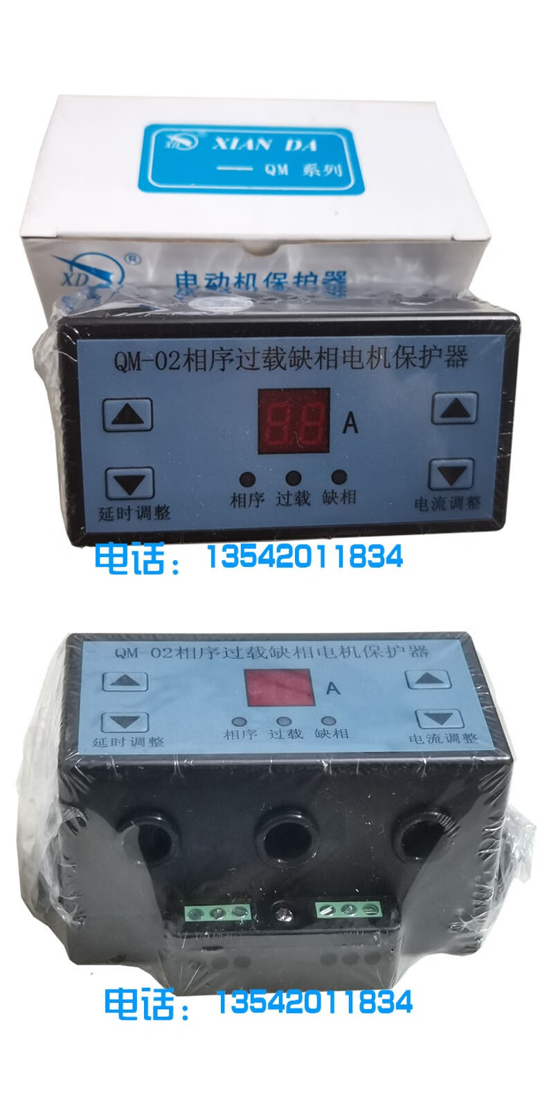 Xianda QM-01/QM-02 phase sequence overload phase loss motor protector phase failure unbalanced 220V/380V white QM-01