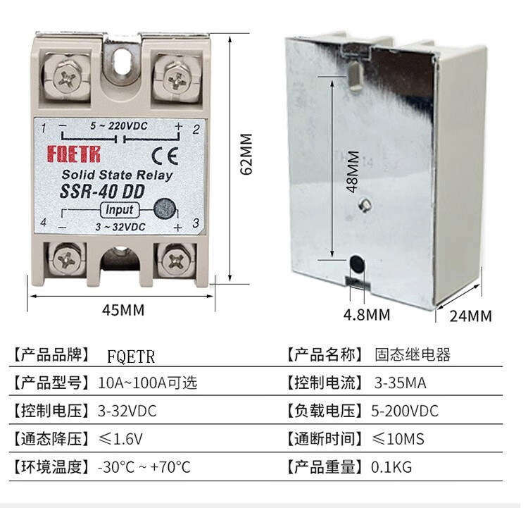 Small single-phase solid state relay DC control DC 10 25 4060100DD25A24v DC 5v12v B SSR-10DD