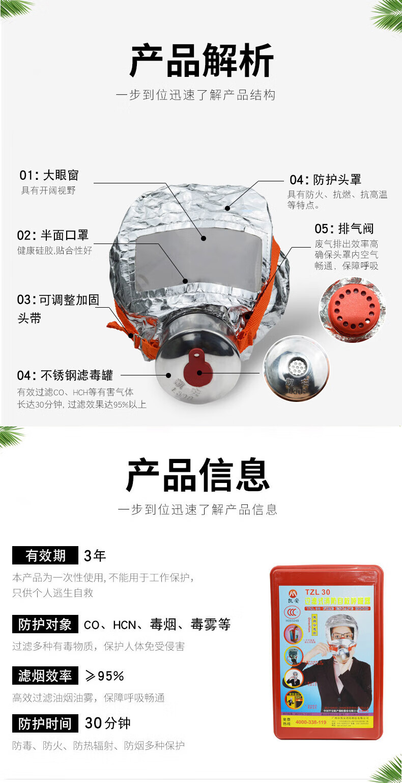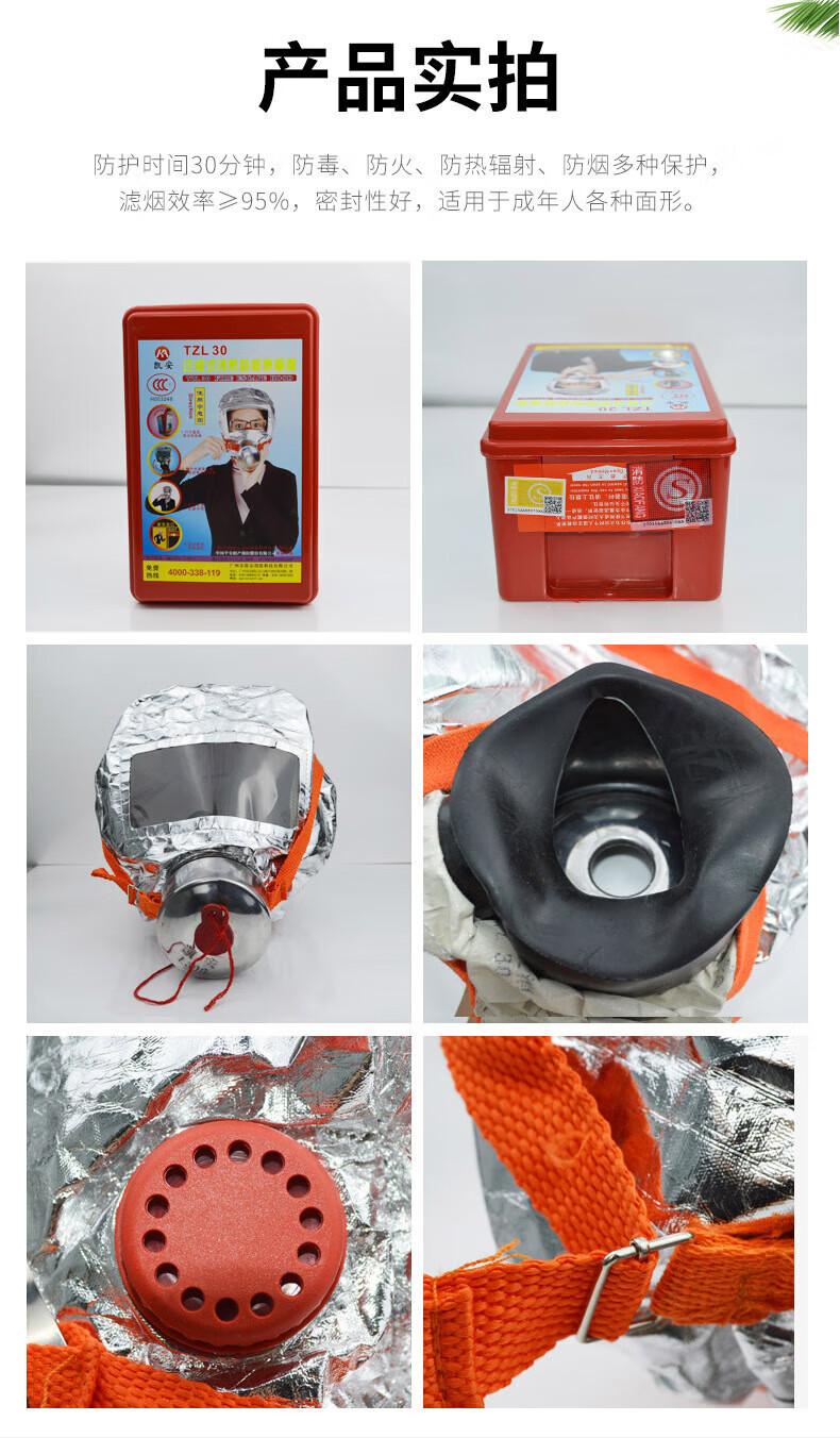 Kai'anbao Fire Mask Filter Fire Self-Rescue Respirator Fire Emergency Escape Mask Anti-Smoke Gas Mask Kai'an Fire Mask TZL30E Fire Fighting Mask TZL30B