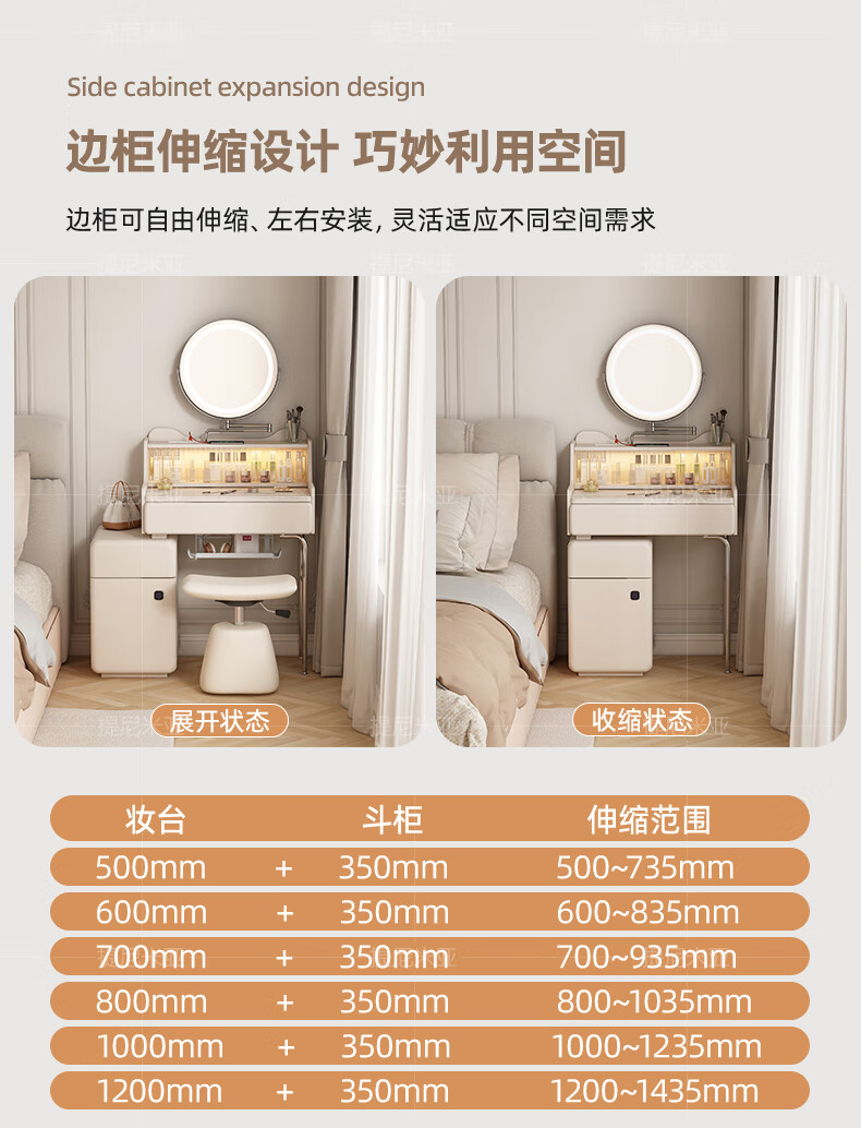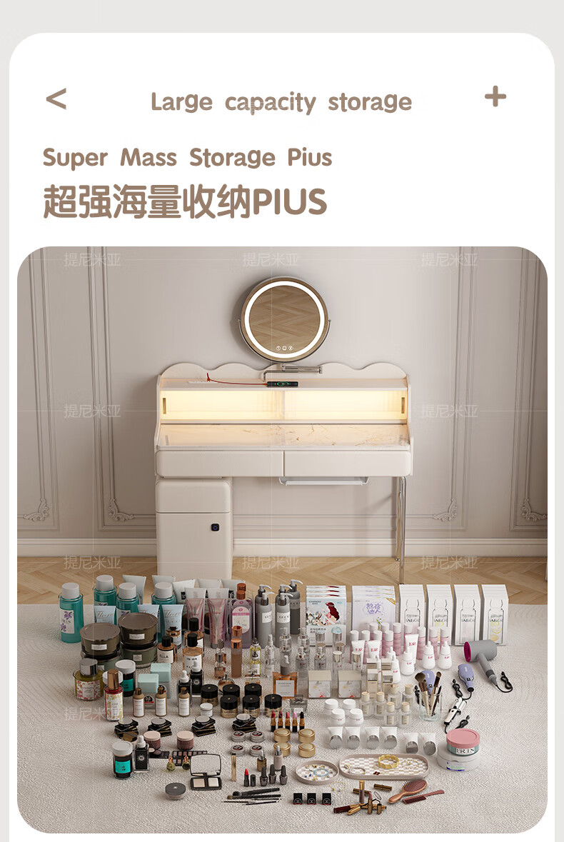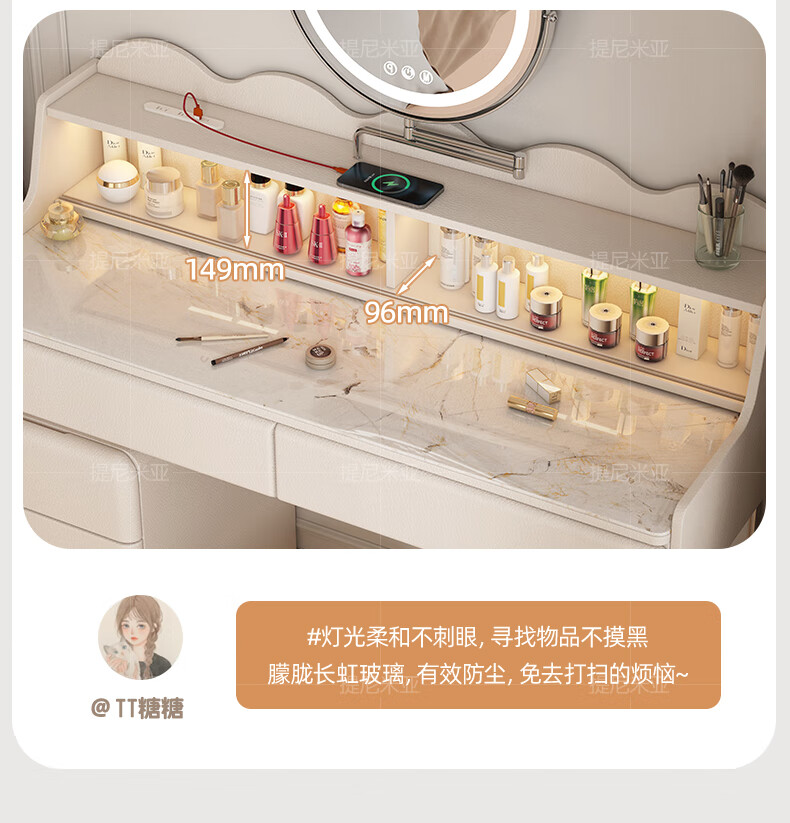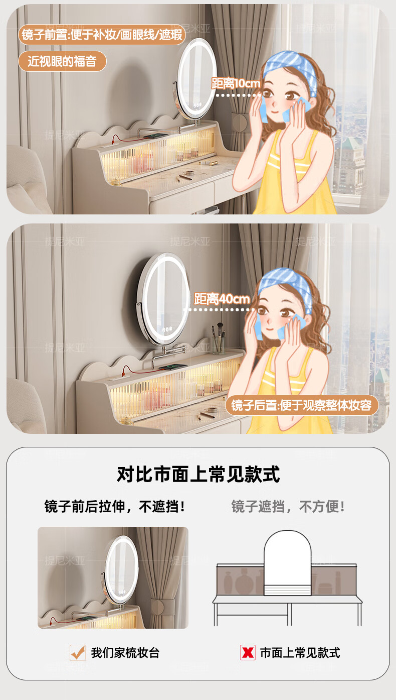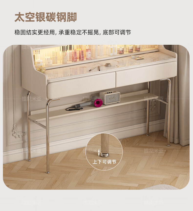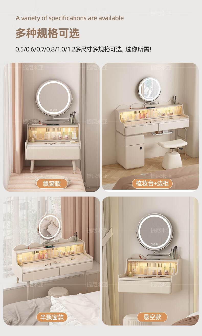 Tinymiya light cream style dressing table for bedroom small apartment 80cm wide storage cabinet bedside table integrated slate dressing table 60cm丨ENF all solid wood丨socket + air pressure lifting stool