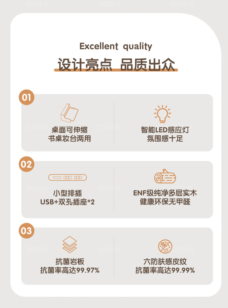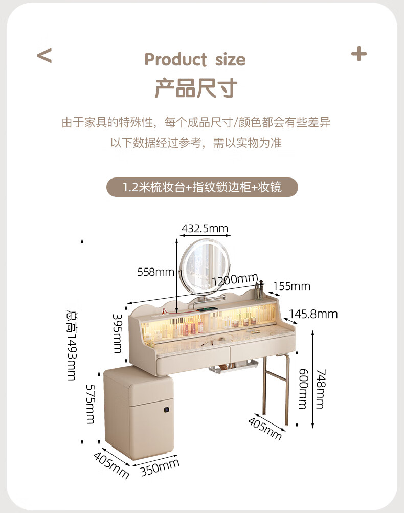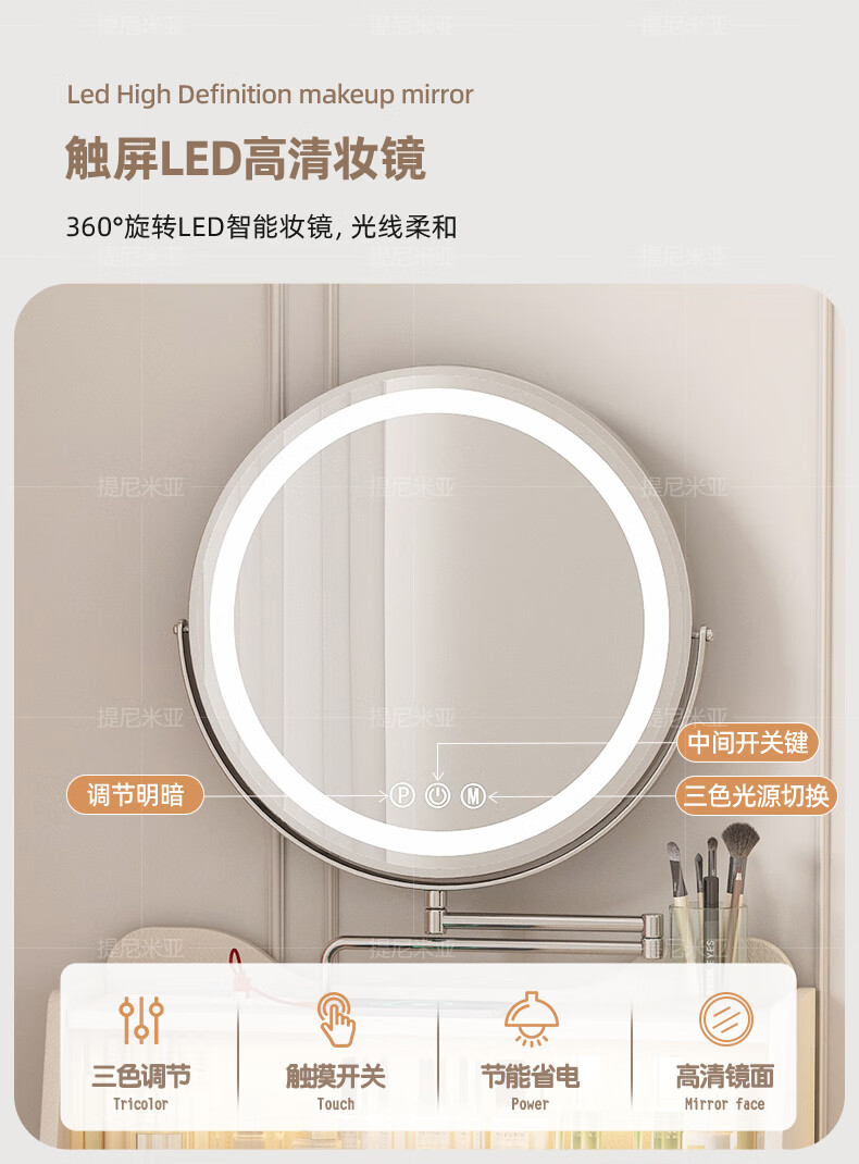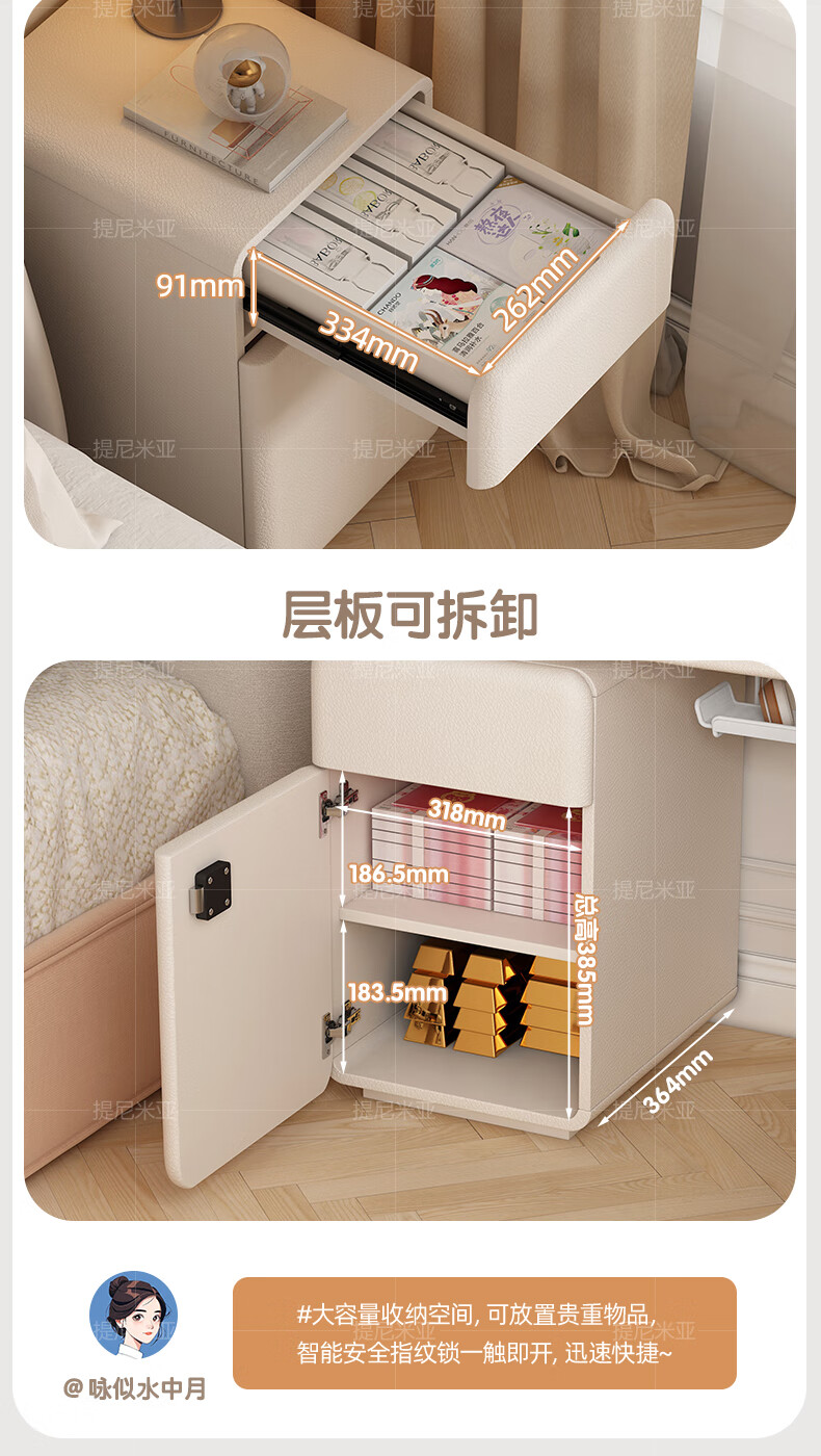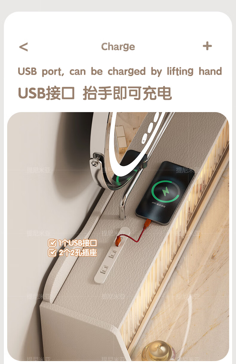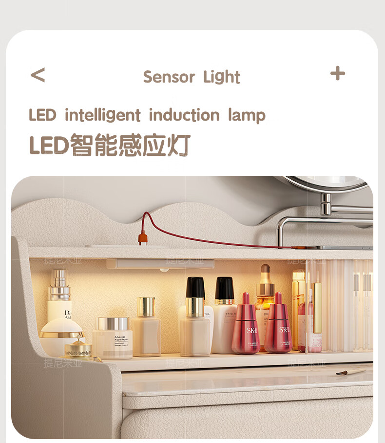 Tinymiya light cream style dressing table for bedroom small apartment 80cm wide storage cabinet bedside table integrated slate dressing table 60cm丨ENF all solid wood丨socket + air pressure lifting stool